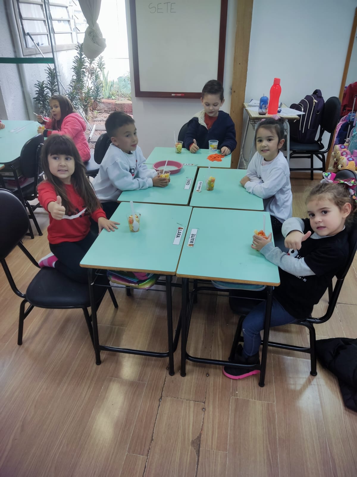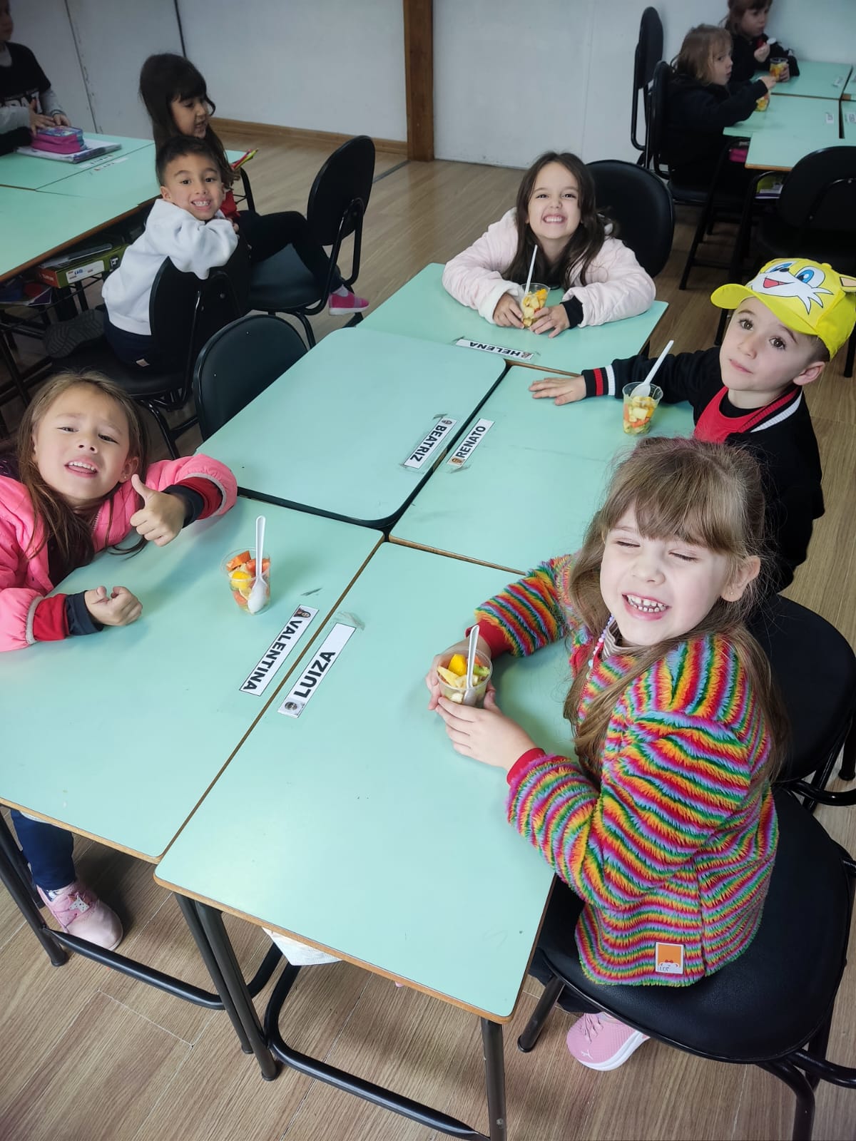 A turma 04 anos V da educação infantil, da professora Vanessa Streda,desenvolveu o projeto "semana da fruta", onde uma vez por semana cada aluno trazia uma fruta para compartilhar com os colegas, para encerrar o projeto, a turminha fez uma deliciosa salada de frutas.