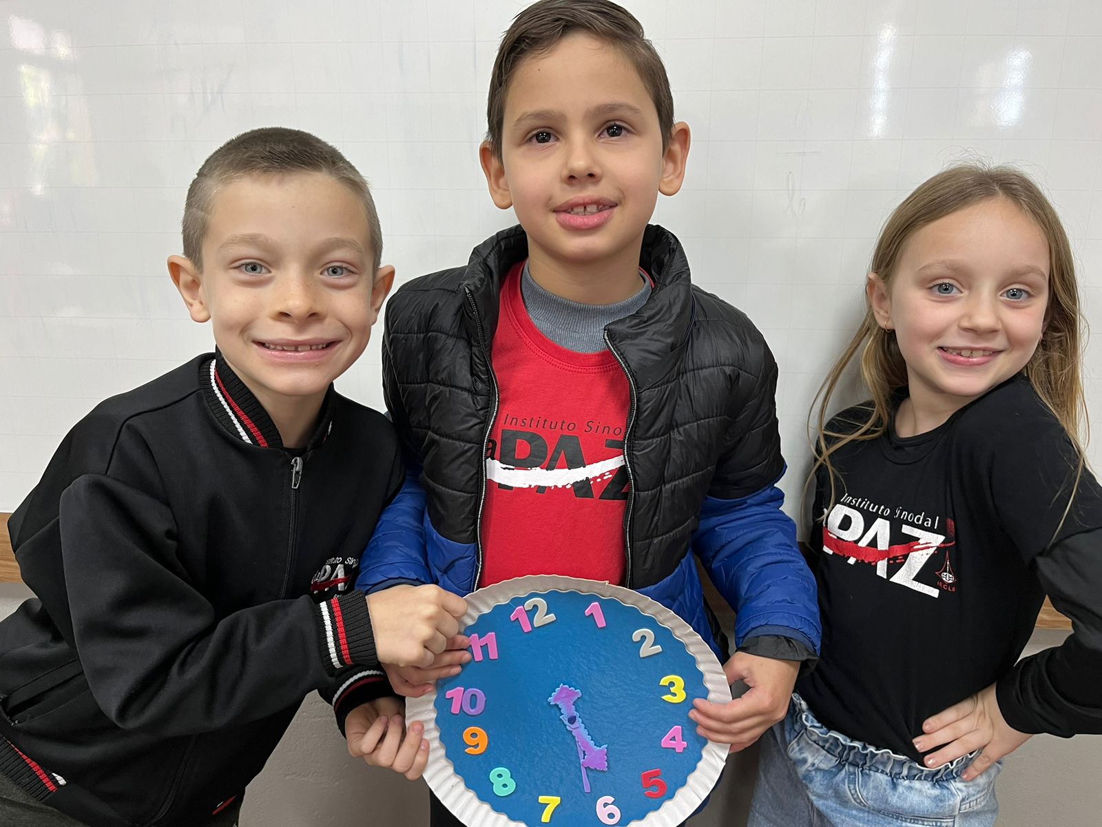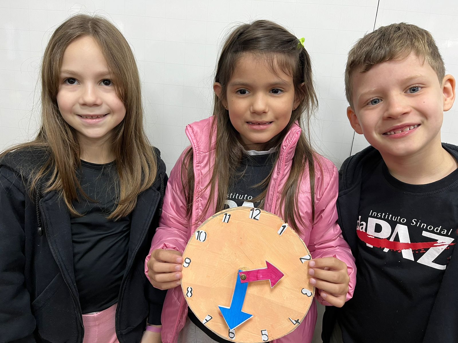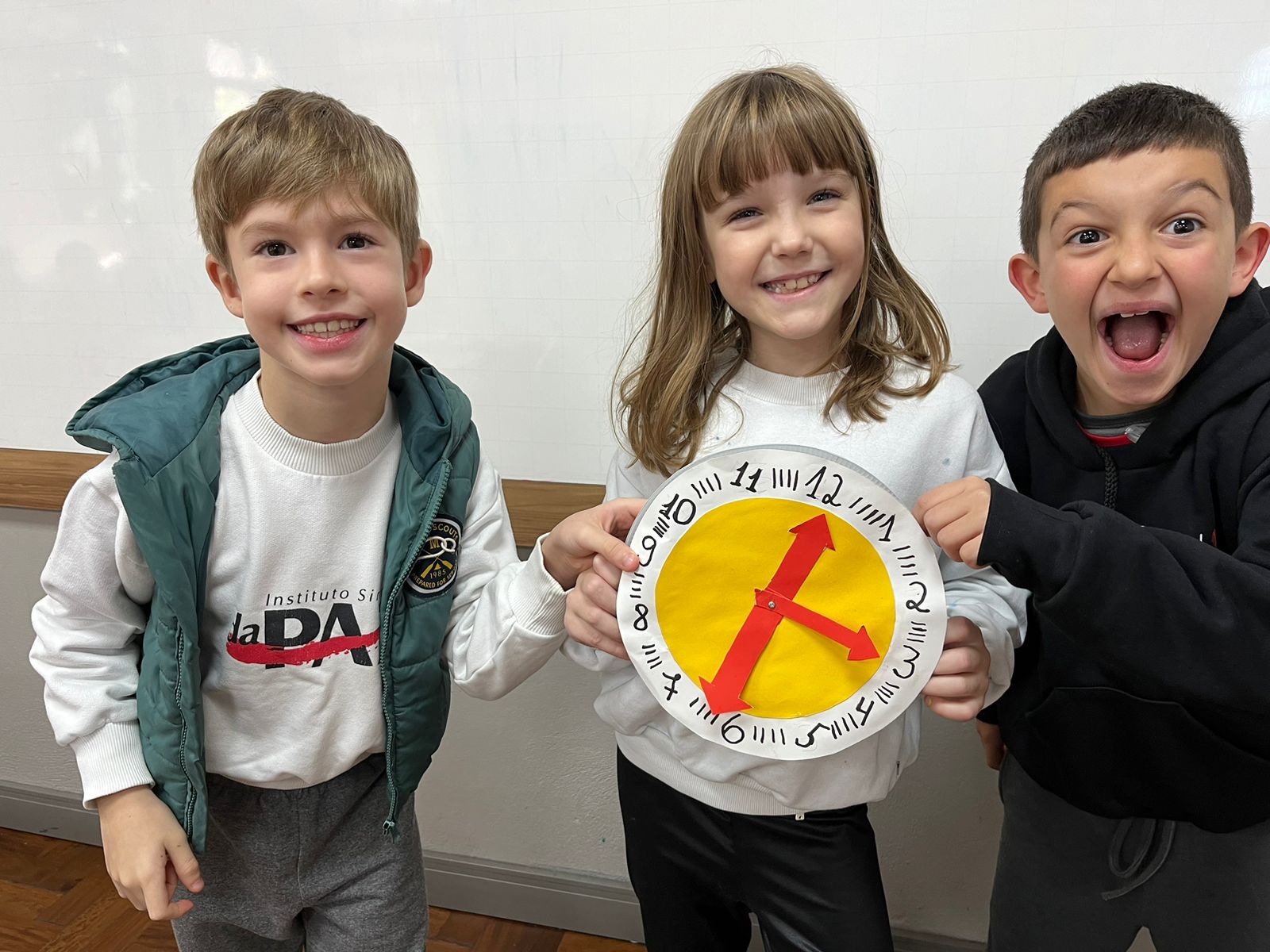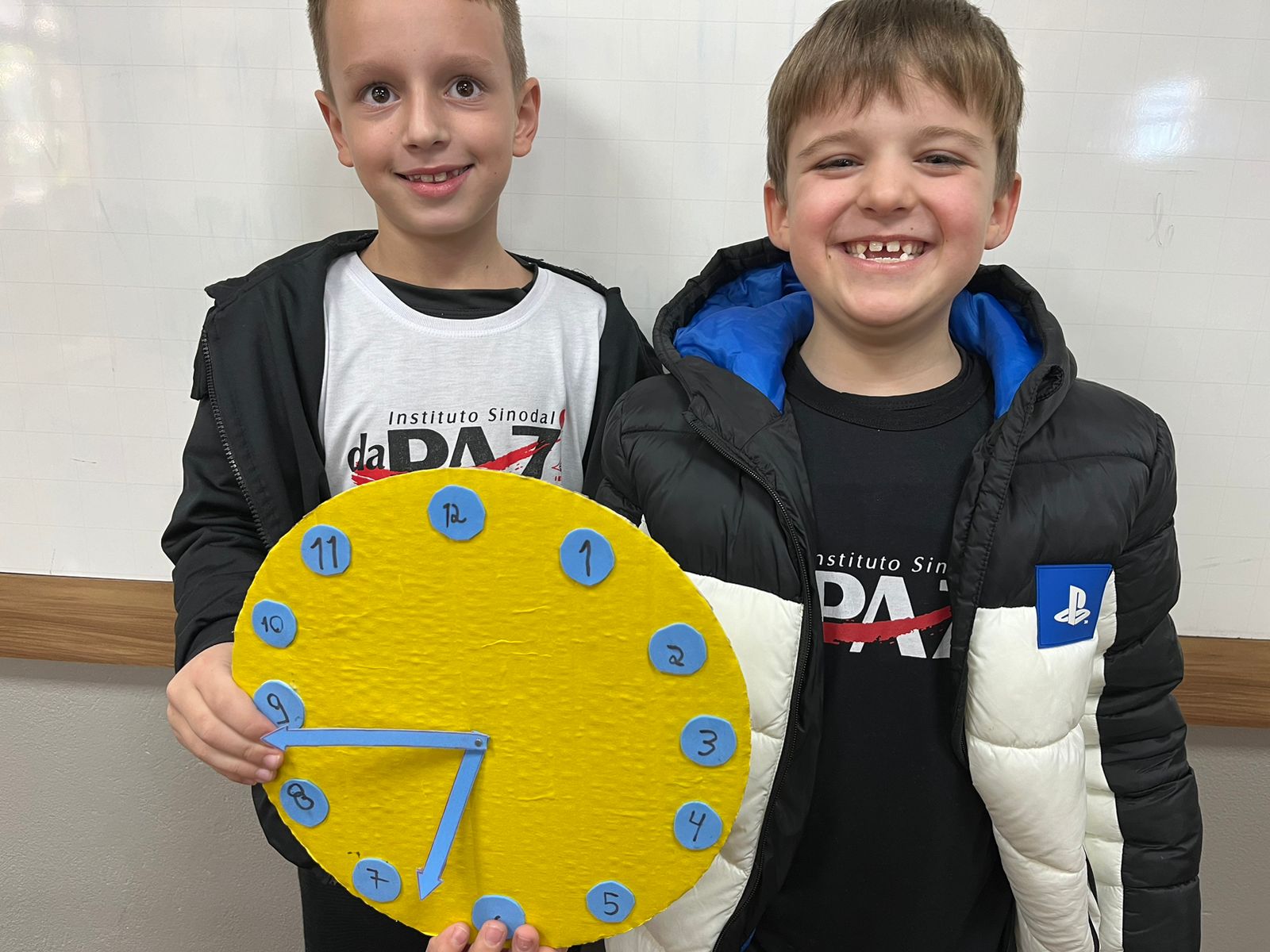 Os alunos dos segundos anos estão aprendendo sobre as horas nas aulas de Língua Inglesa. A professora Priscila propôs que eles fizessem relógios usando materiais recicláveis. O resultado ficou muito divertido!! Learning is fun!