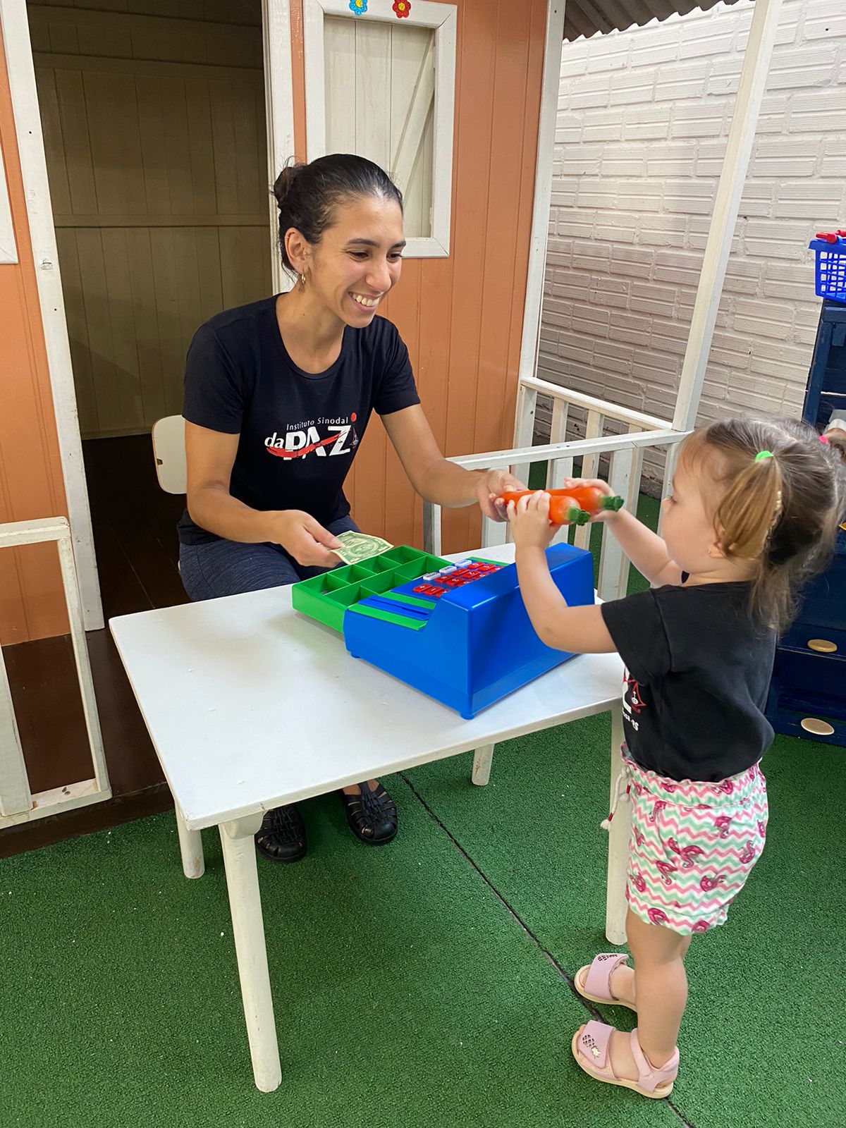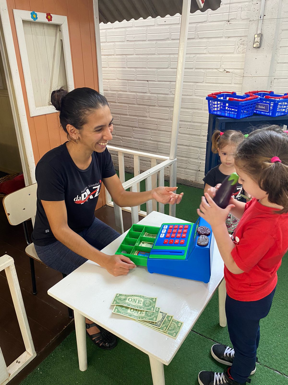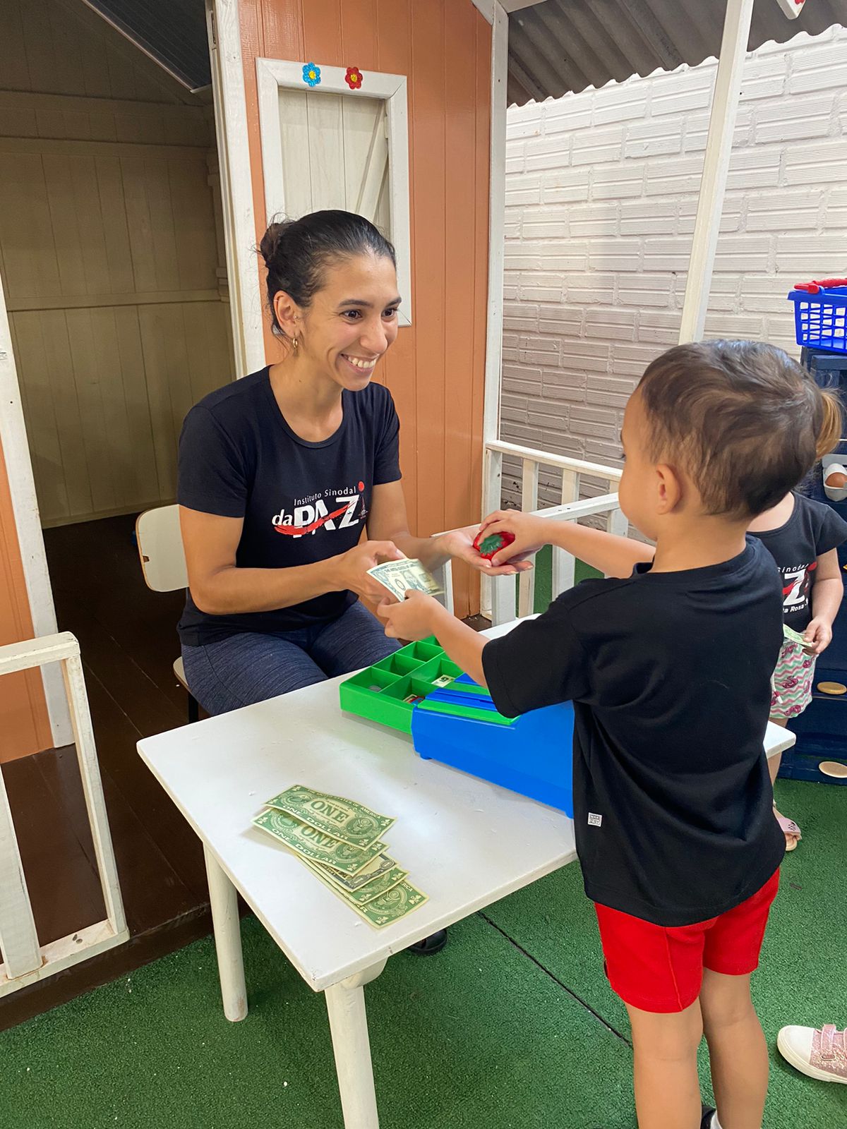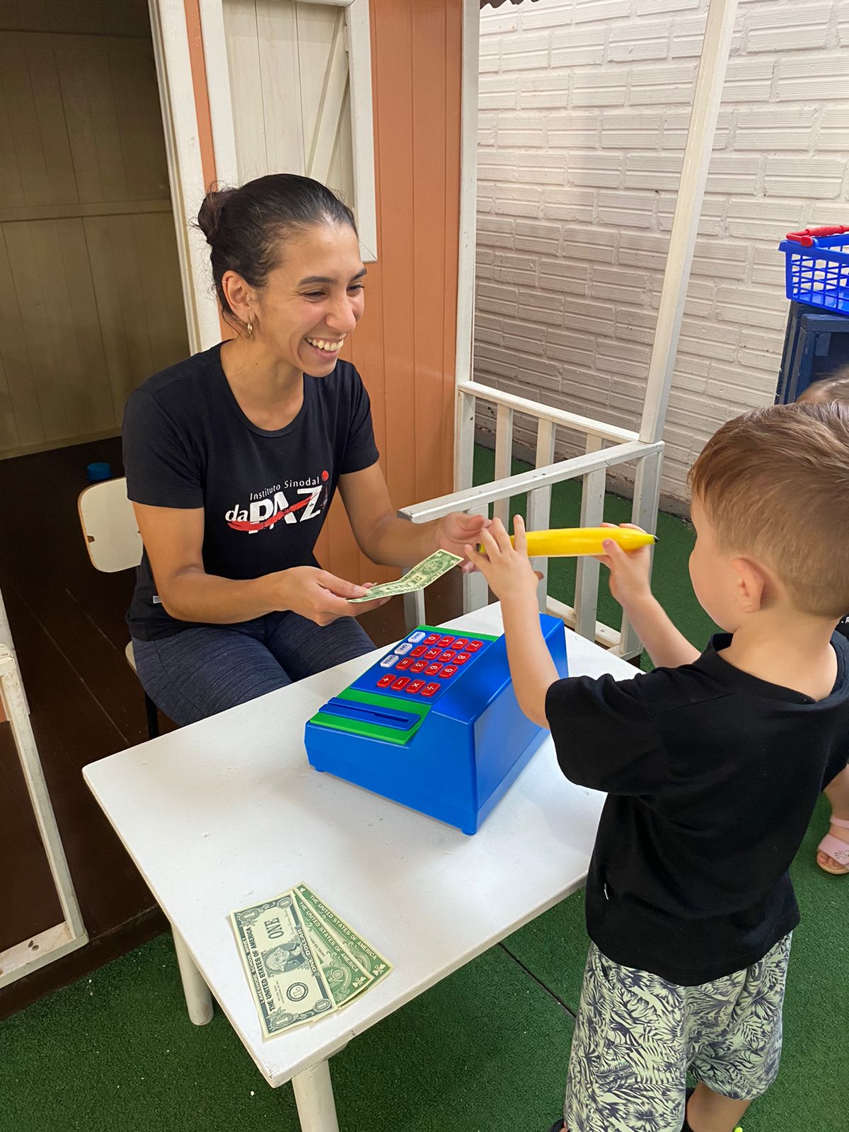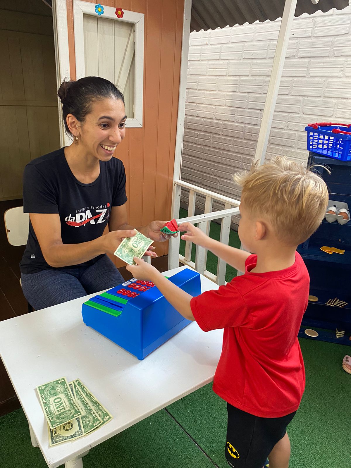 A turma de 03 anos da Professora Camila, realizou a Feira da Alegria, cada criança tinha seu próprio dinheiro e foram a feira comprar alimentos saudáveis!