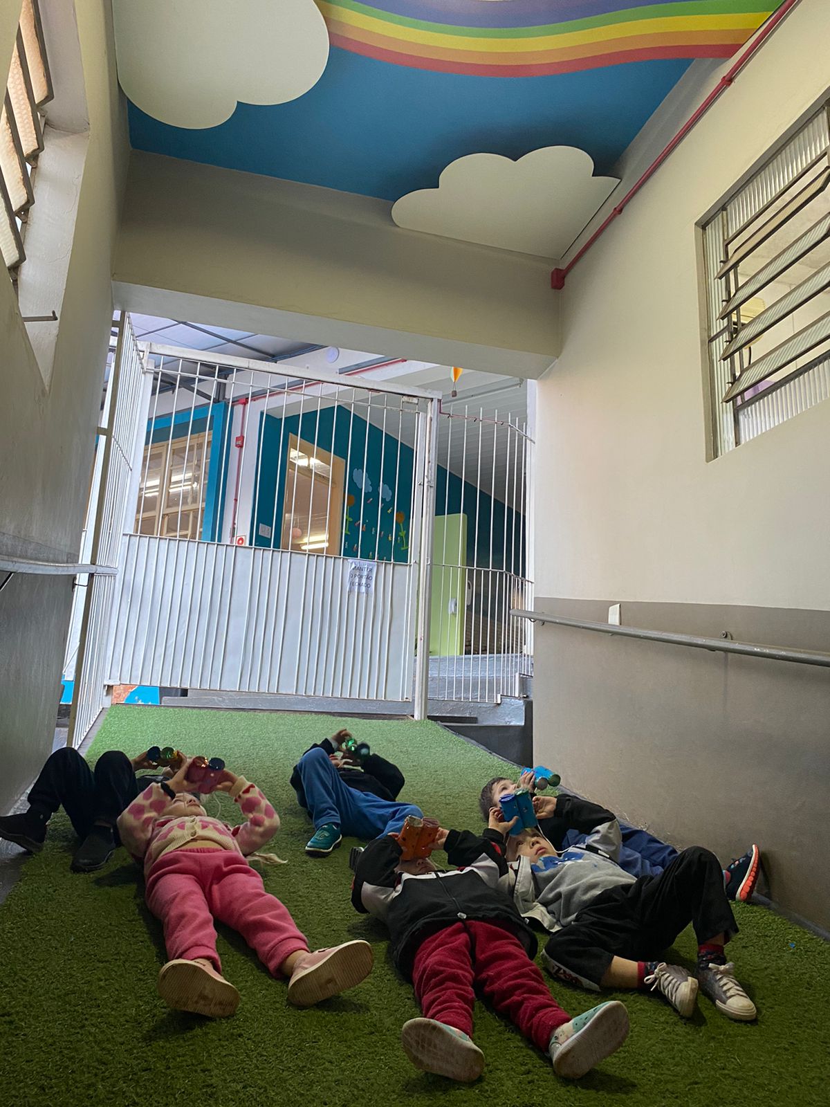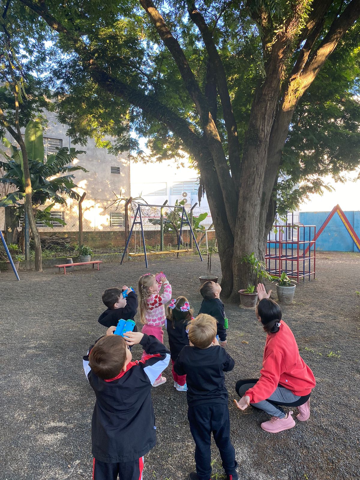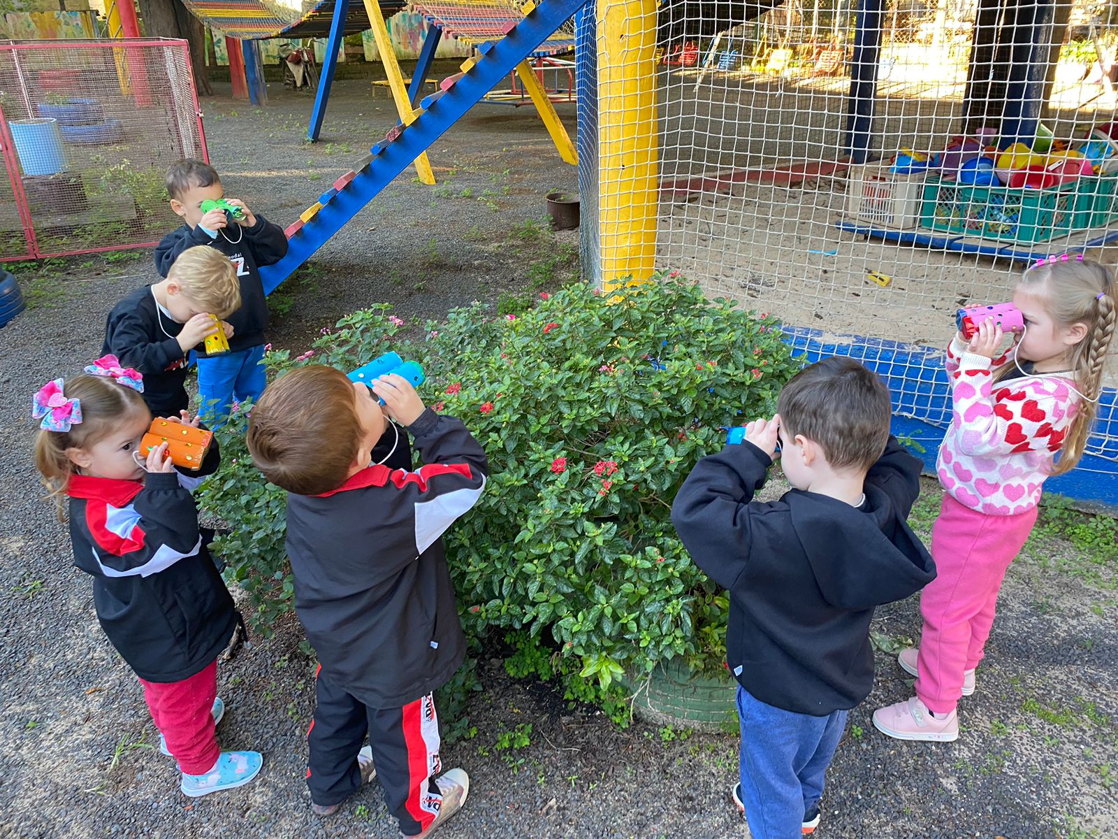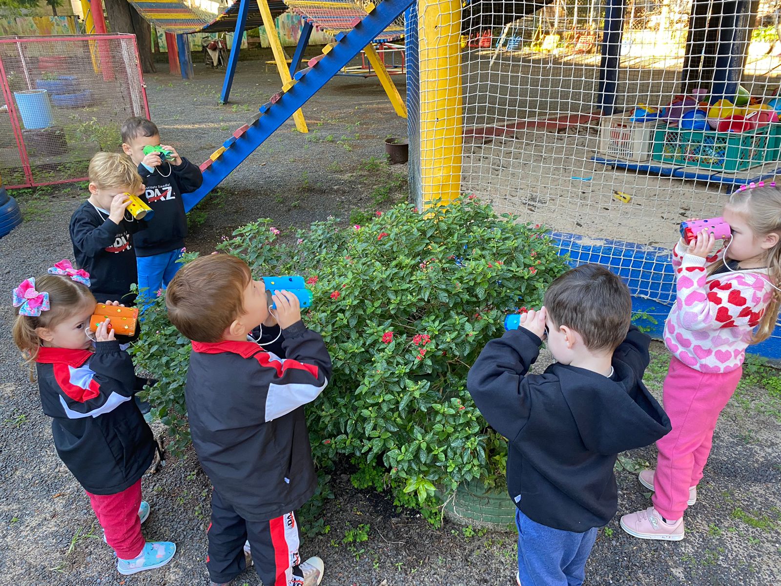 A turma de 03 anos da Professora Camila está trabalhando sobre os "CINCO SENTIDOS", as crianças fizeram um lindo binóculo e usaram sua super visão para explorar e ver todos os espaços da nossa escola!
