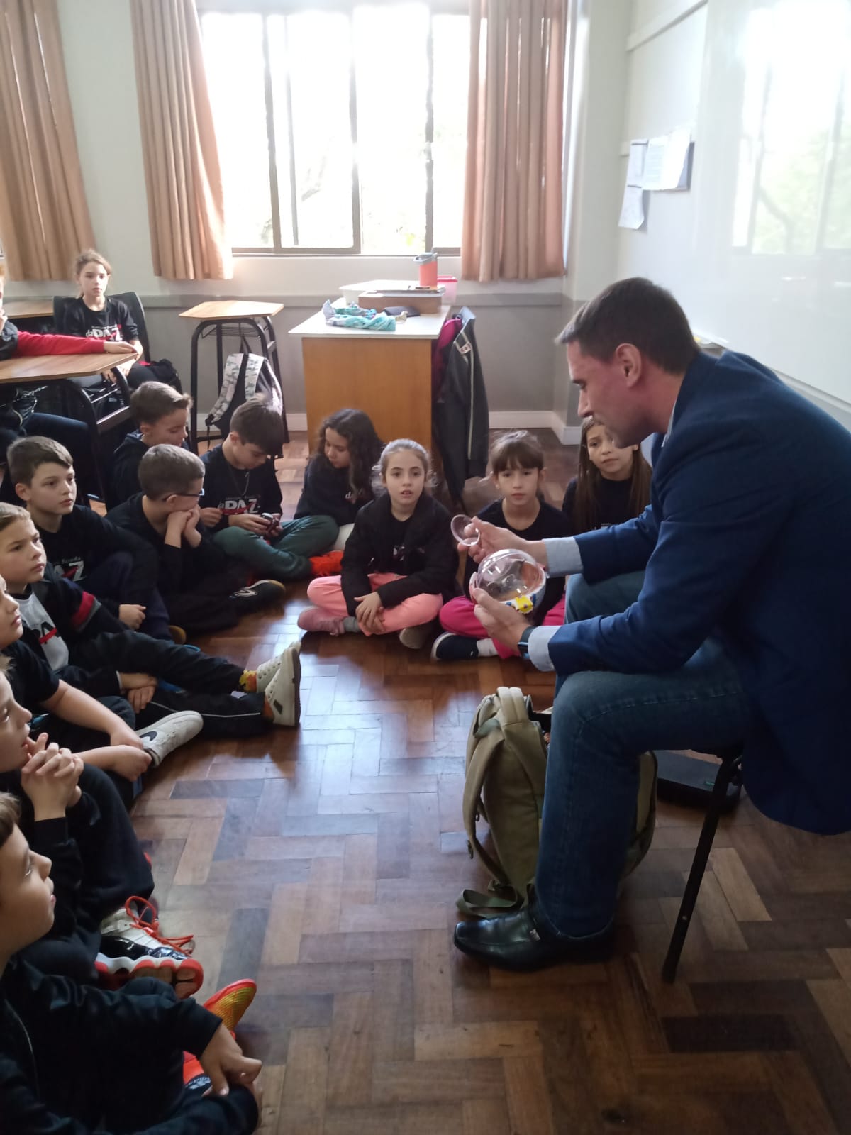 Na terça feira, dia 21/05, as turmas dos 3° anos EF receberam uma visita muito especial: o Oftalmologista André S. De Jesus, ex-aluno do Instituto Sinodal da Paz e pai do estudante Artur Vogel de Jesus, do 3° ano R.