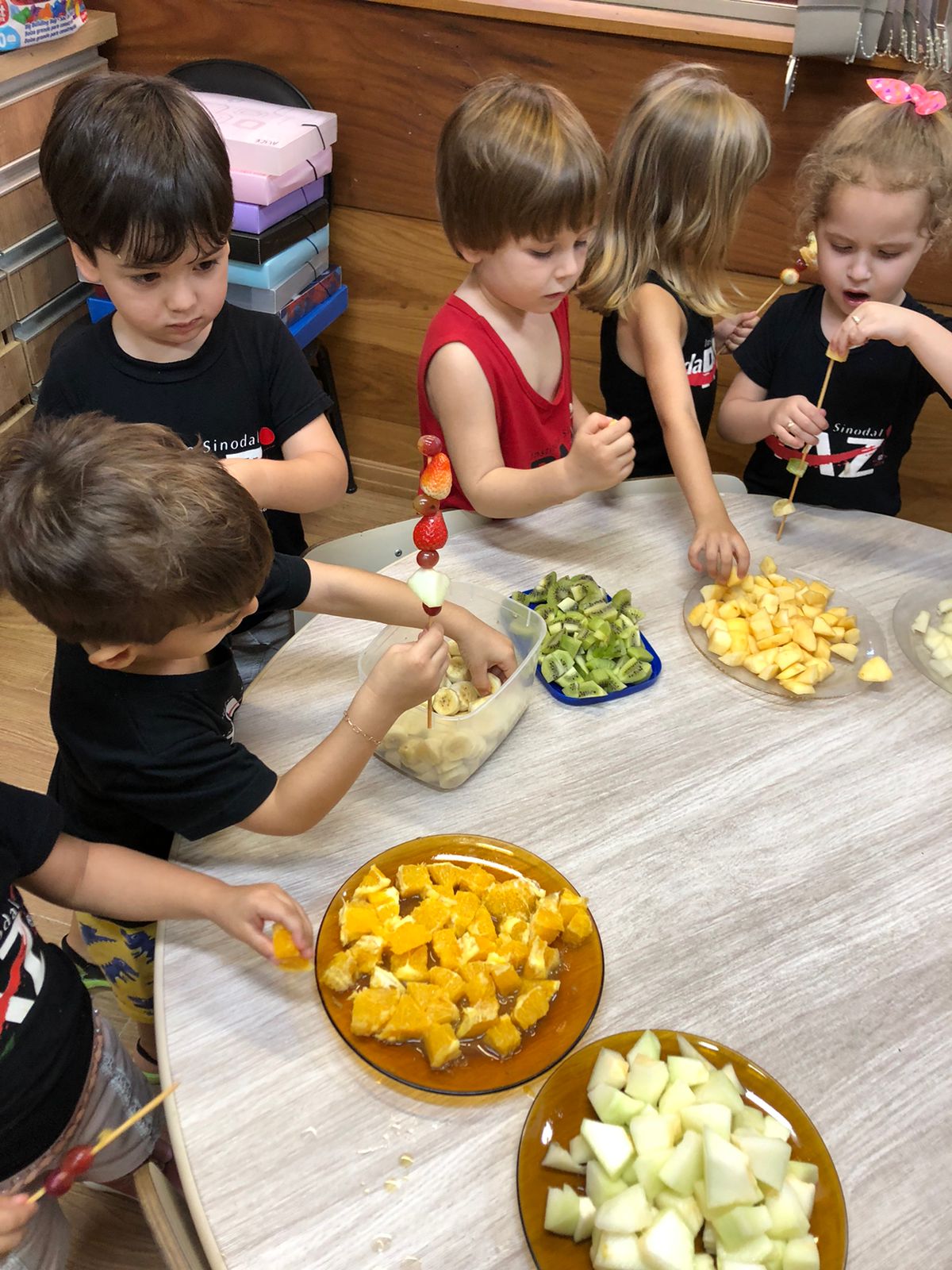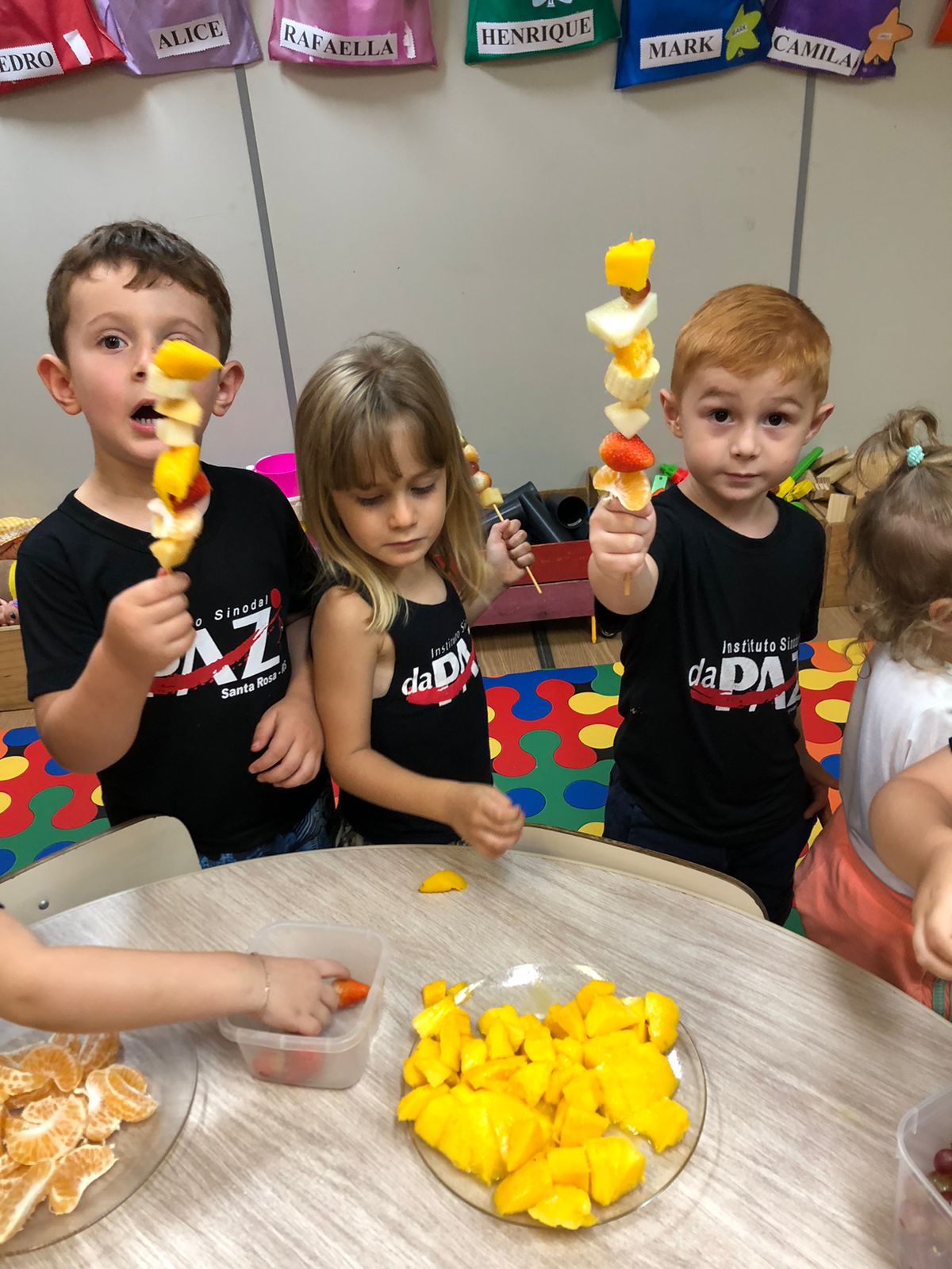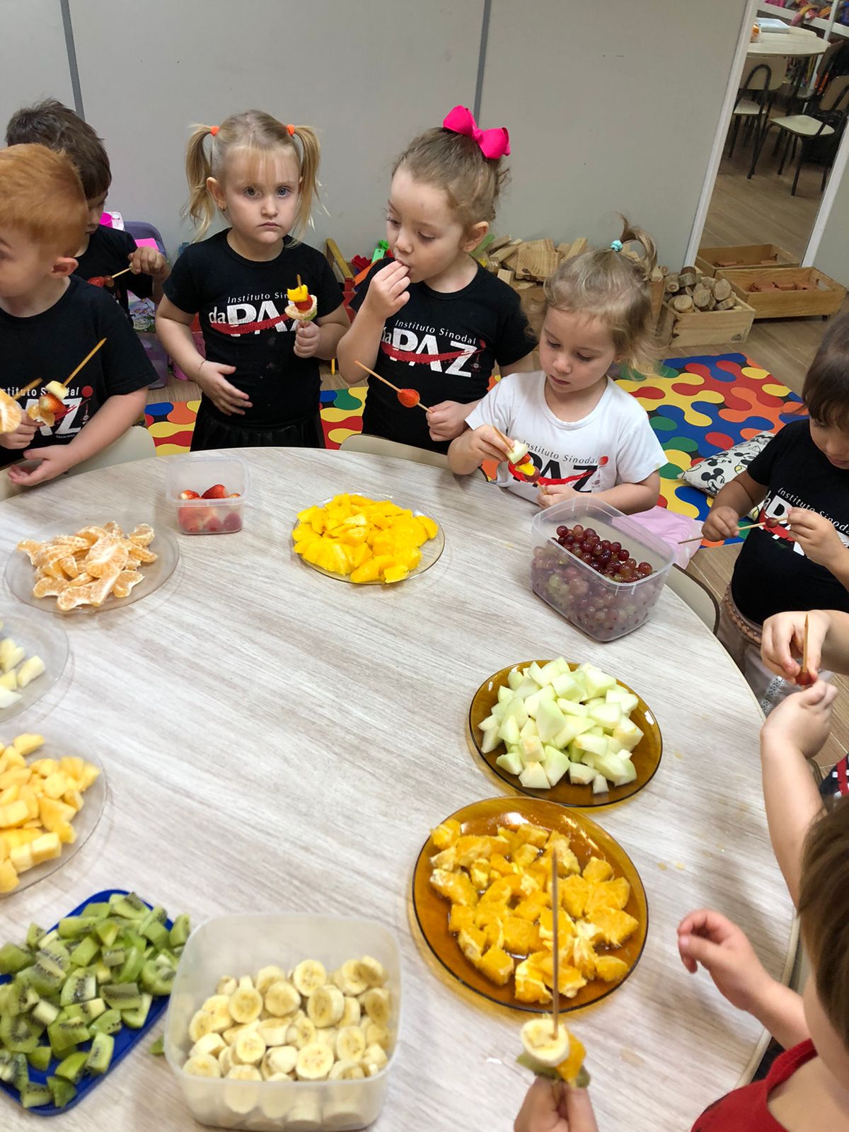 Turma de 03 anos Profe Vanessa está trabalhando o projeto Alimentação Saudável e a turma fez o dia do espetinho de frutas, onde cada aluno montou o seu Essa atividade foi um sucesso