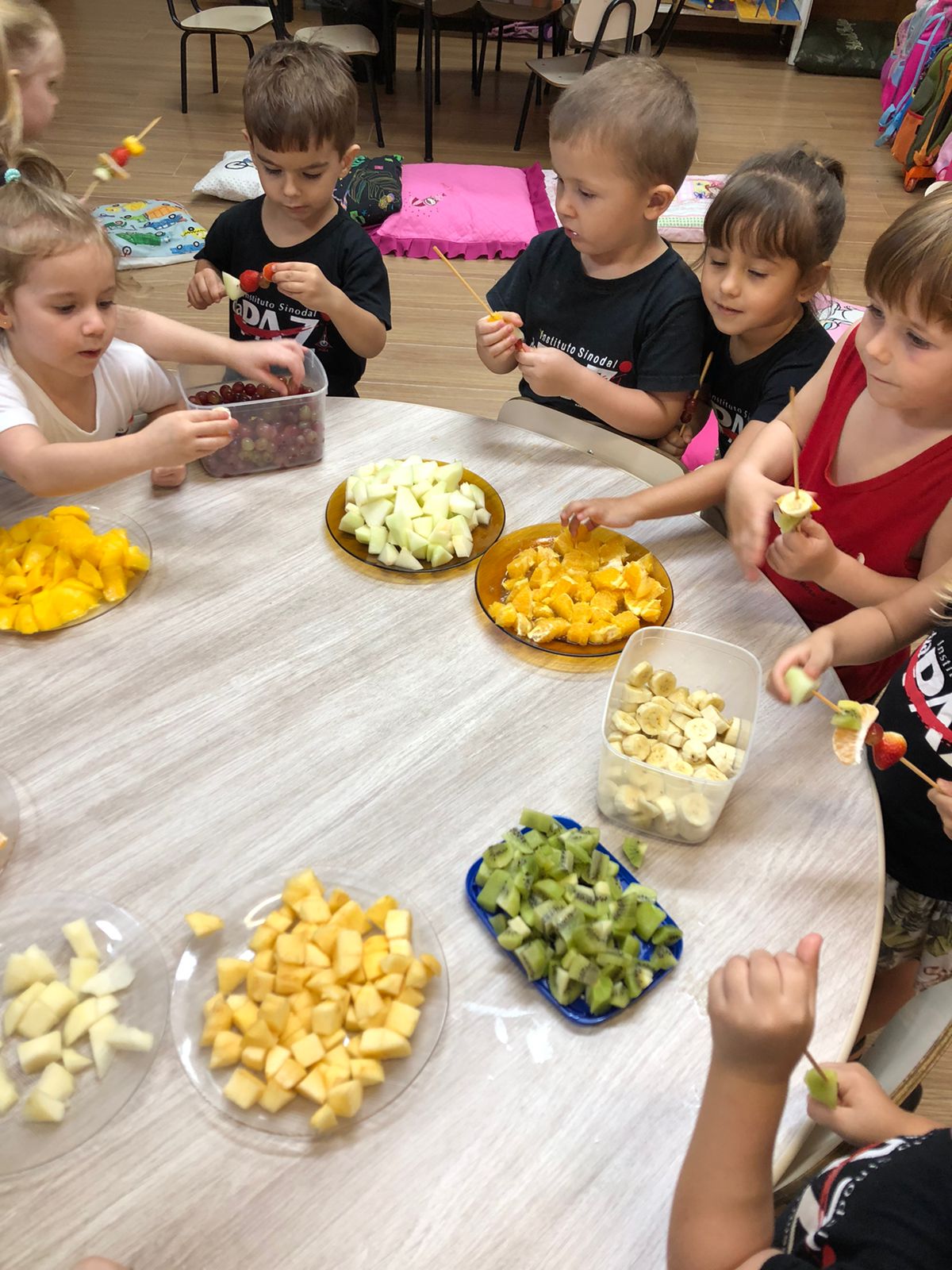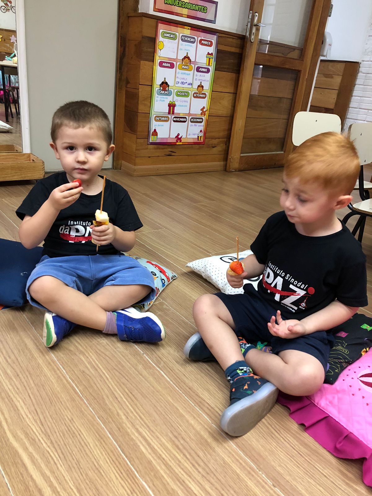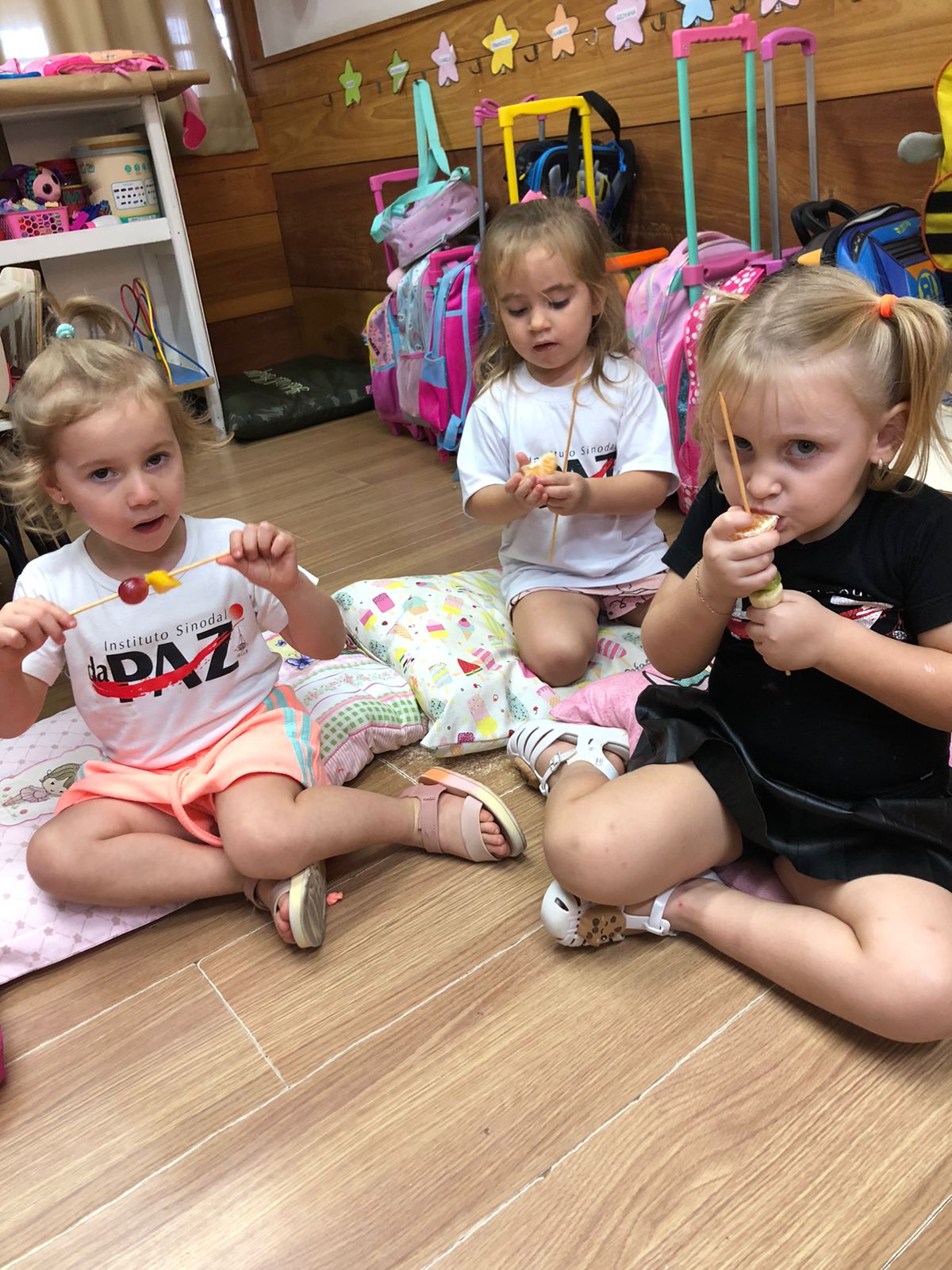 Turma de 03 anos Profe Vanessa está trabalhando o projeto Alimentação Saudável e a turma fez o dia do espetinho de frutas, onde cada aluno montou o seu Essa atividade foi um sucesso