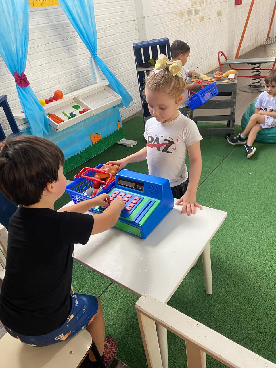 A turma da Educação Infantil 03 anos profe Vanessa ao realizar a atividade da feira, brincaram e vivenciaram a compra e venda de alimentos saudáveis.