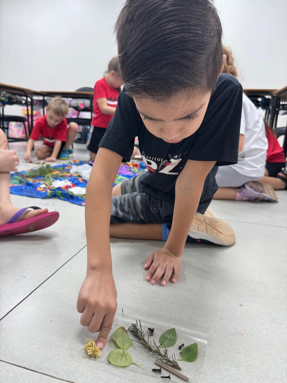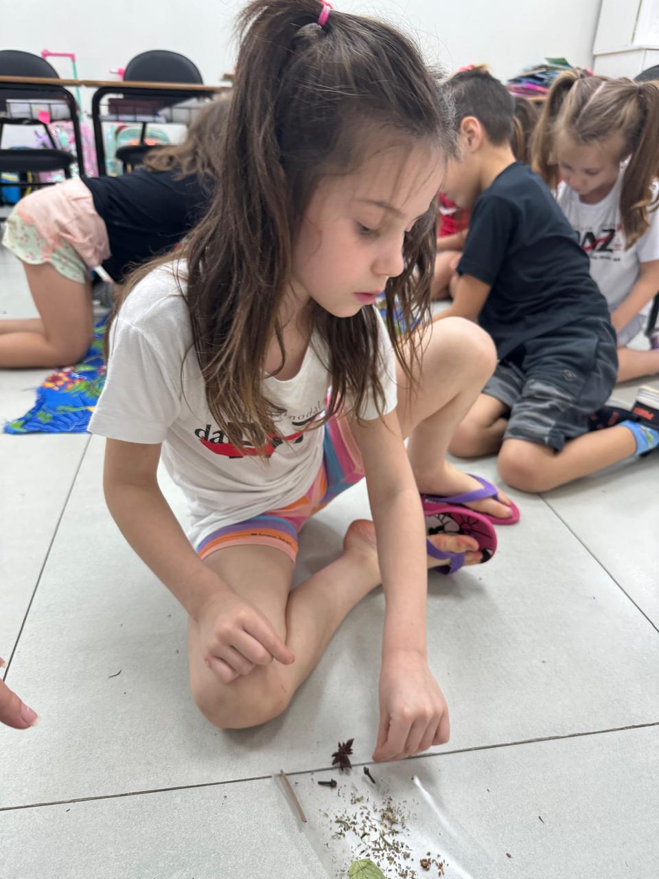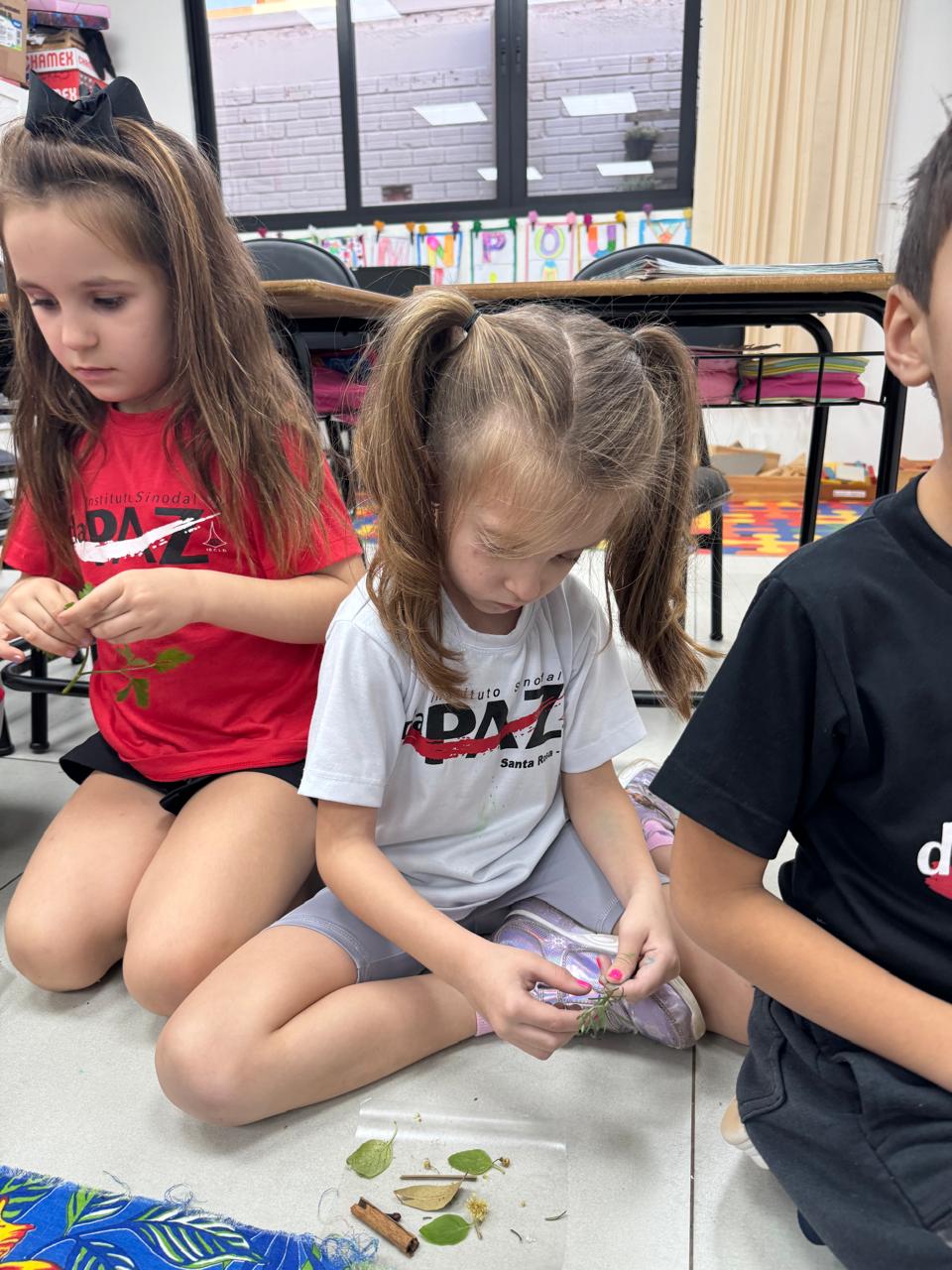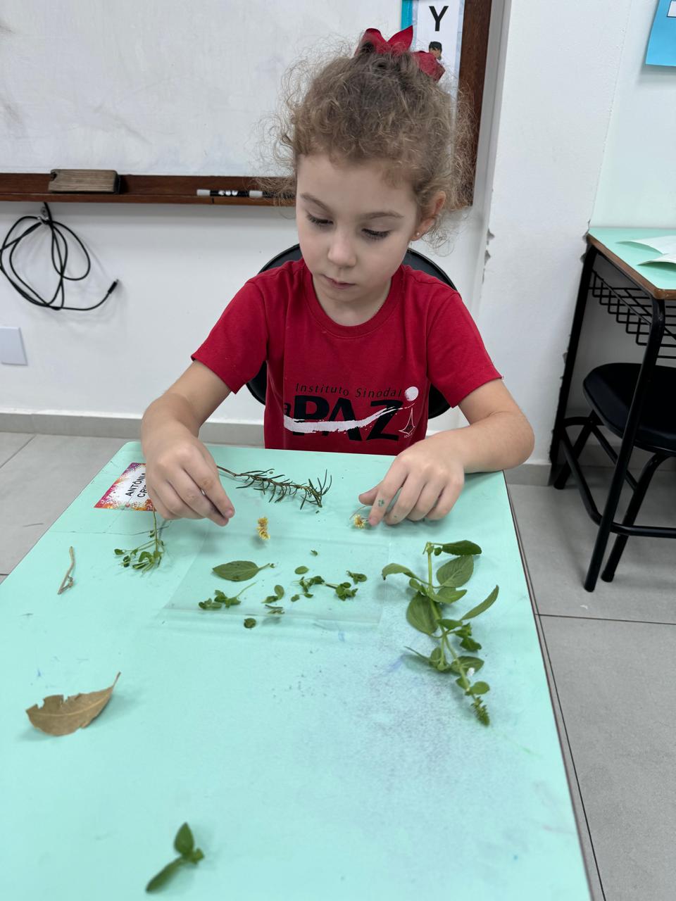 A turma da Pré-escola 05 anos da Professora Ana Paula, durante a Sequência Didática “Conhecendo as ervas aromáticas”, observaram as características dos elementos (cor, tamanho, forma e cheiro) também aprenderam o nome e os usos que podem ser feitos dela, em seguida realizaram uma colagem com esse material no livro de atividades.