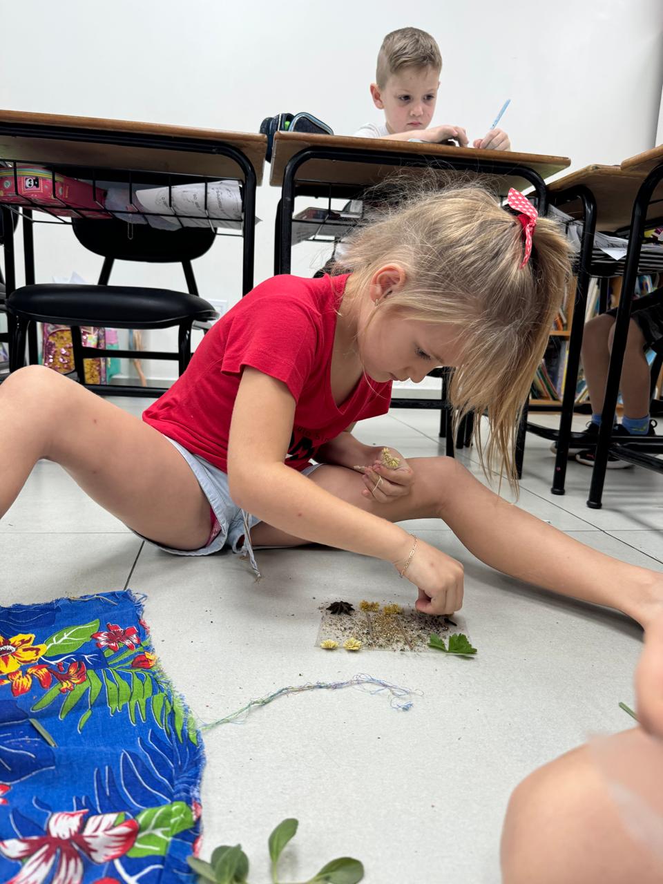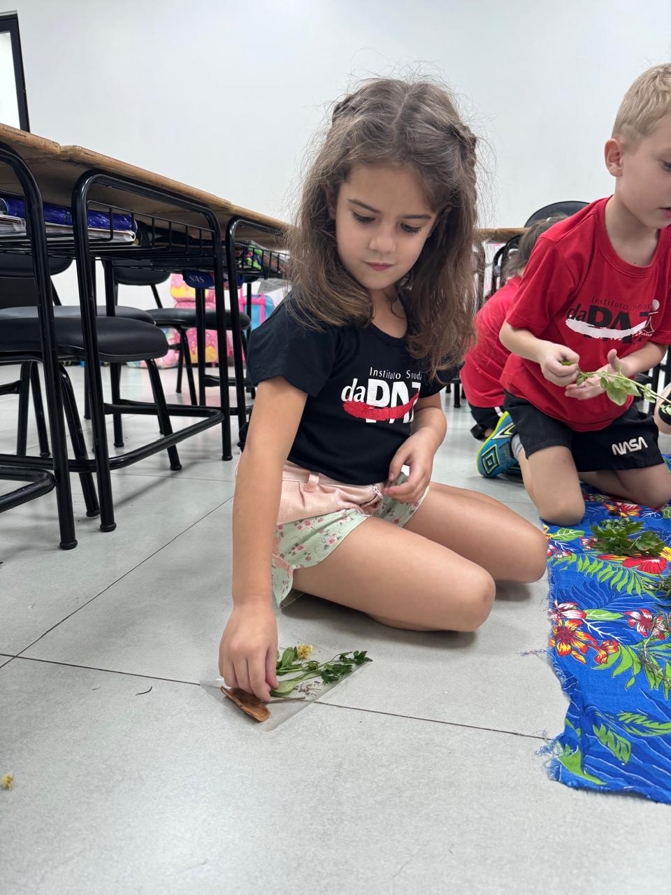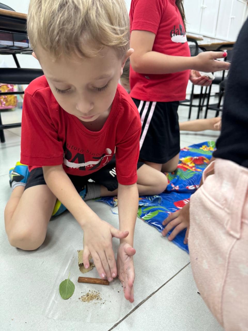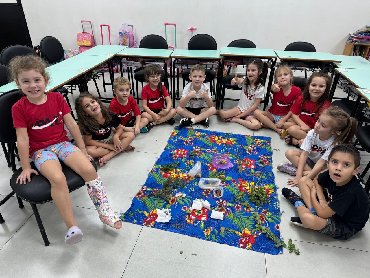 A turma da Pré-escola 05 anos da Professora Ana Paula, durante a Sequência Didática “Conhecendo as ervas aromáticas”, observaram as características dos elementos (cor, tamanho, forma e cheiro) também aprenderam o nome e os usos que podem ser feitos dela, em seguida realizaram uma colagem com esse material no livro de atividades.