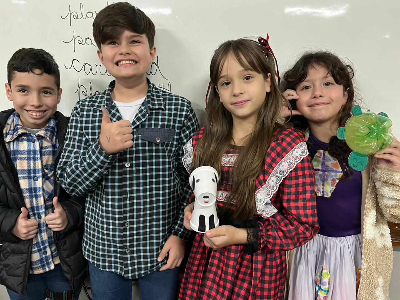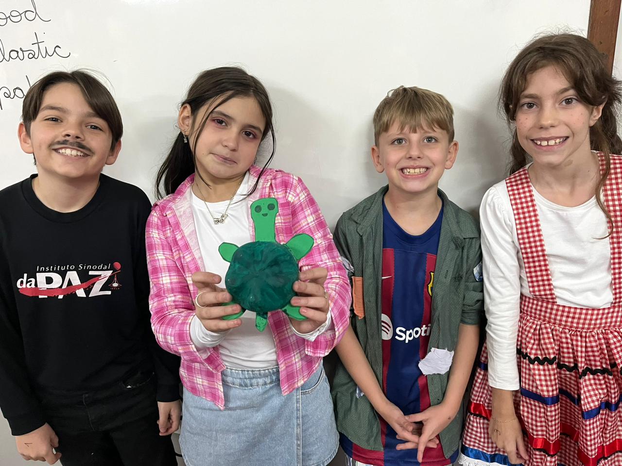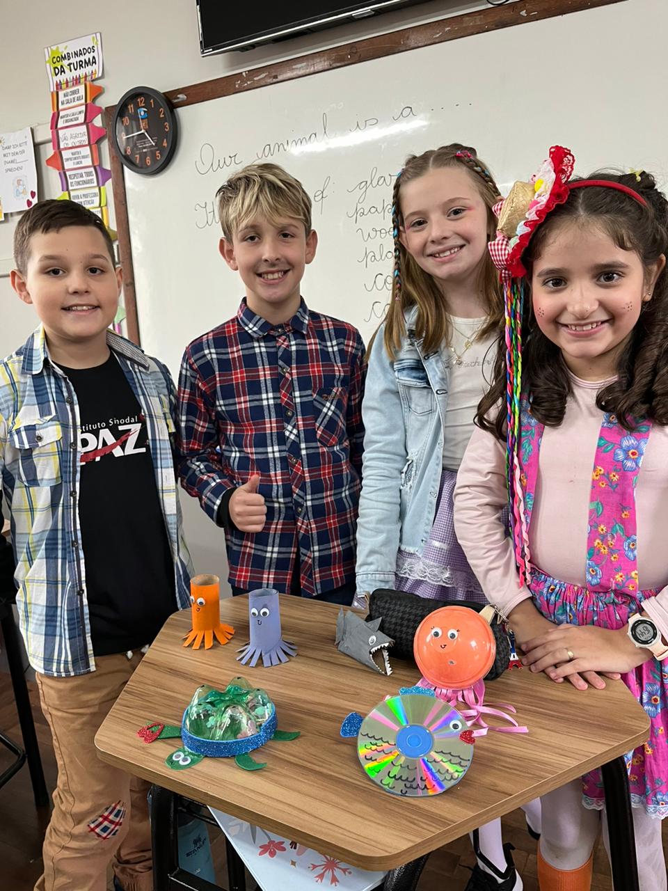 Os alunos dos quartos anos estão aprendendo sobre esculturas nas aulas de Língua Inglesa. Eles foram desafiados a criarem a escultura de algum animal usando materiais recicláveis. Confira o resultado dos nossos pequenos artistas! ????????