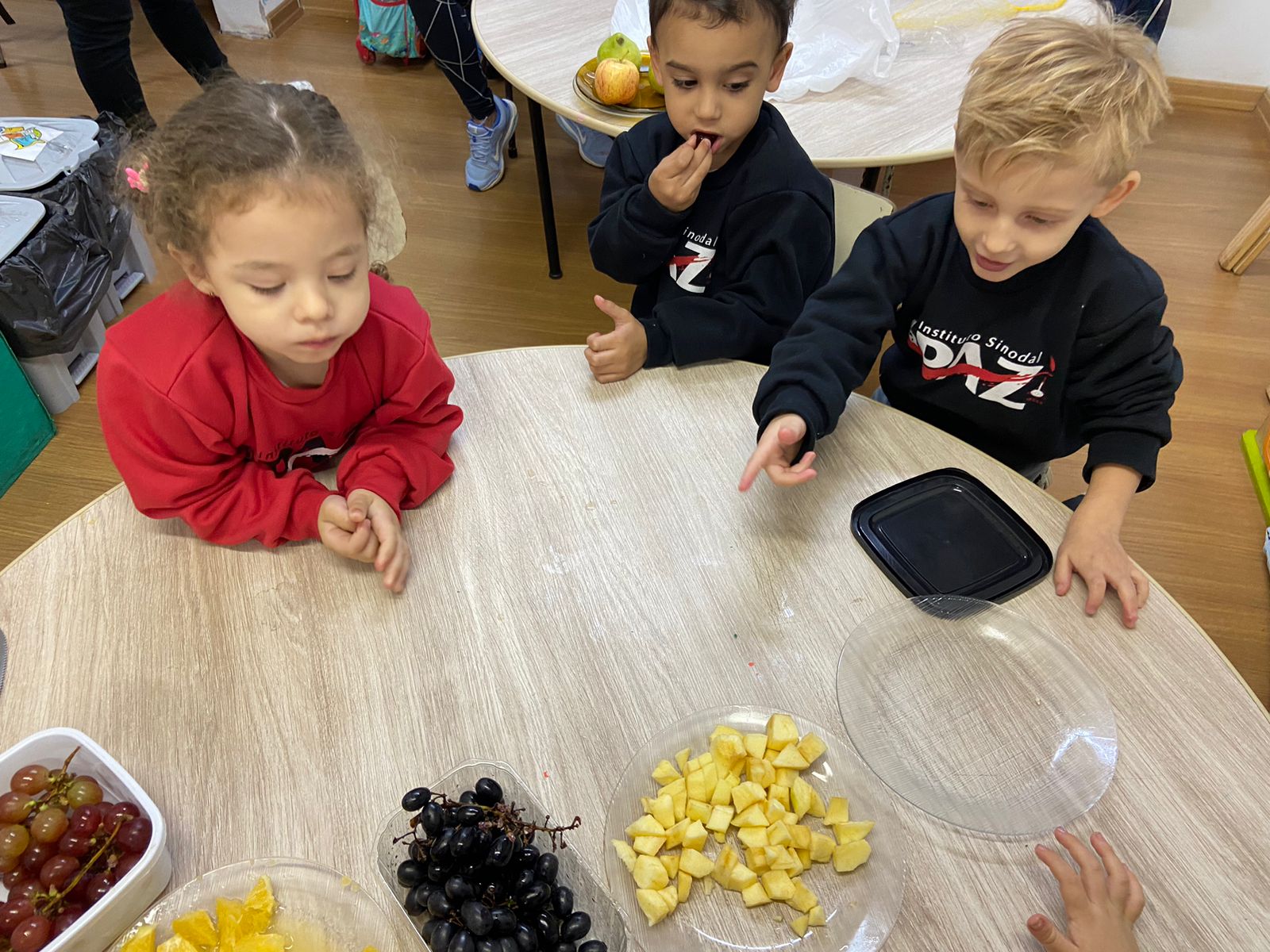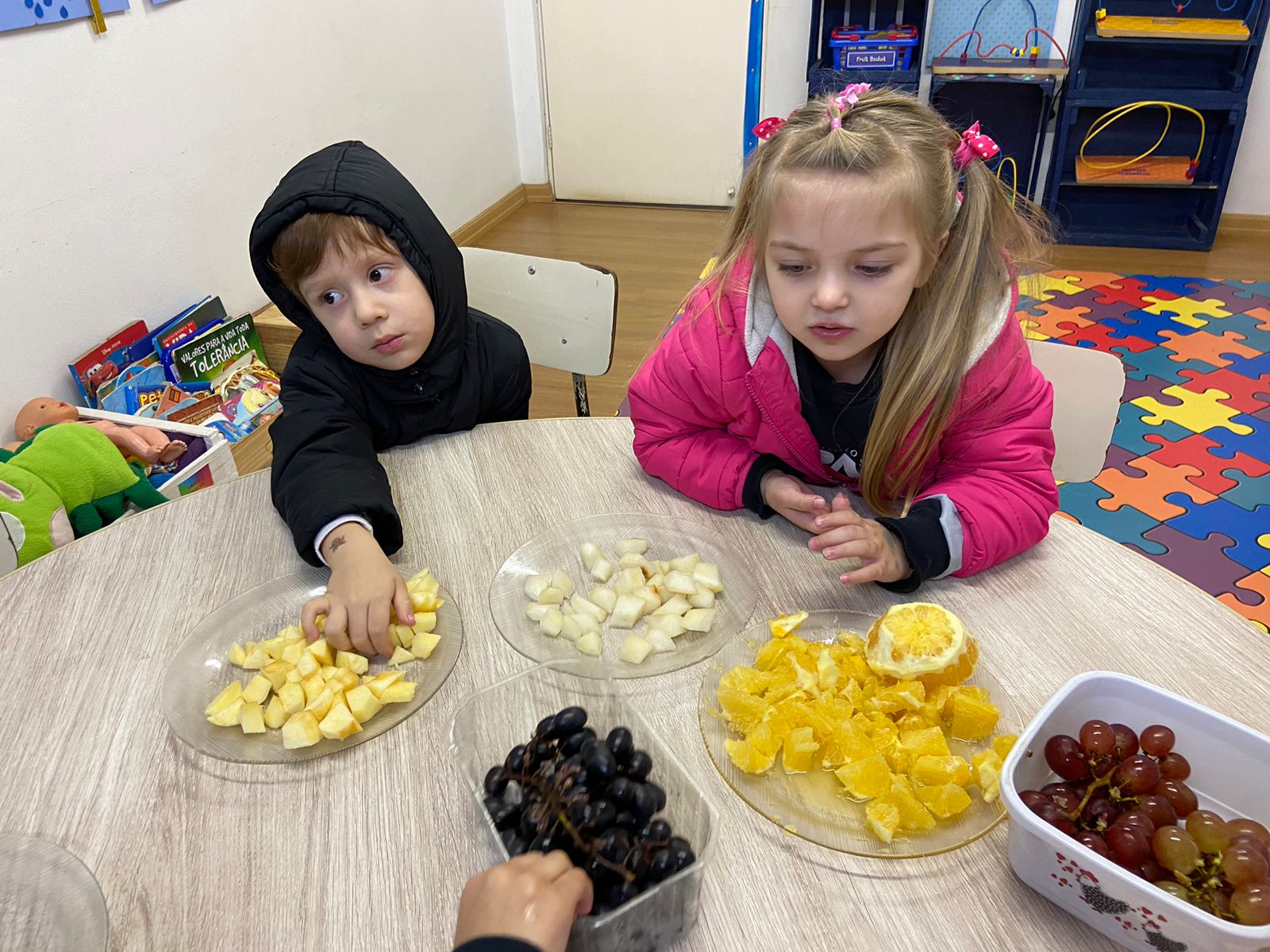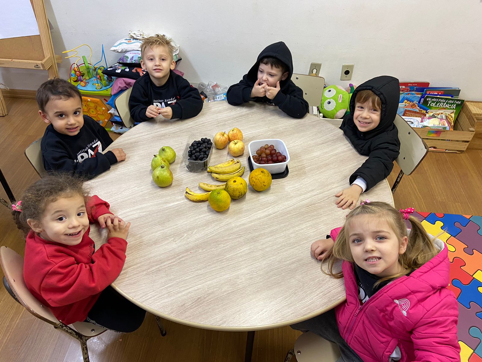 Para isso, cada um trouxe uma fruta para relembrar, praticar e, depois, degustá-las ????