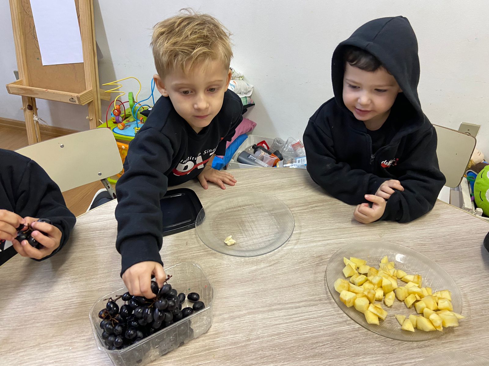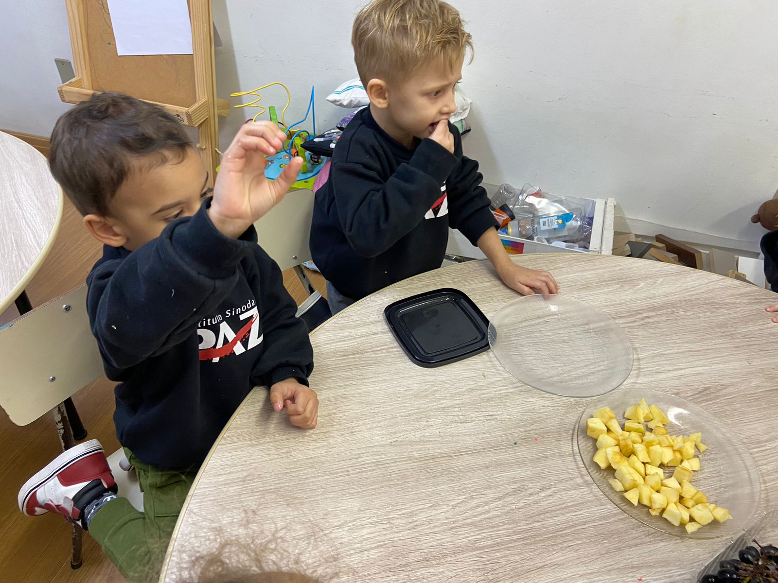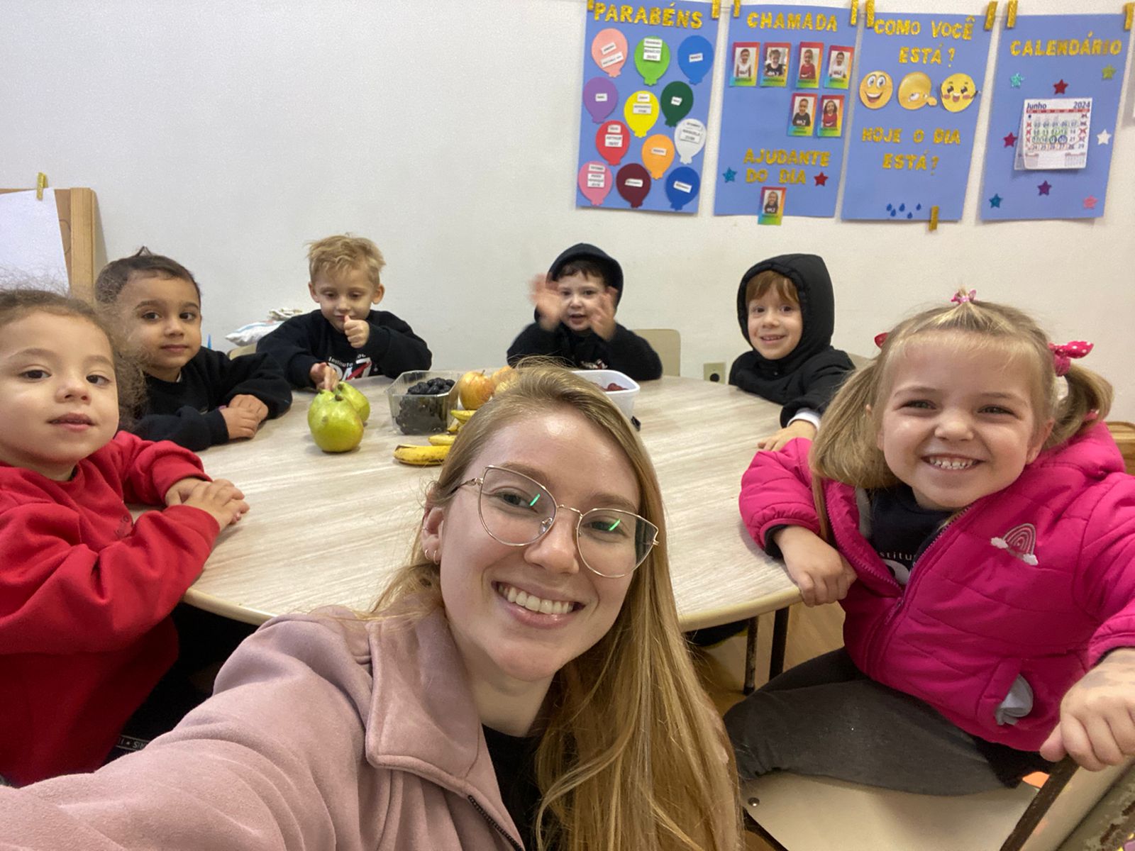 Para isso, cada um trouxe uma fruta para relembrar, praticar e, depois, degustá-las ????