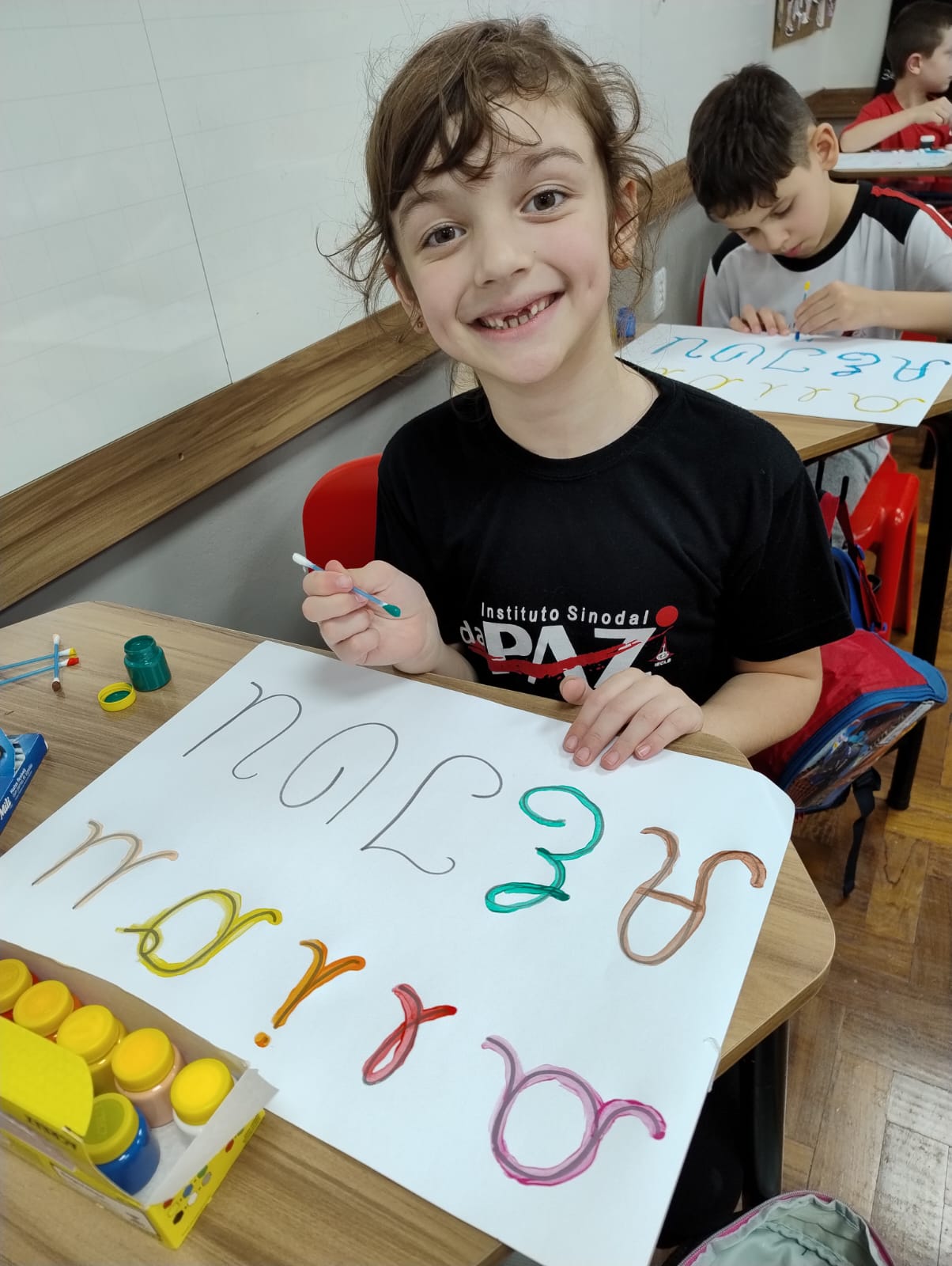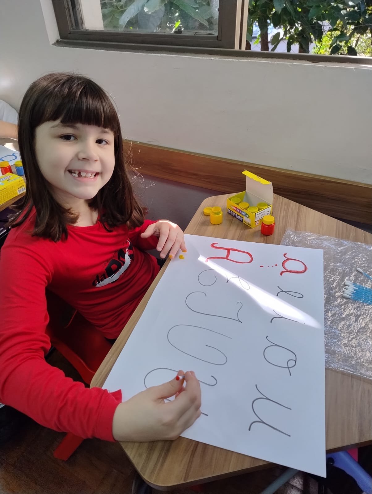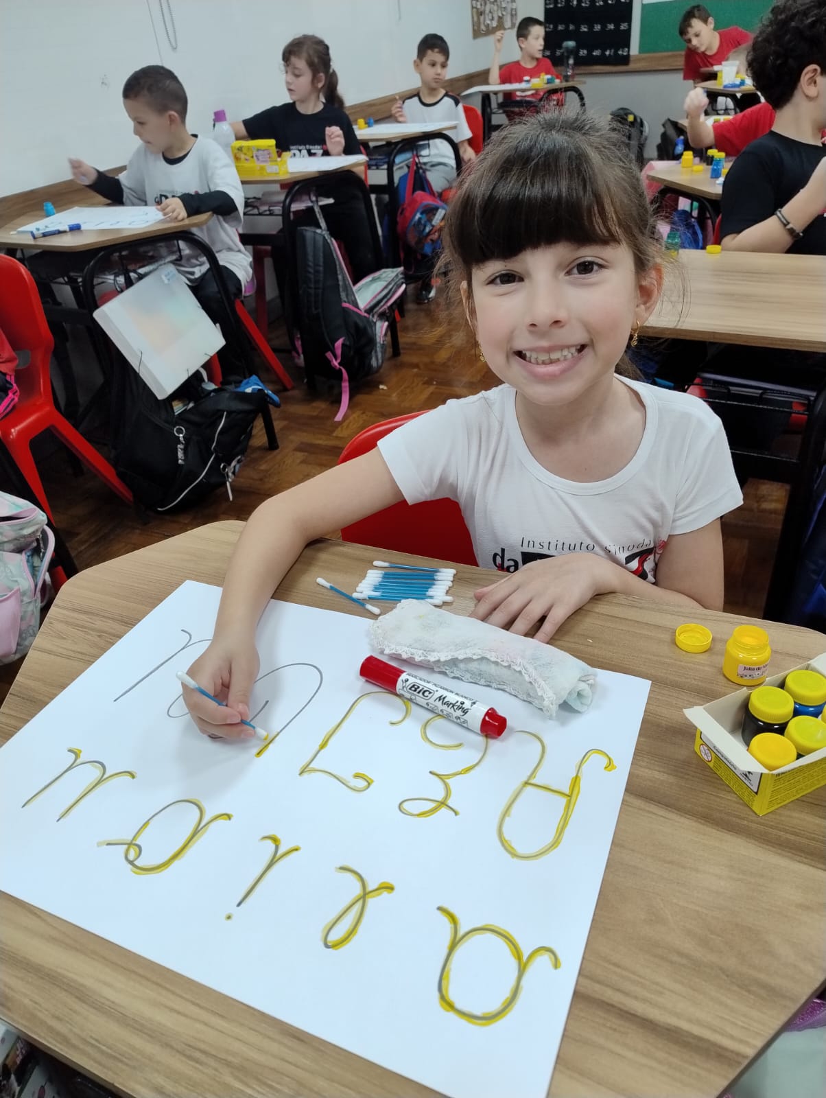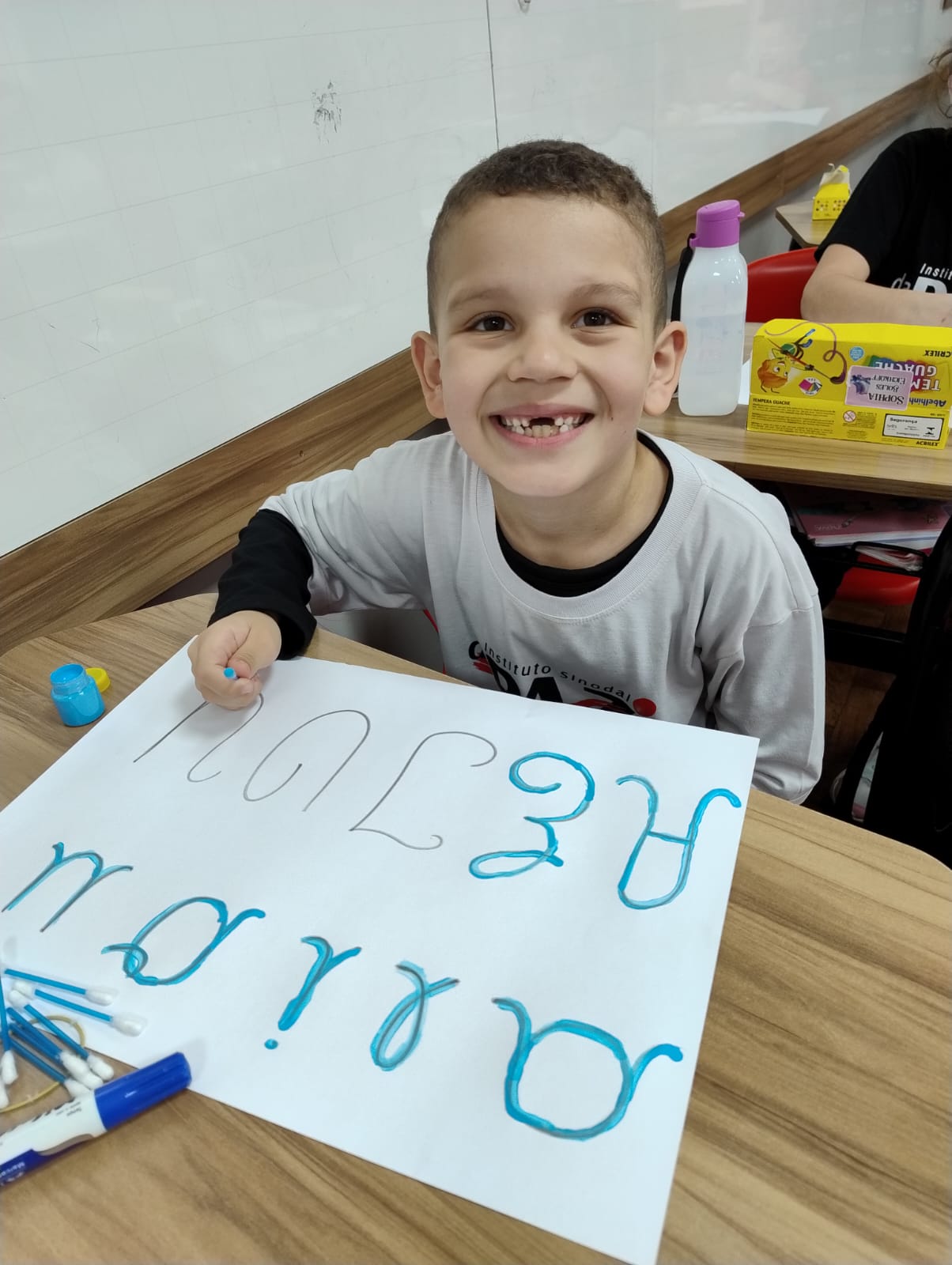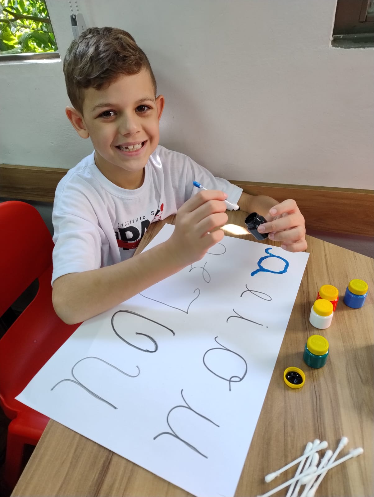 E assim iniciamos a escrita tão esperada da letra cursiva, aluno do