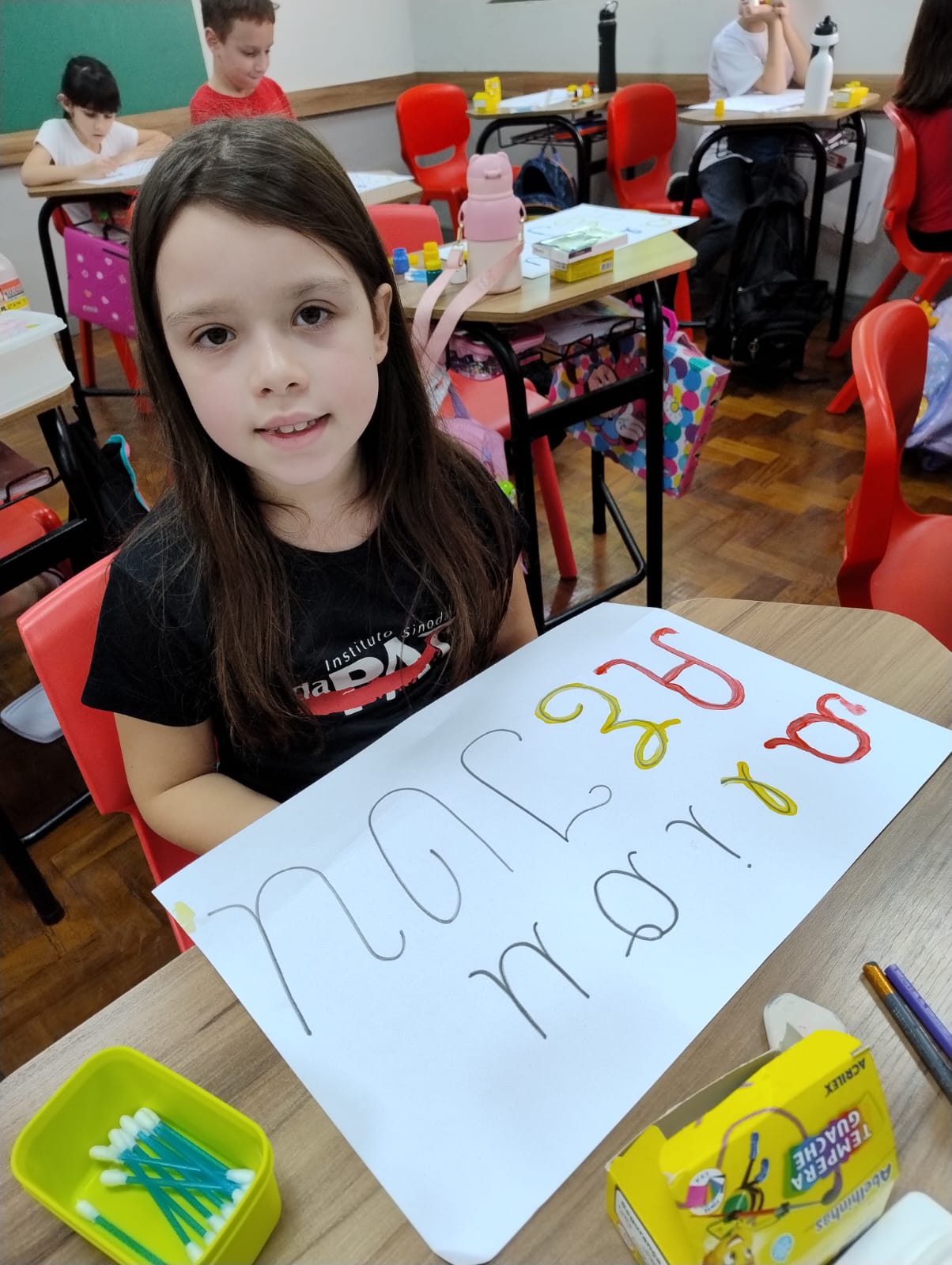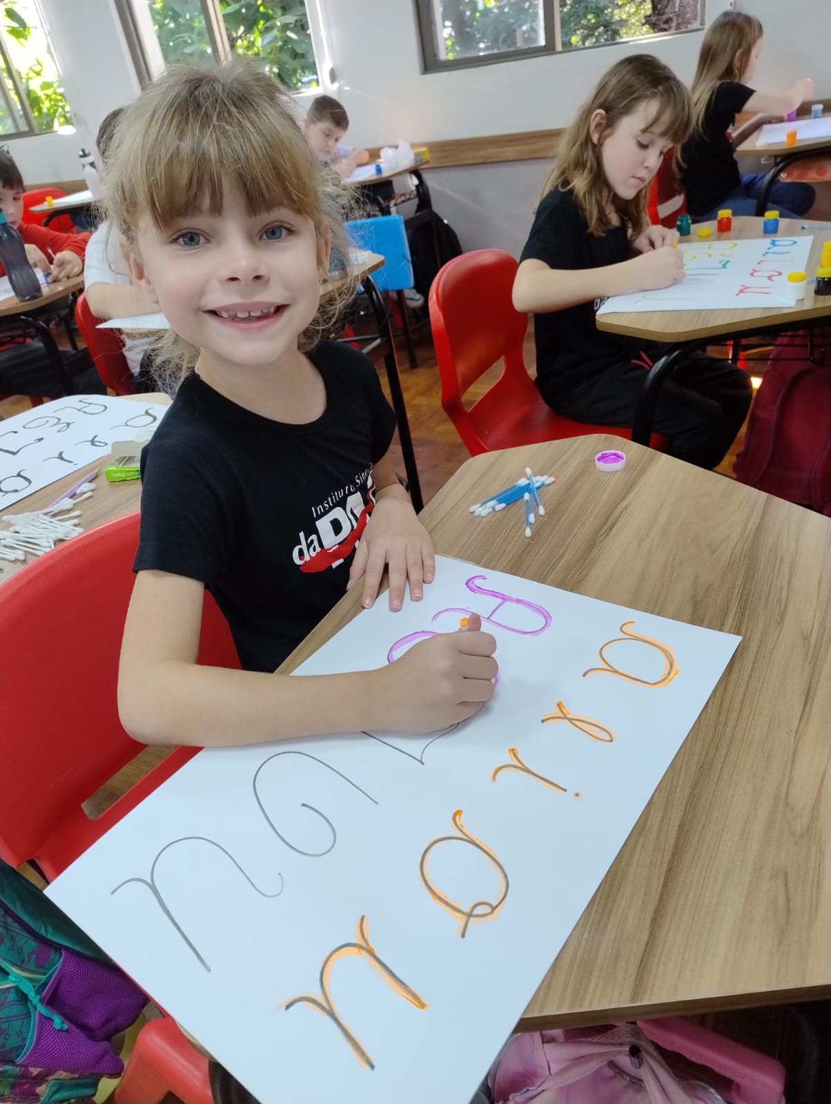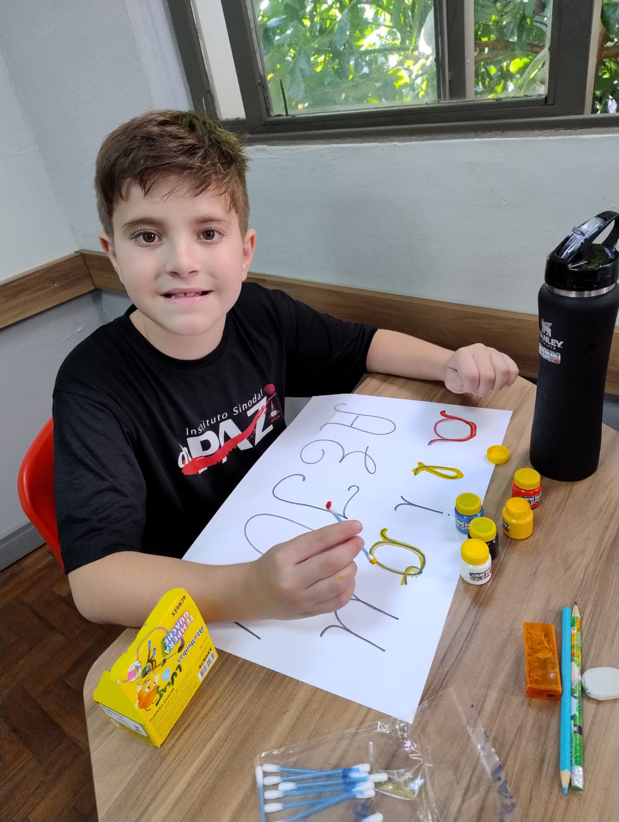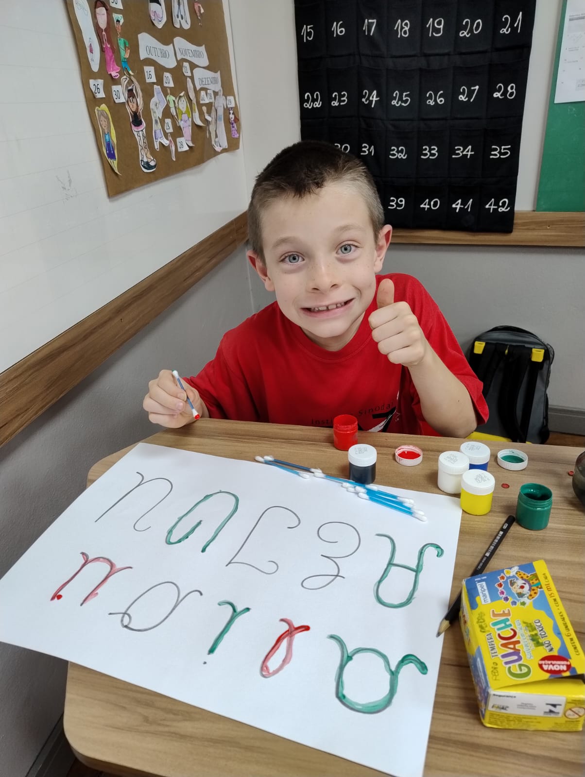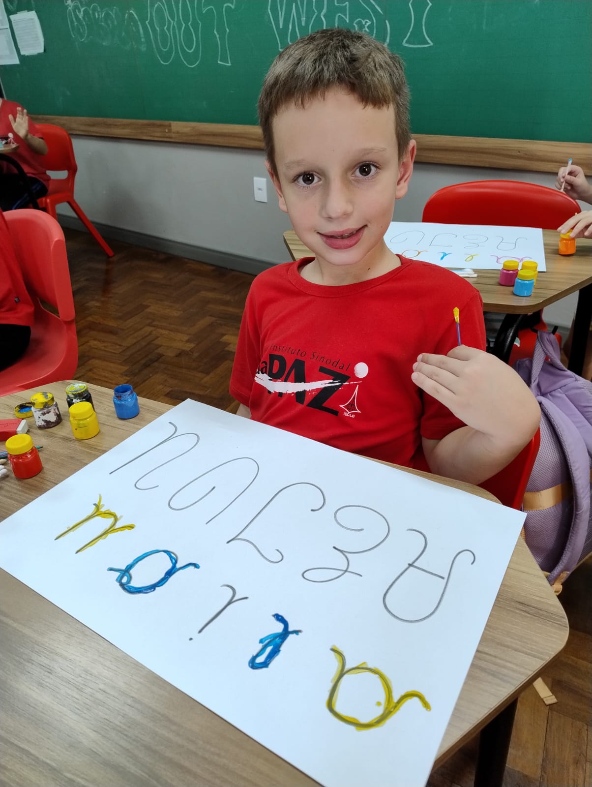 E assim iniciamos a escrita tão esperada da letra cursiva, aluno do