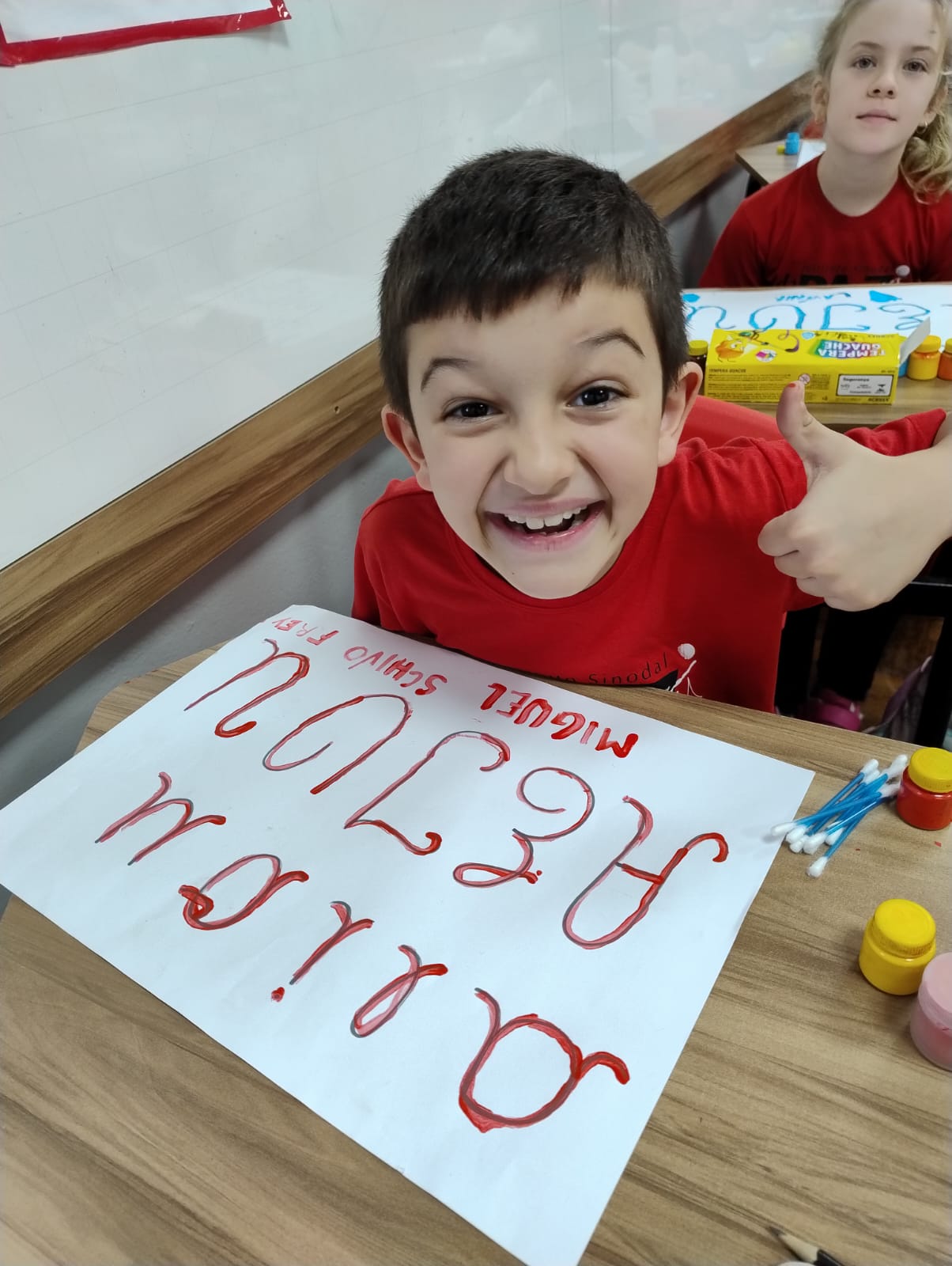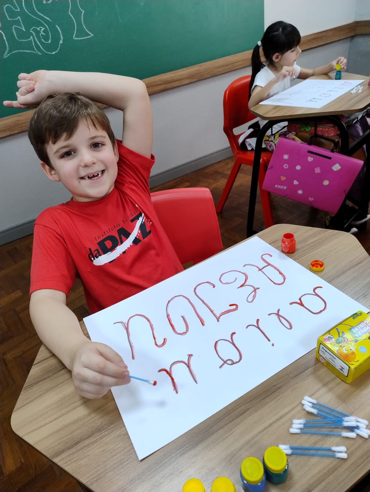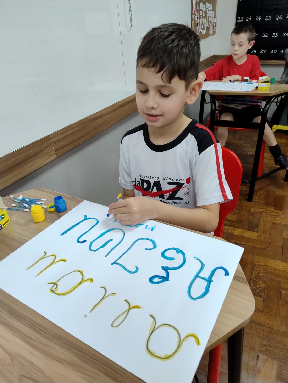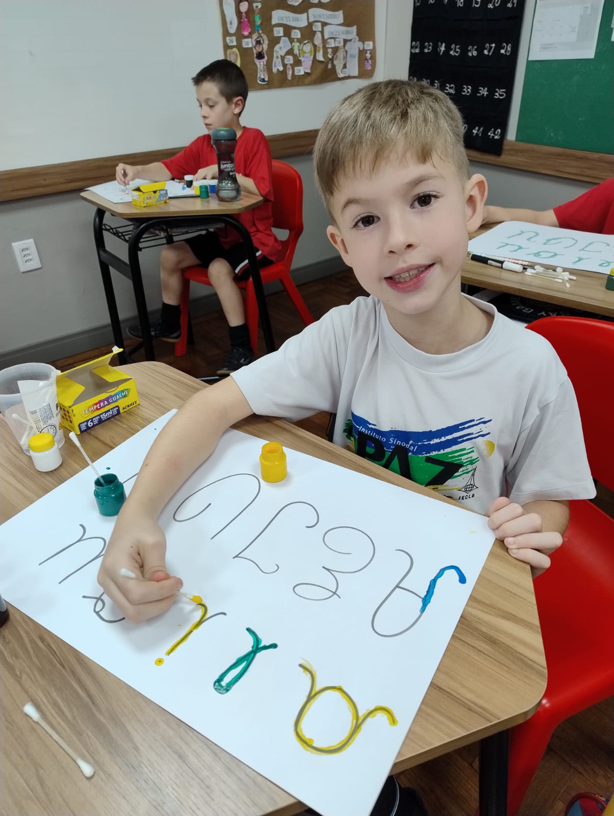E assim iniciamos a escrita tão esperada da letra cursiva, aluno do