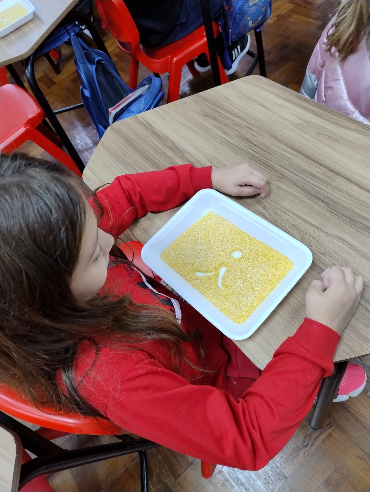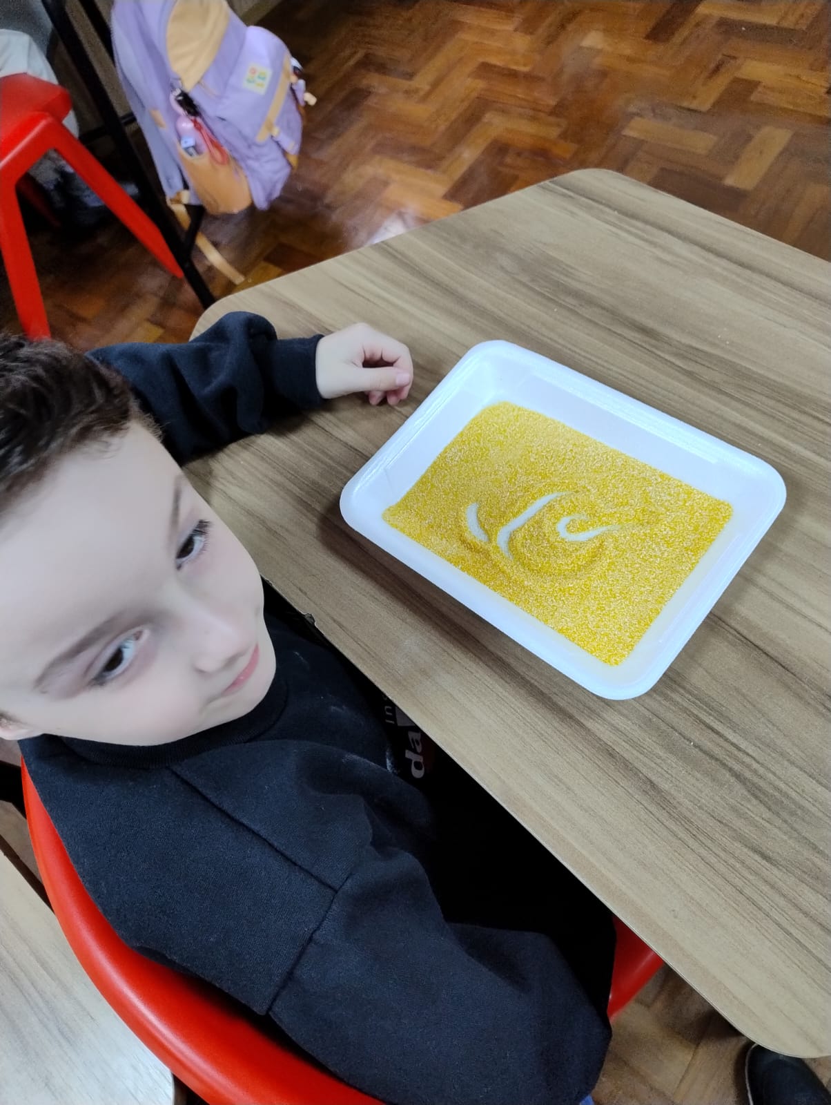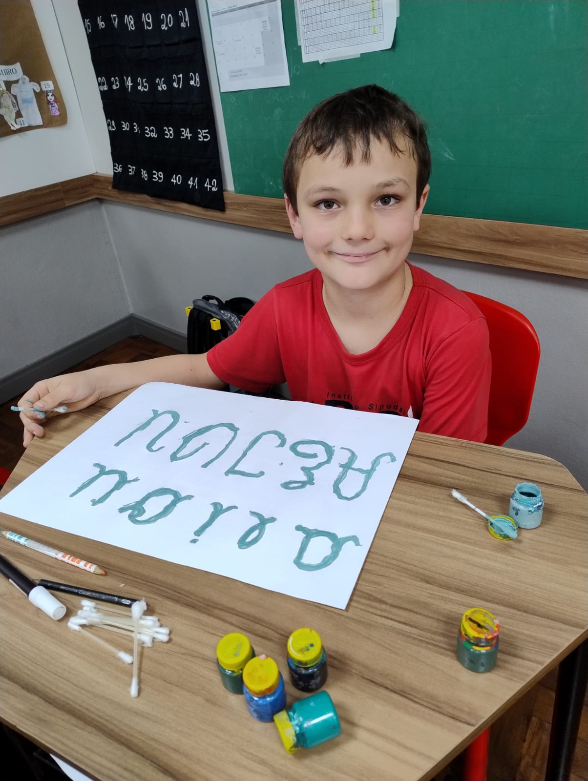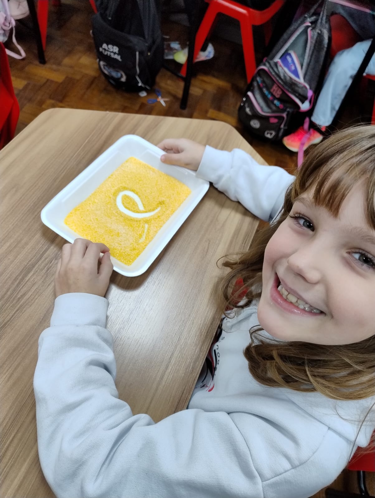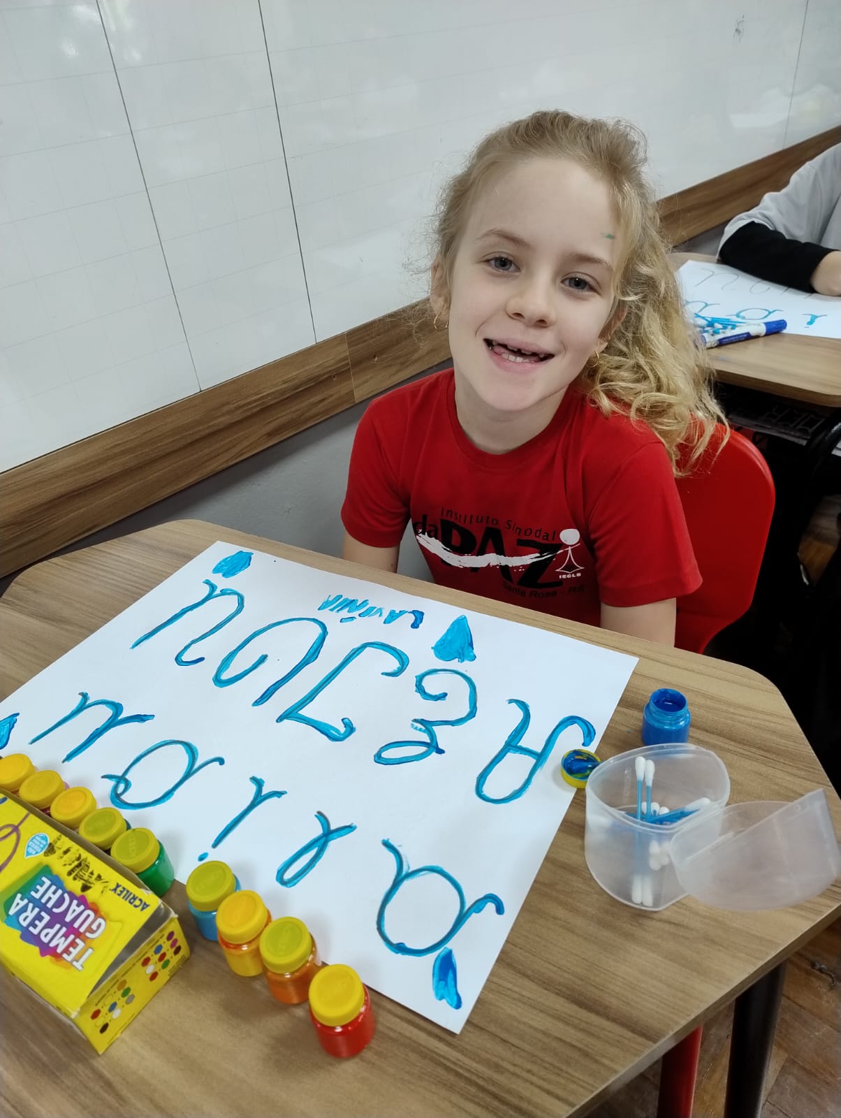 E assim iniciamos a escrita tão esperada da letra cursiva, aluno do