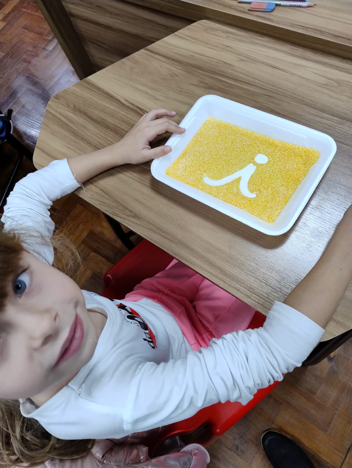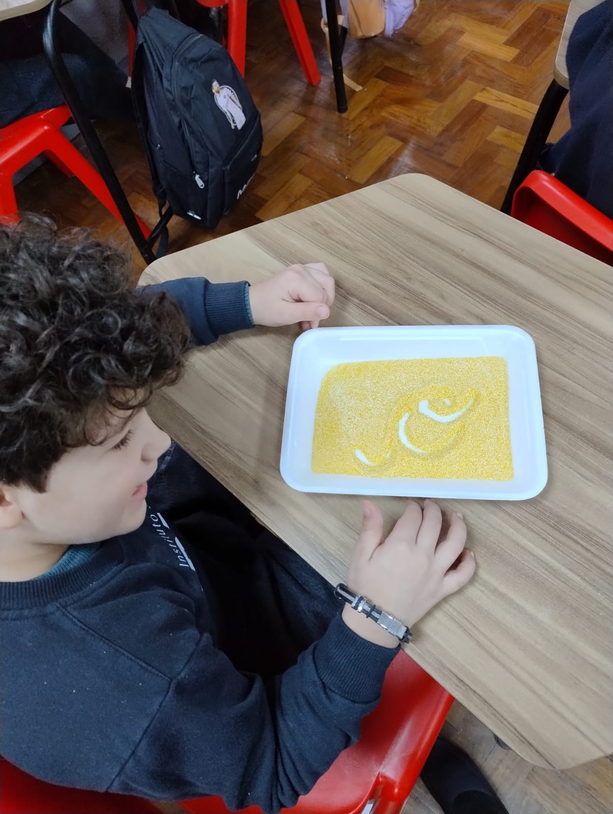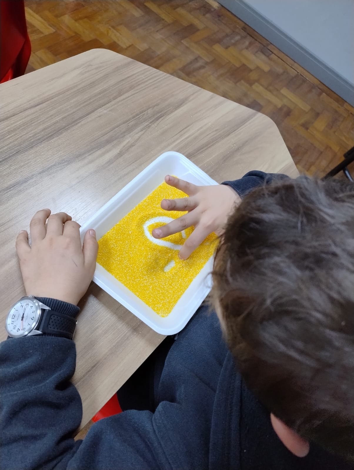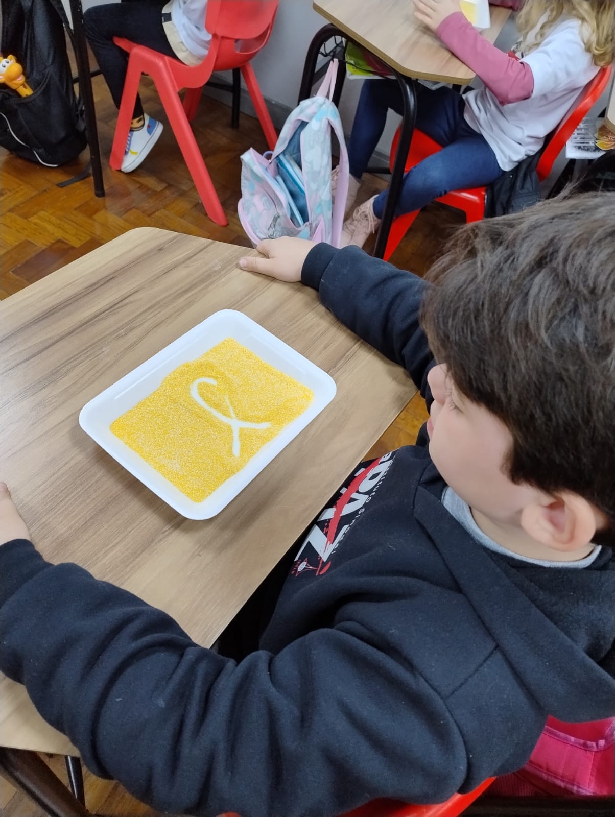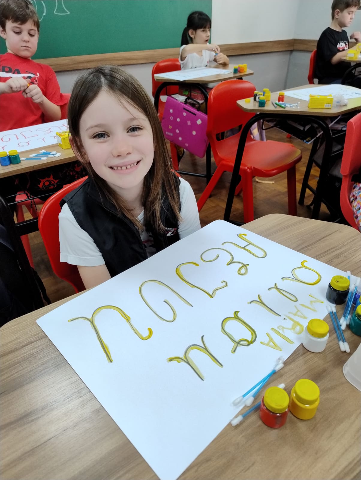 E assim iniciamos a escrita tão esperada da letra cursiva, aluno do