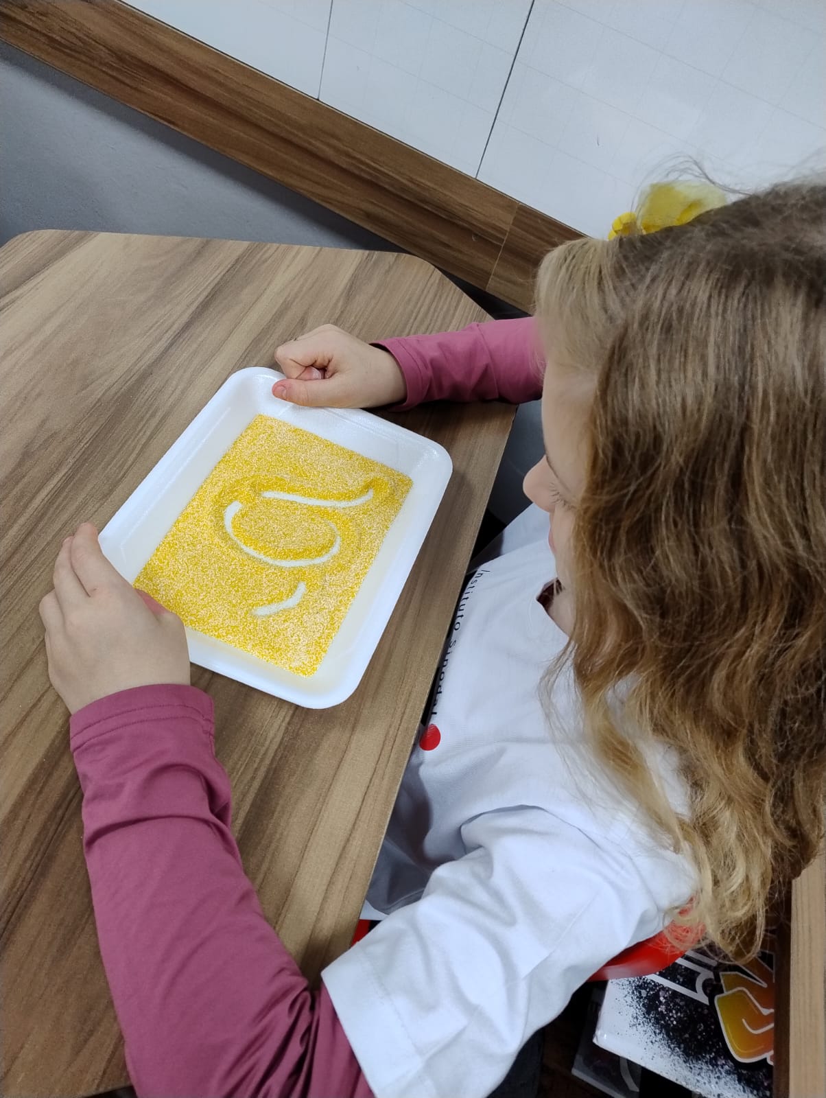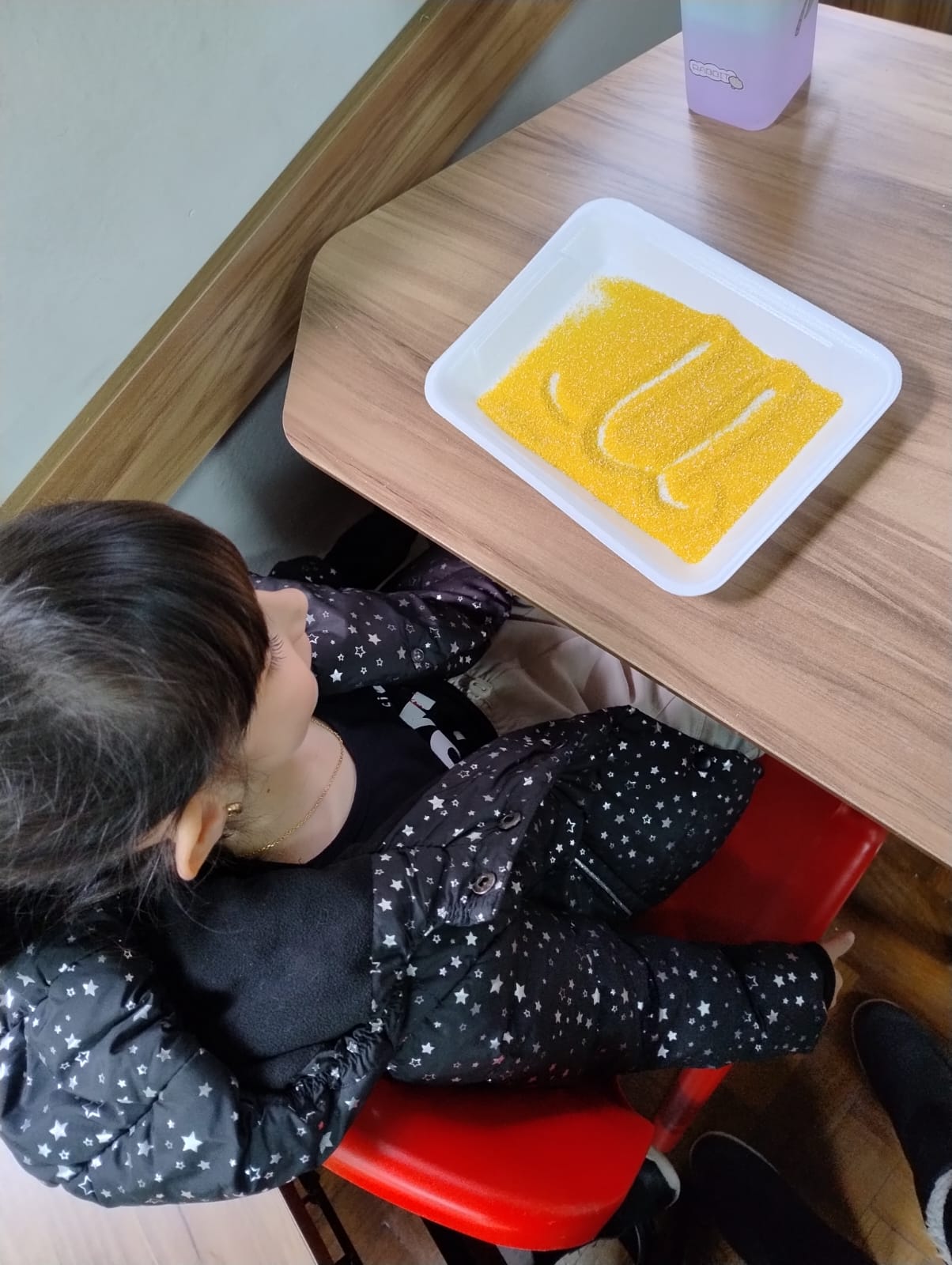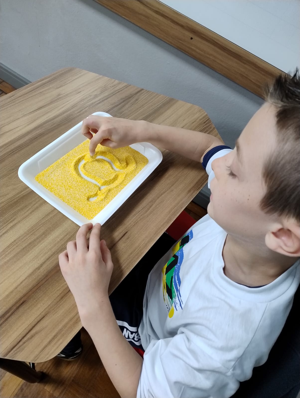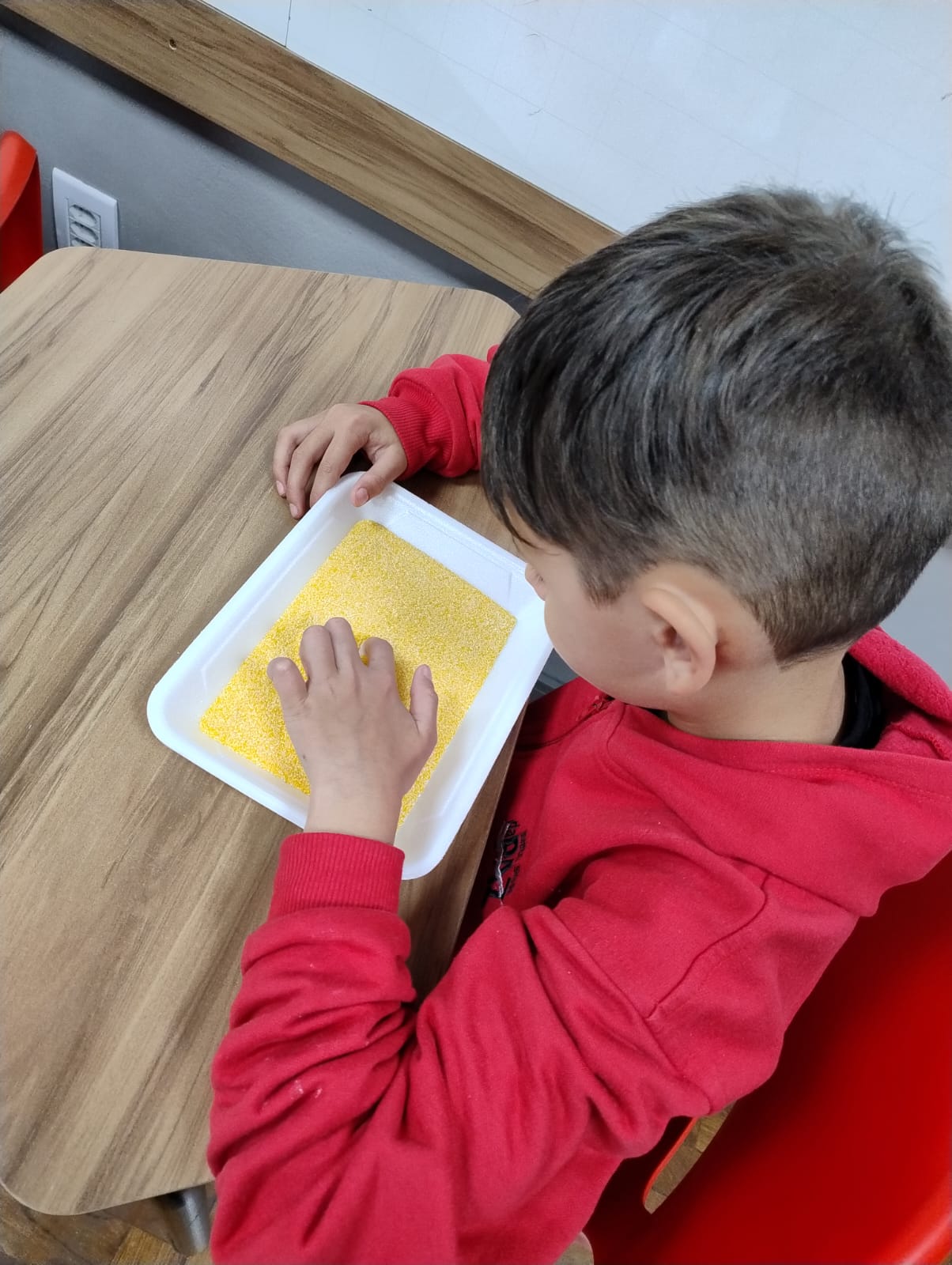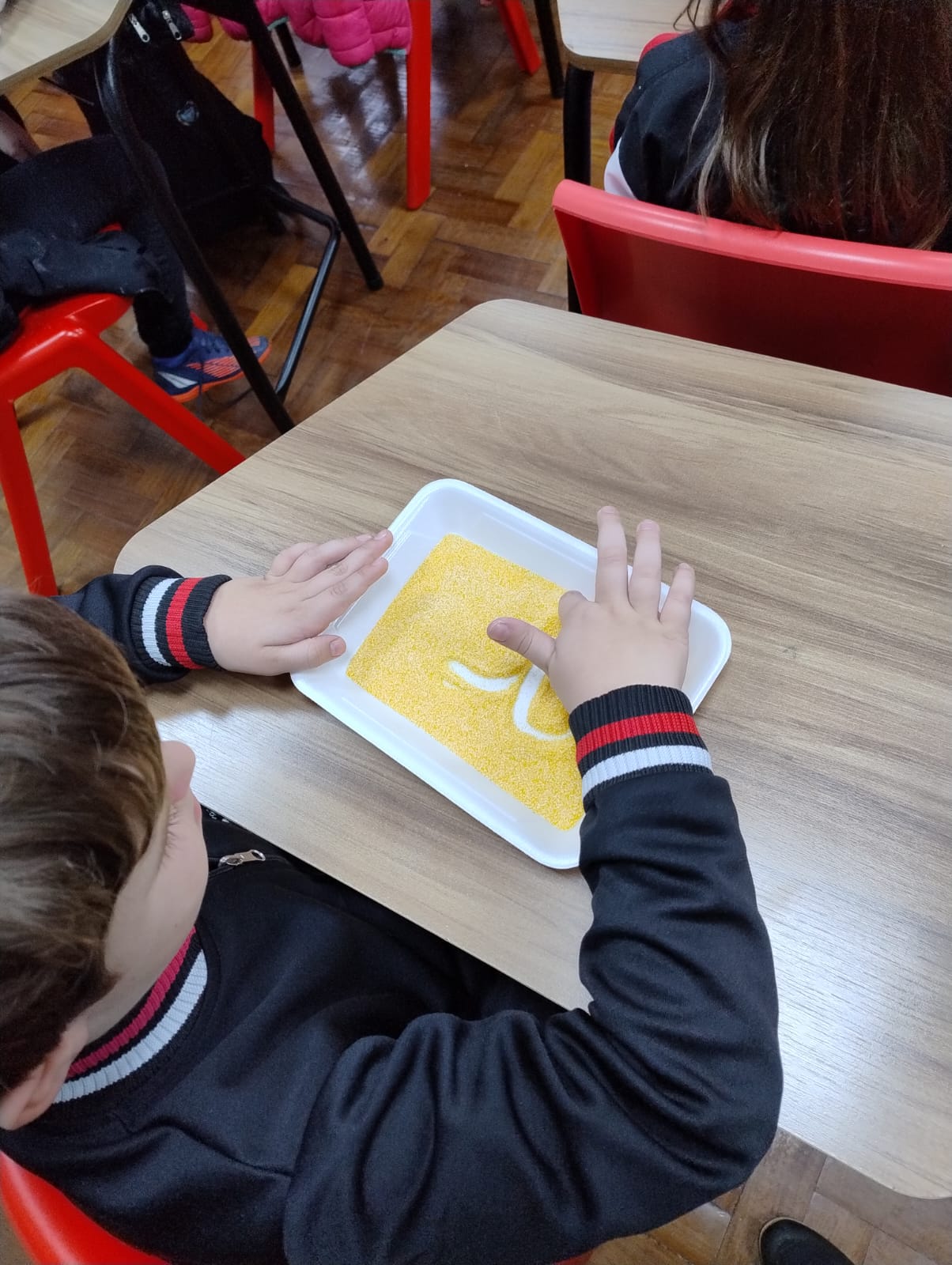 E assim iniciamos a escrita tão esperada da letra cursiva, aluno do
