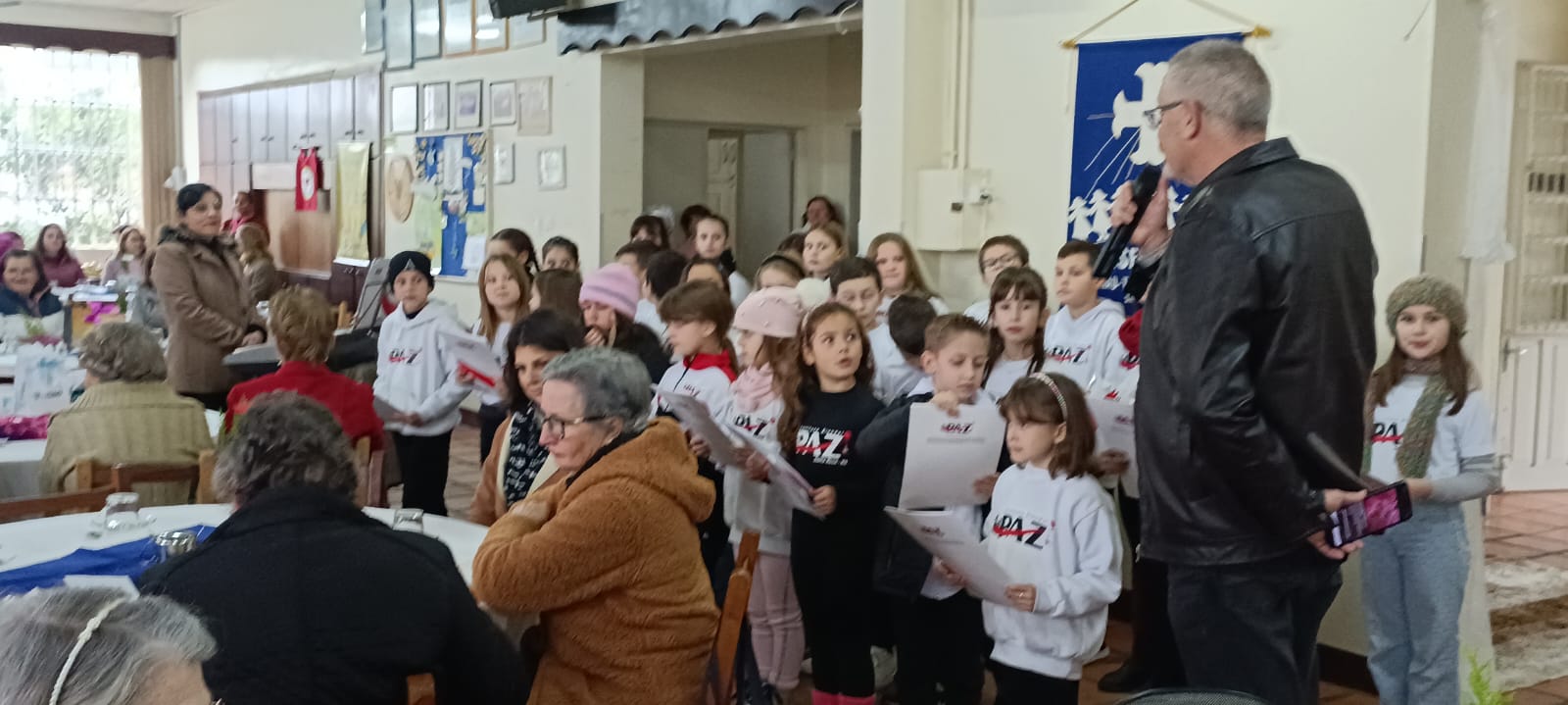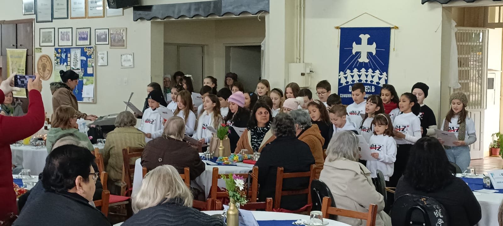 Na tarde do dia 11 de julho, o Coral Infantil - 3º e 4º anos dos Ens. Fundamental do Instituto Sinodal da Paz, acompanhado da profª Silvana de Moraes Schneider, se apresentou durante o Chá dos 79 anos da OASE - Ordem Auxiliadora de Senhoras Evangélicas.
