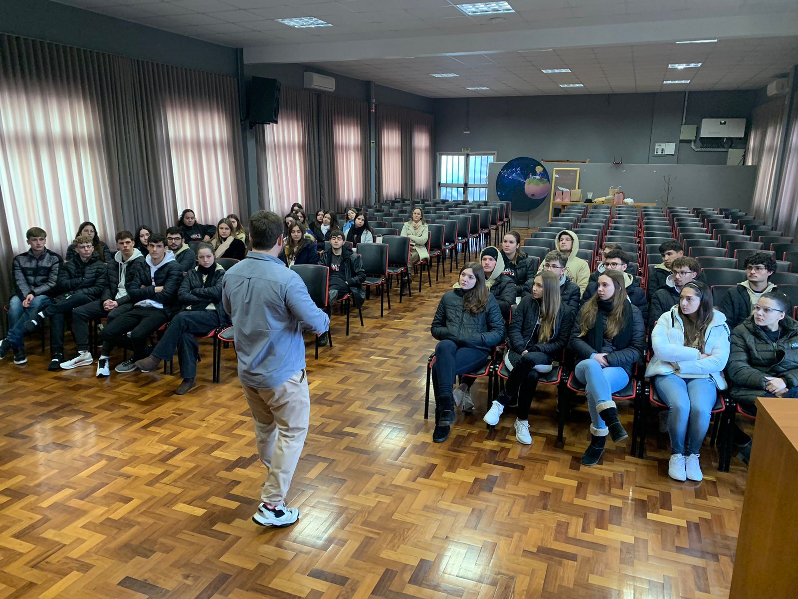Na manhã do dia 11/07, conduzidos pela professora Lidiane, os alunos do Terceirão tiveram uma palestra com o médico neurologista Dr. Bruno Bez, ex aluno do Da Paz. Na oportunidade, puderam tirar dúvidas relevantes com relação a profissão, formação acadêmica e assuntos que envolvem o dia a dia do médico.