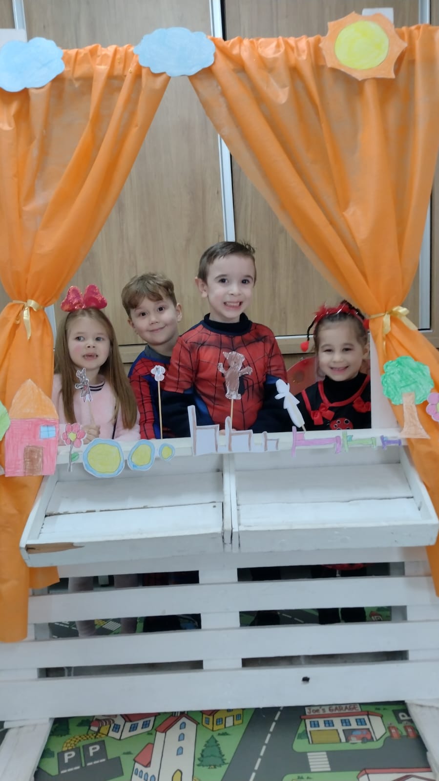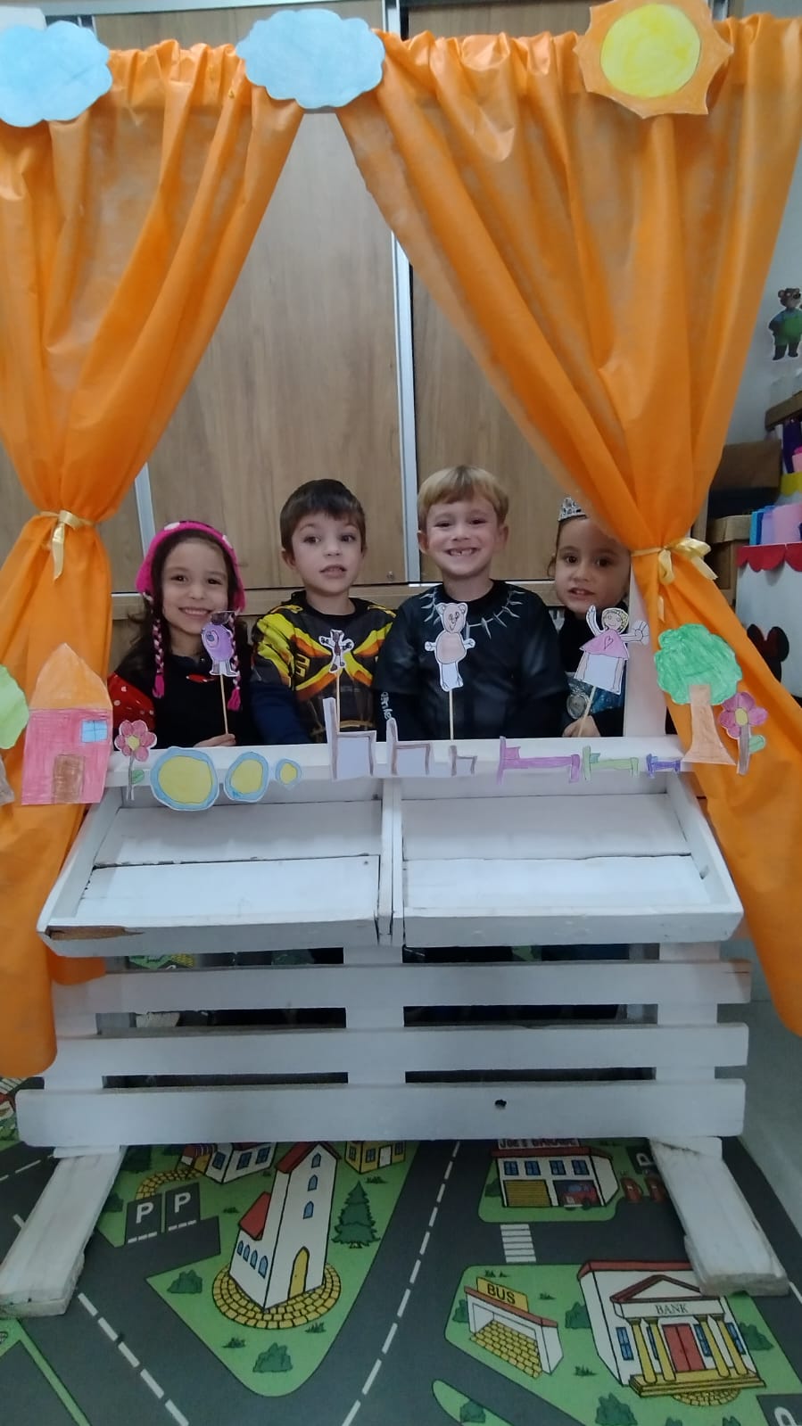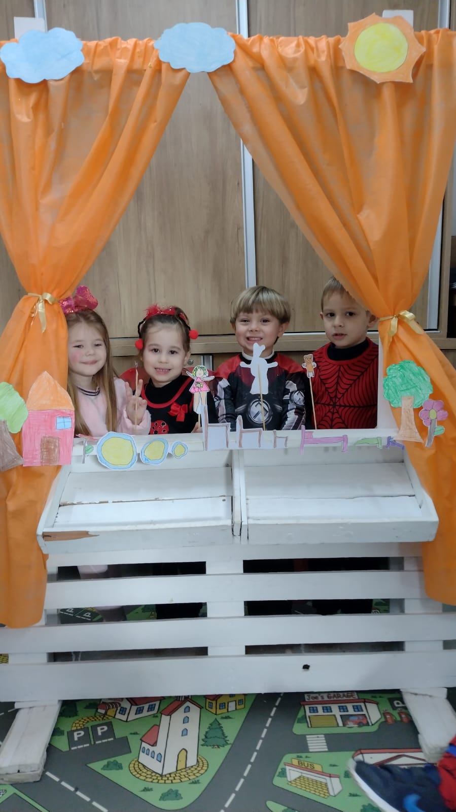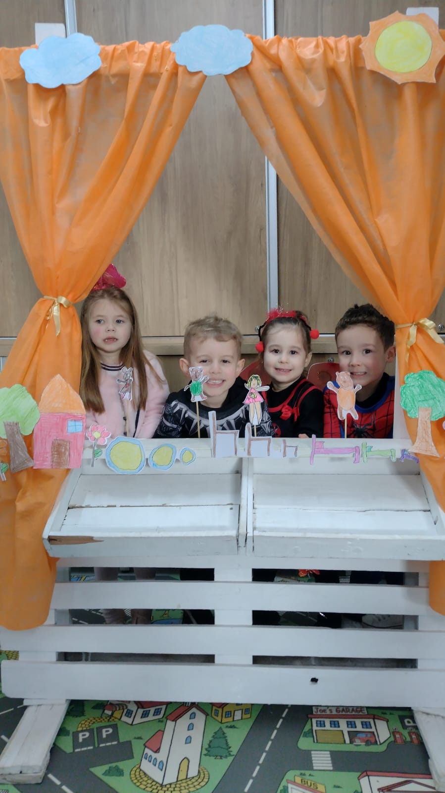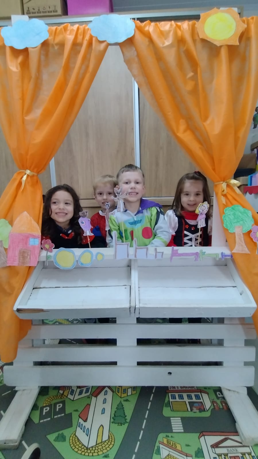A partir da Sequência Didática "Teatro de bonecos", os alunos da Pré-escola 04 anos da professora Tamara, realizaram diversas atividades, a partir da história Cachinhos Dourados e os Três Ursos, onde eles ouviram a história, construíram os personagens e o cenário, e para o fechamento da sequência, os alunos realizaram a apresentação do teatro de bonecos para as professoras e colegas. As crianças se divertiram e aprenderam muito.
