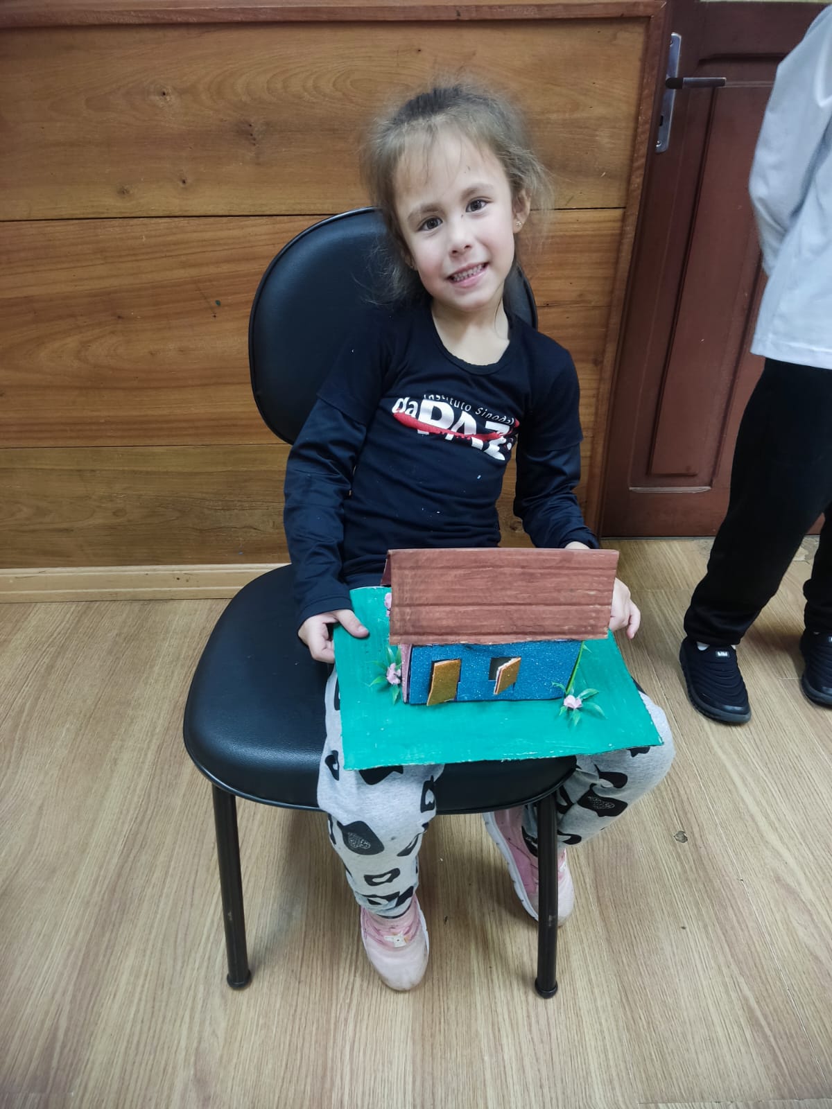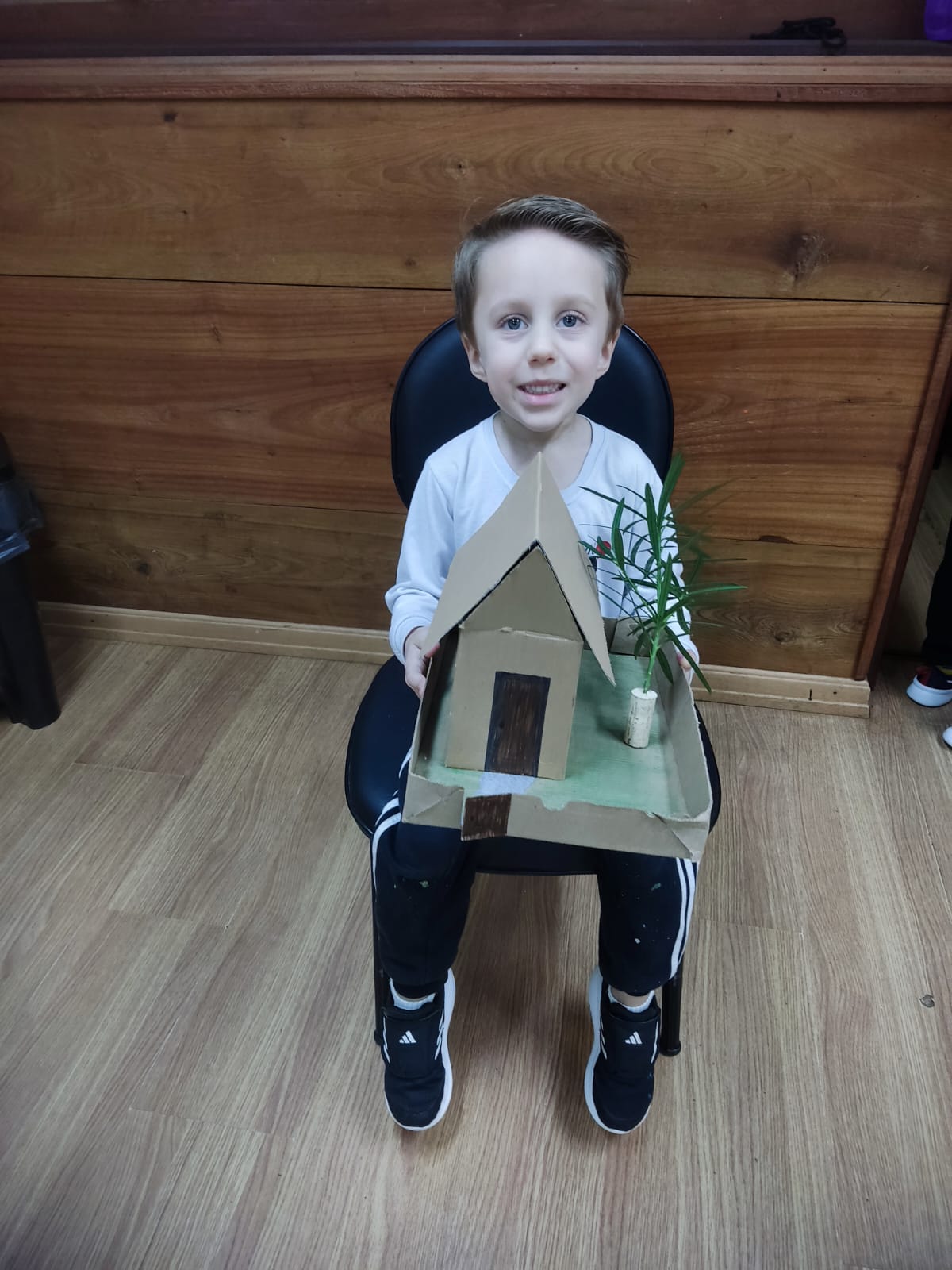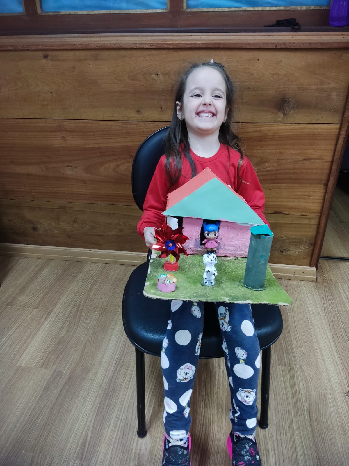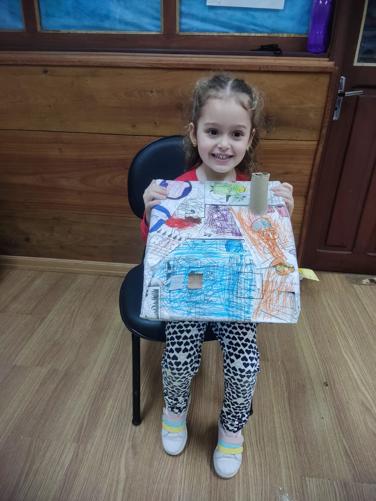 Durante o estudo da Sequência Didática "As formas geométricas do mundo", a turma da Pré-escola 04 anos da professora Vanessinha foi convidada a construir uma casa com materiais recicláveis, a atividade foi realizada junto com as famílias.