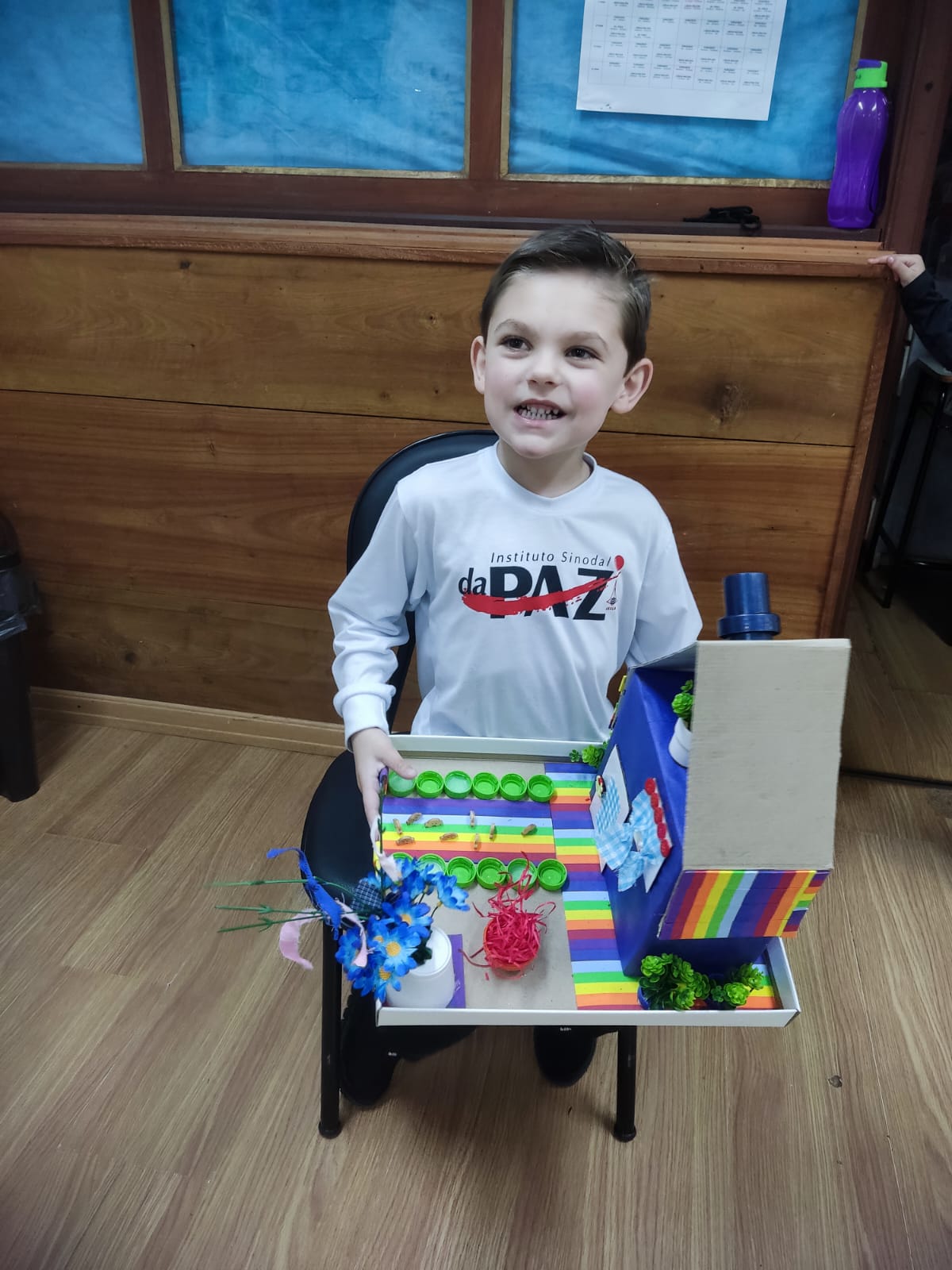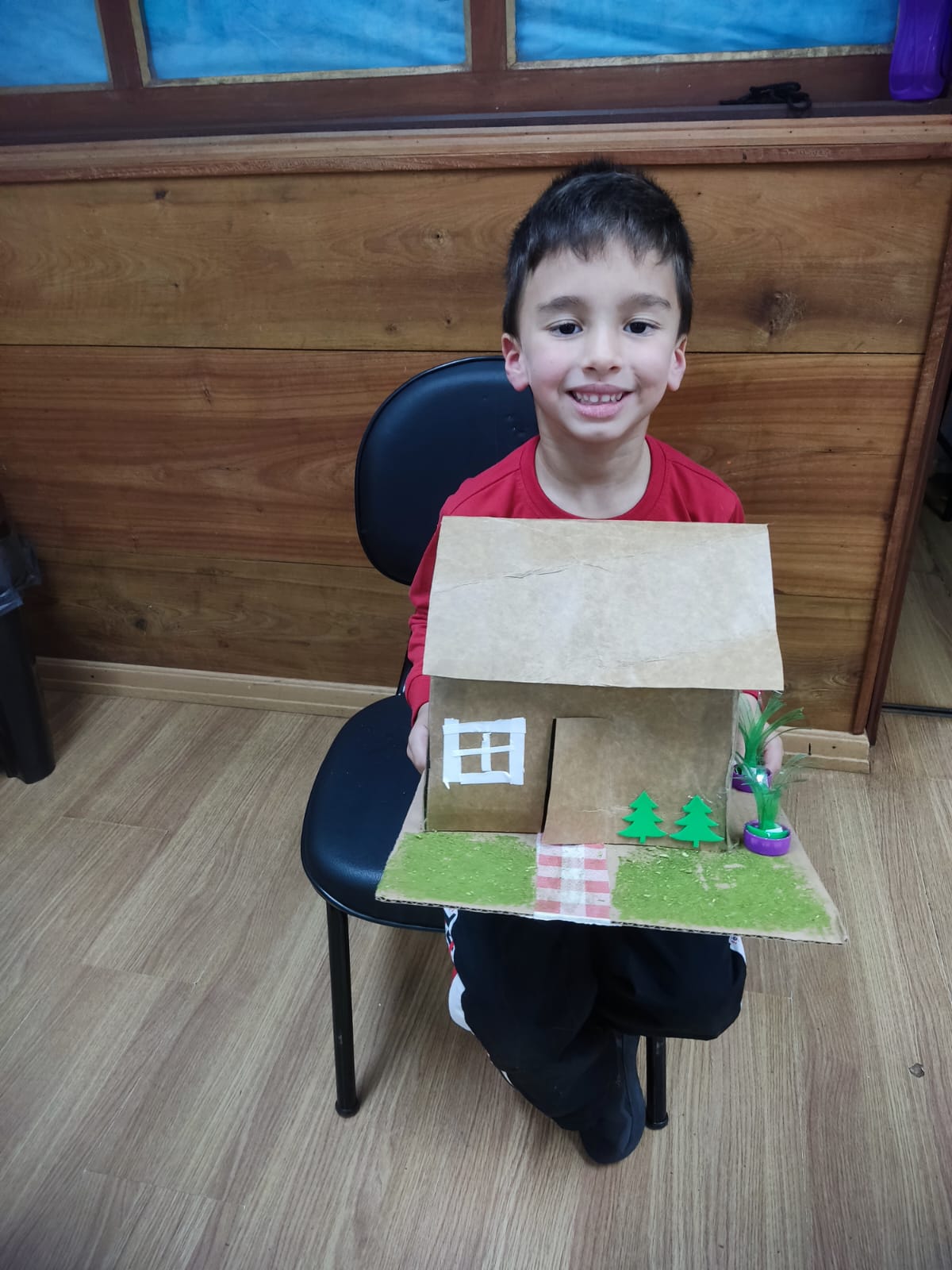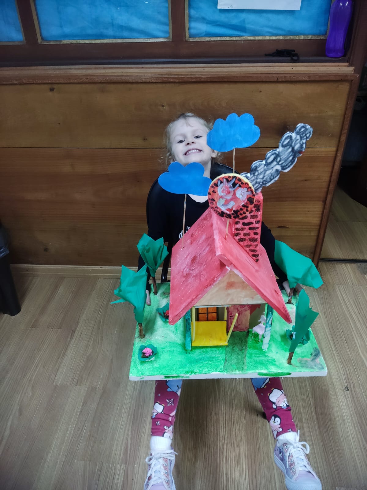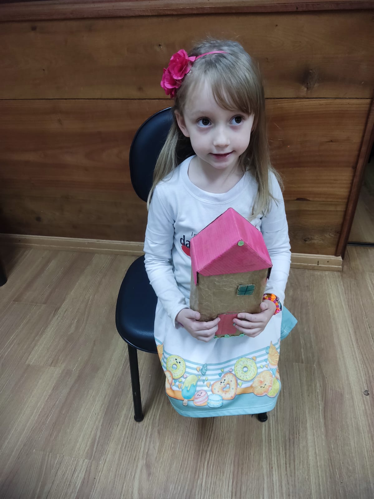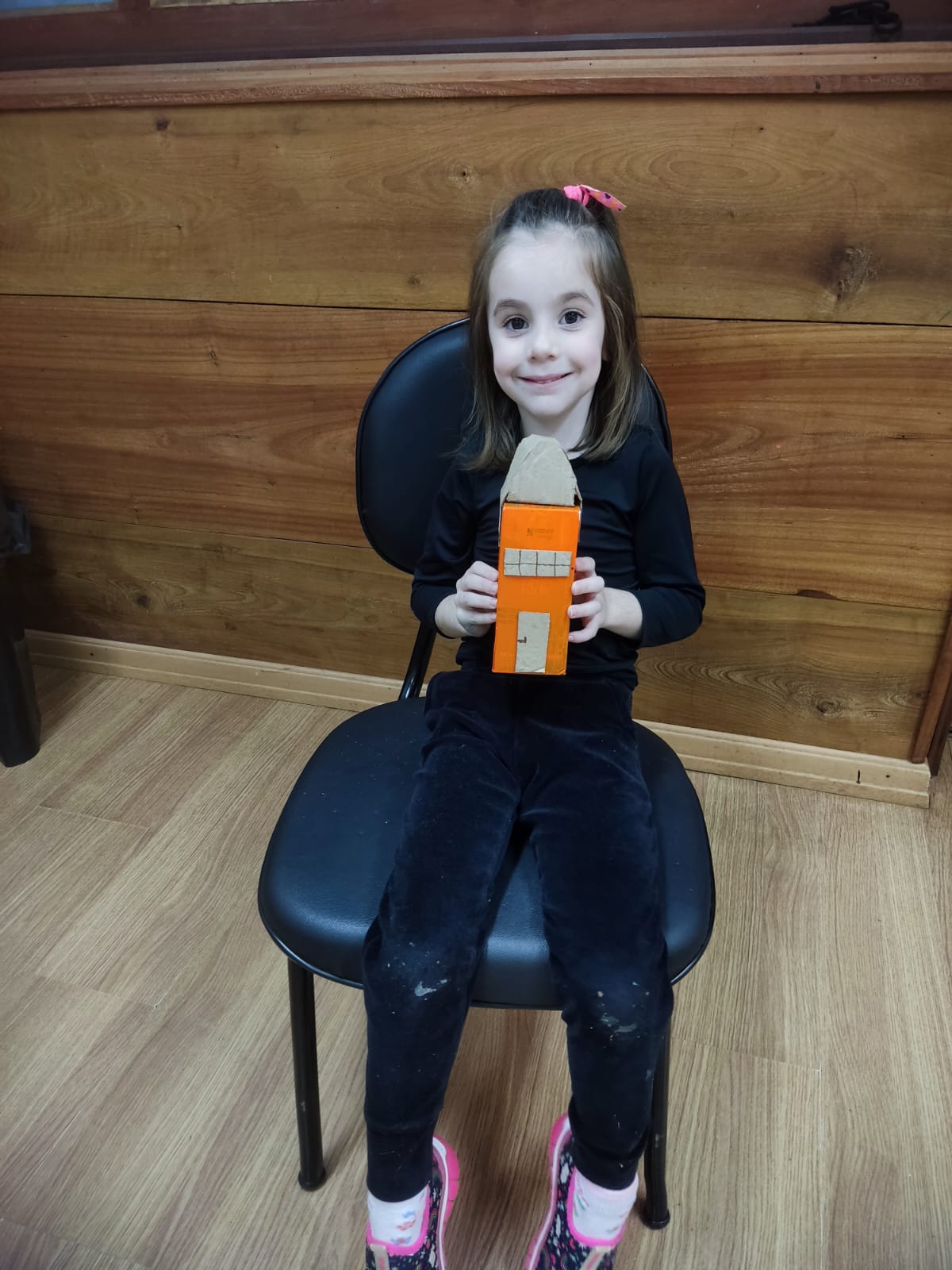 Durante o estudo da Sequência Didática "As formas geométricas do mundo", a turma da Pré-escola 04 anos da professora Vanessinha foi convidada a construir uma casa com materiais recicláveis, a atividade foi realizada junto com as famílias.