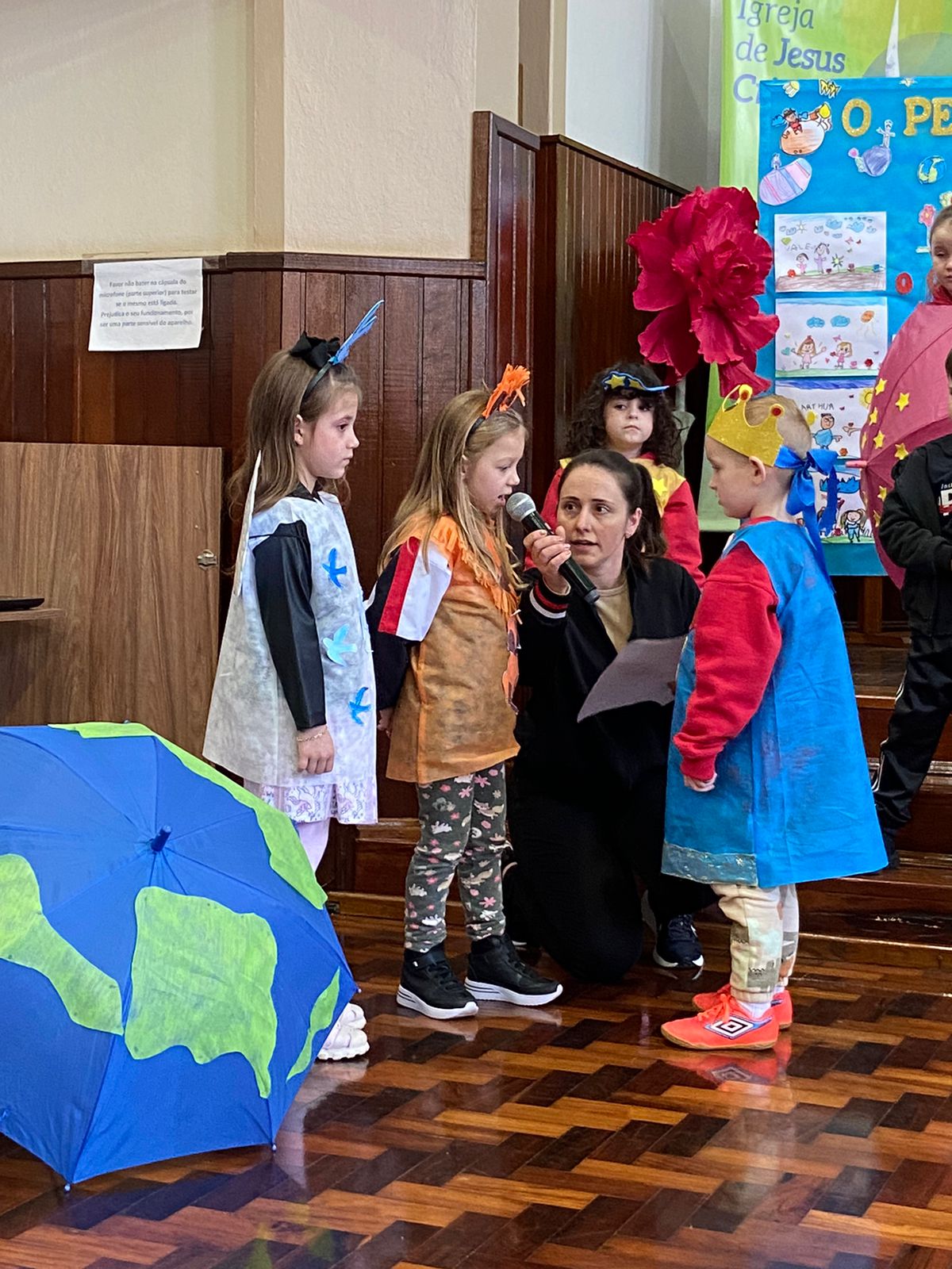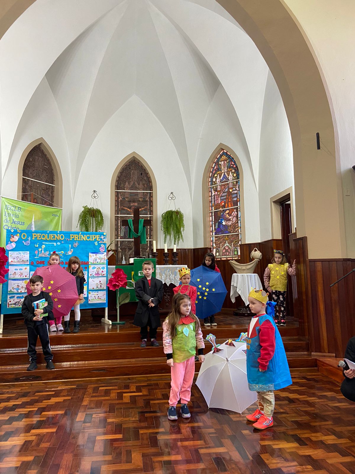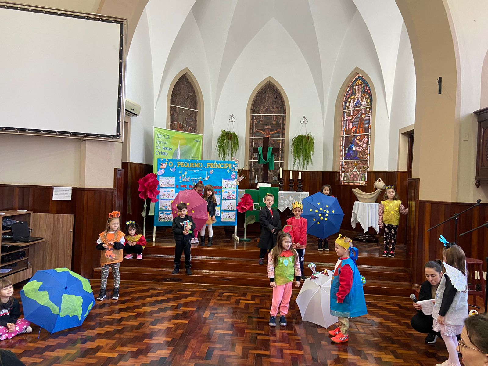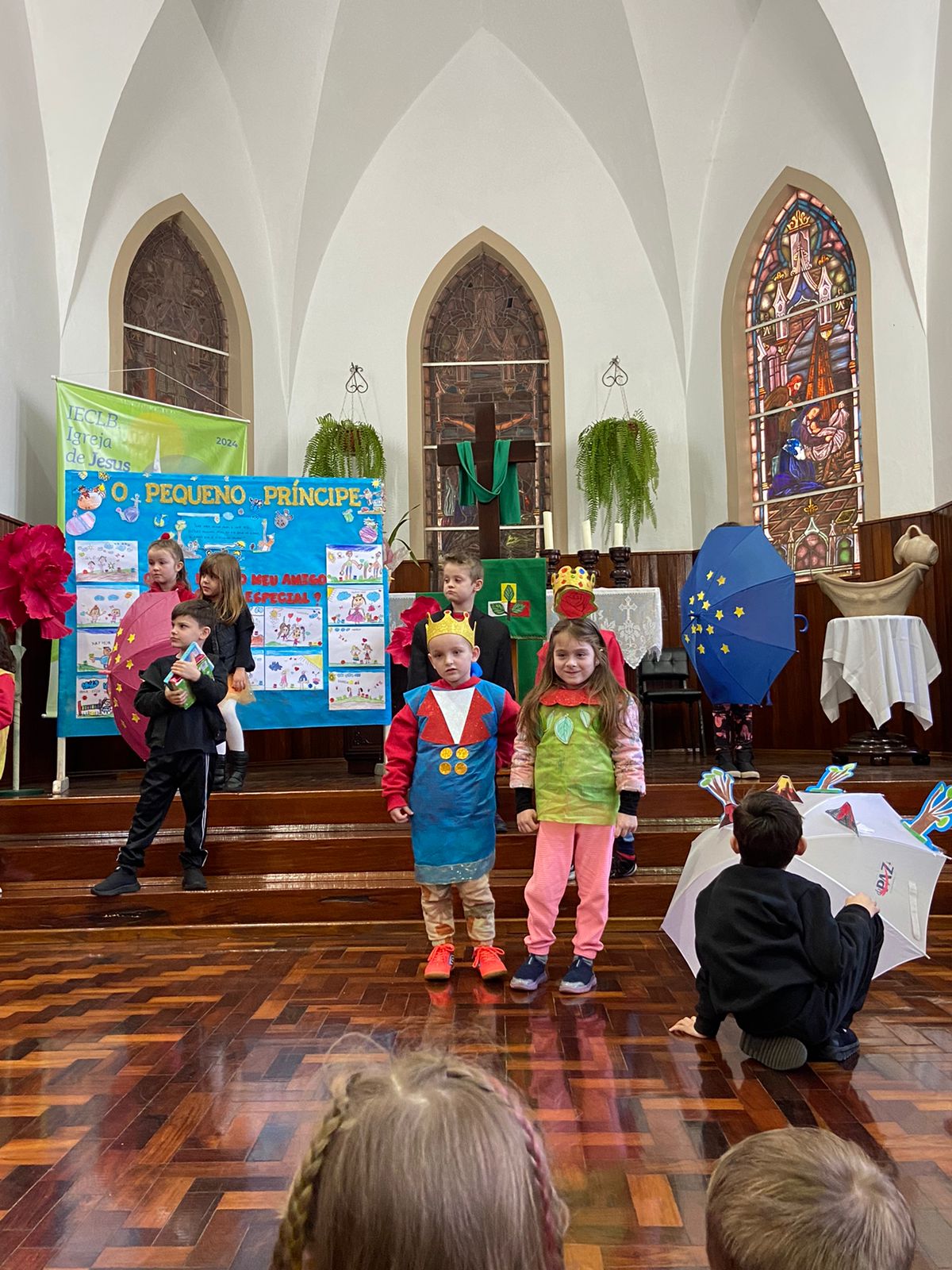 No dia 17.7.24, a turma da Pré-escola- 05 anos A, das professores Amanda e Denise, realizou o Boa Tarde na Igreja, com a apresentação do livro: " O PEQUENO PRÍNCIPE" de Antonie de Saint' Exupery, sobre o tema "AMIZADE". Após o teatro, cada aluno apresentou seu desenho sobre a temática: "O QUE FAZ DO MEU AMIGO ALGUÉM ESPECIAL?" e conversamos sobre o tema amizade, através da fala da Pastora Eliana. Na sequência, os alunos cantaram a canção "A AMIZADE", letra e música da Banda Infantil: Mundo Bita.