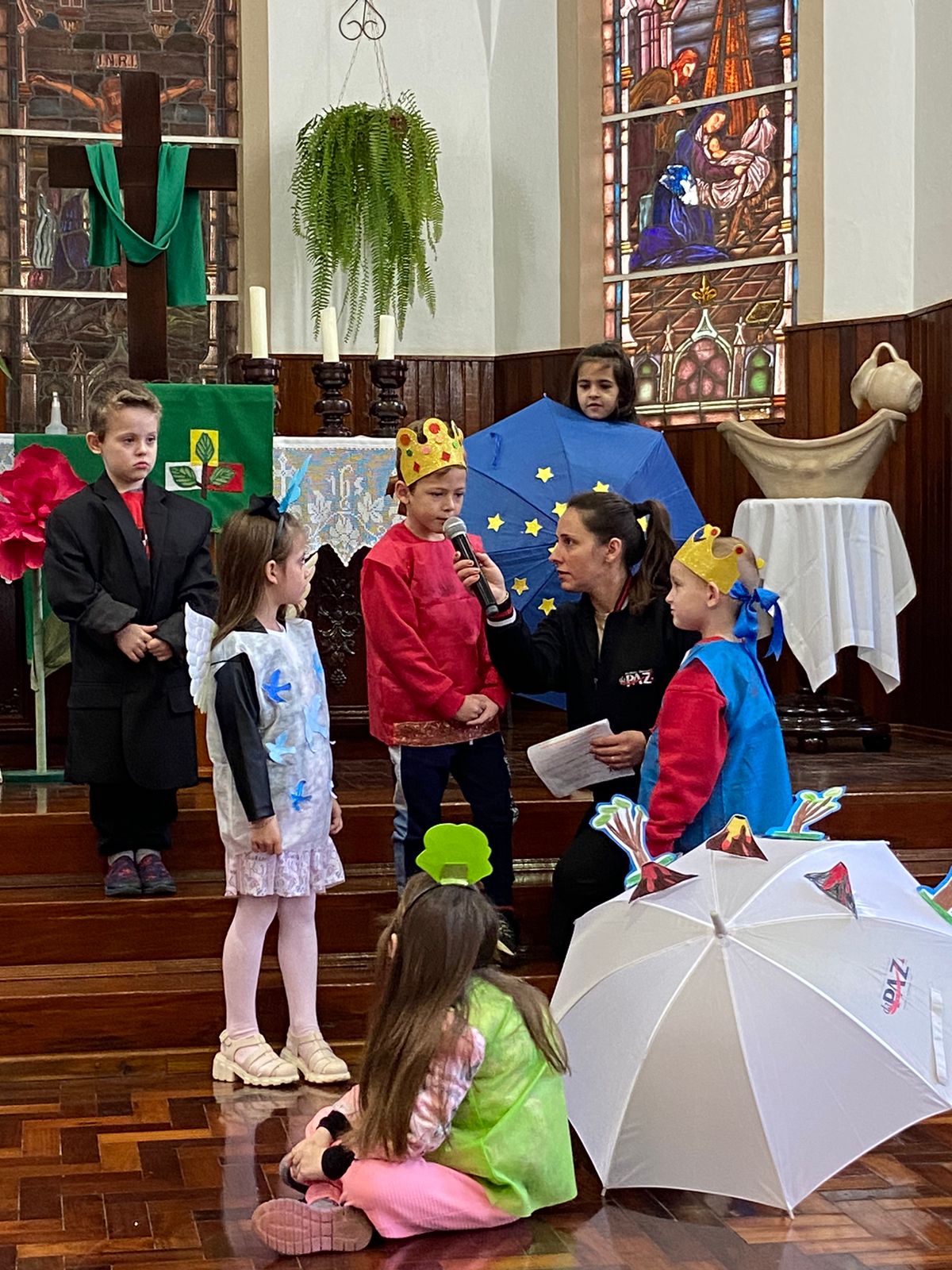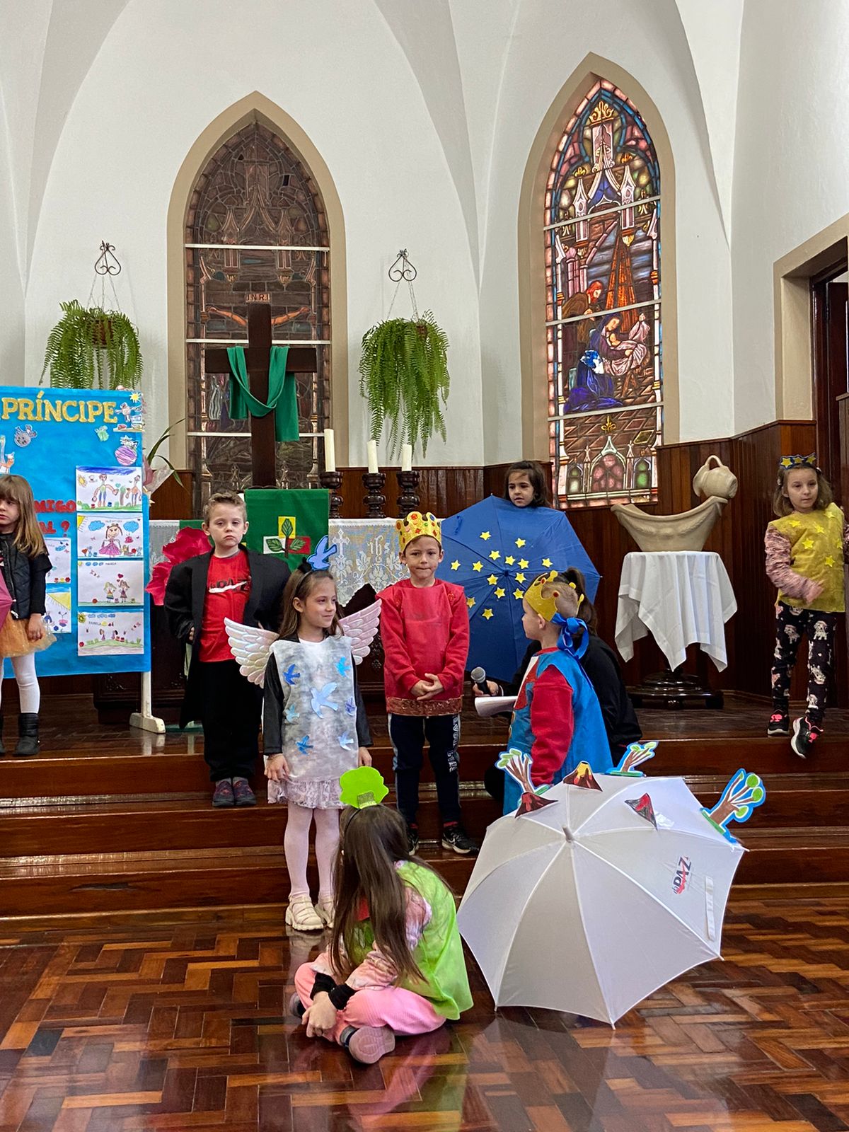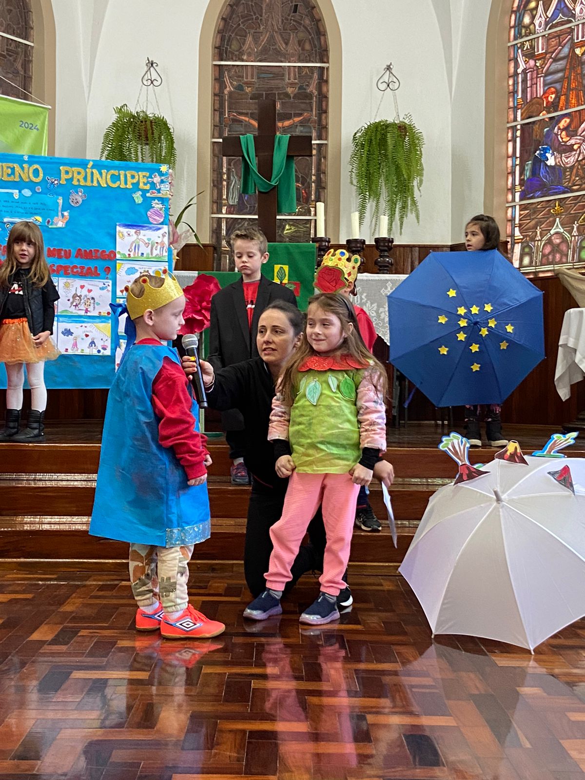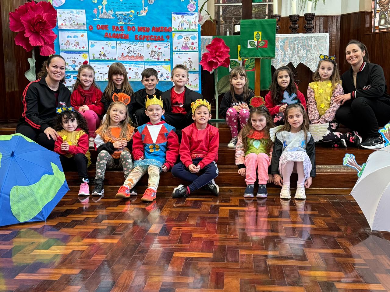 No dia 17.7.24, a turma da Pré-escola- 05 anos A, das professores Amanda e Denise, realizou o Boa Tarde na Igreja, com a apresentação do livro: " O PEQUENO PRÍNCIPE" de Antonie de Saint' Exupery, sobre o tema "AMIZADE". Após o teatro, cada aluno apresentou seu desenho sobre a temática: "O QUE FAZ DO MEU AMIGO ALGUÉM ESPECIAL?" e conversamos sobre o tema amizade, através da fala da Pastora Eliana. Na sequência, os alunos cantaram a canção "A AMIZADE", letra e música da Banda Infantil: Mundo Bita.