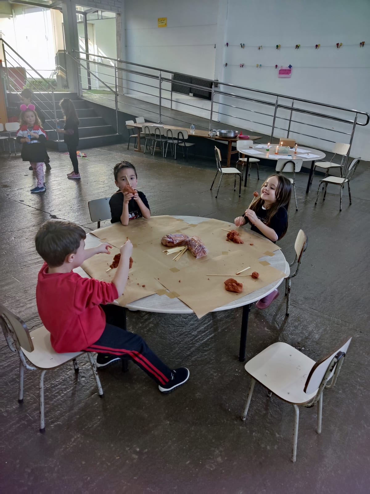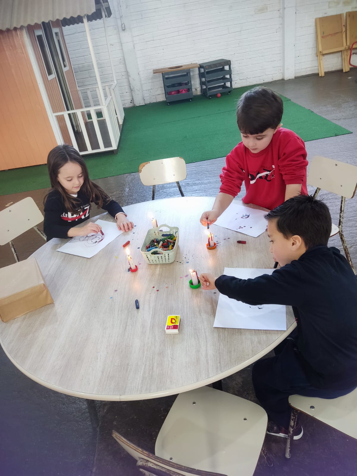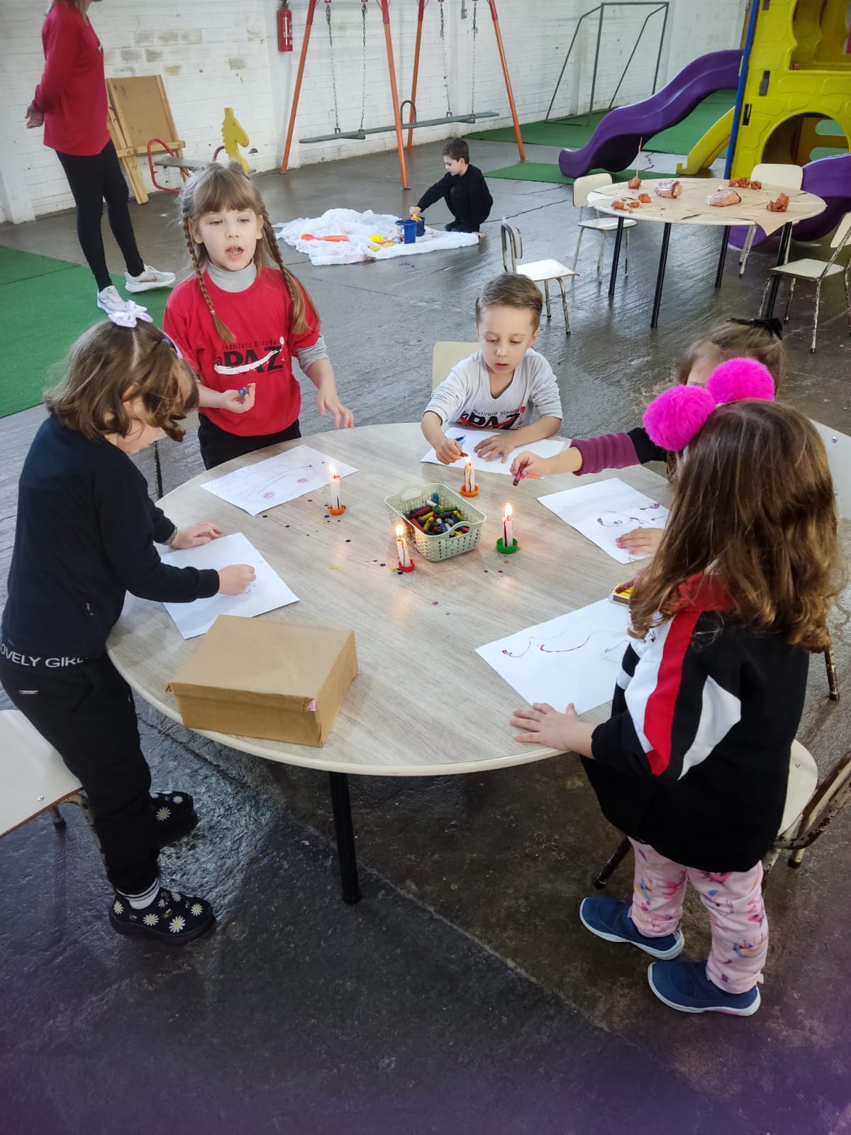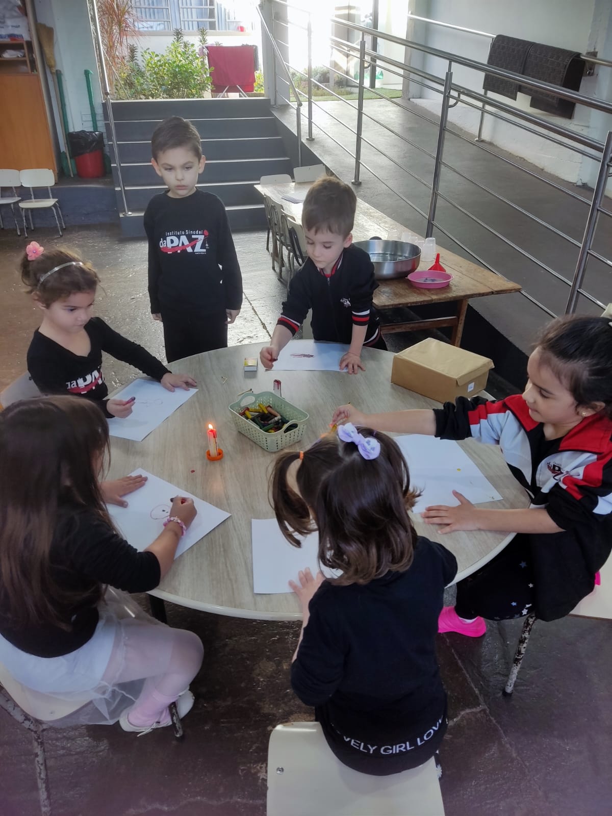 Durante o estudo da Sequência Didática "Criando Narrativas com o Corpo", a turma da Pré-escola 04 anos da professora Vanessinha, estudou sobre os quatro elementos da natureza, e para finalizar a sequência, a turma foi convidada a participar de uma oficina dos quatro elementos da natureza, onde foram organizados quatros estações (água, ar, terra e fogo).