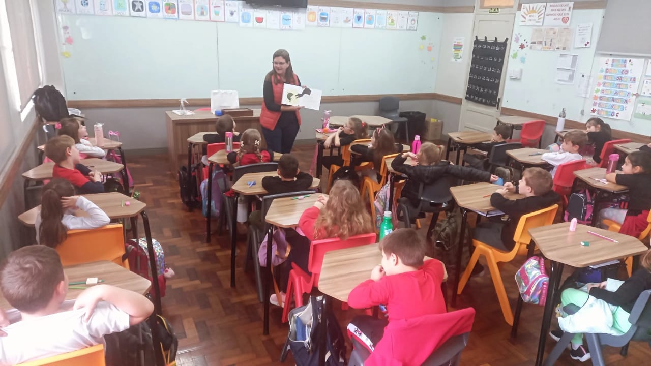 É TEMPO DE SE PERMITIR SENTIR: a Orientadora Educacional Marilise realizou a hora do conto "O Dinossauro que sentia" com as turmas dos Anos Inciais e Educação Infantil. Confira algumas imagens!