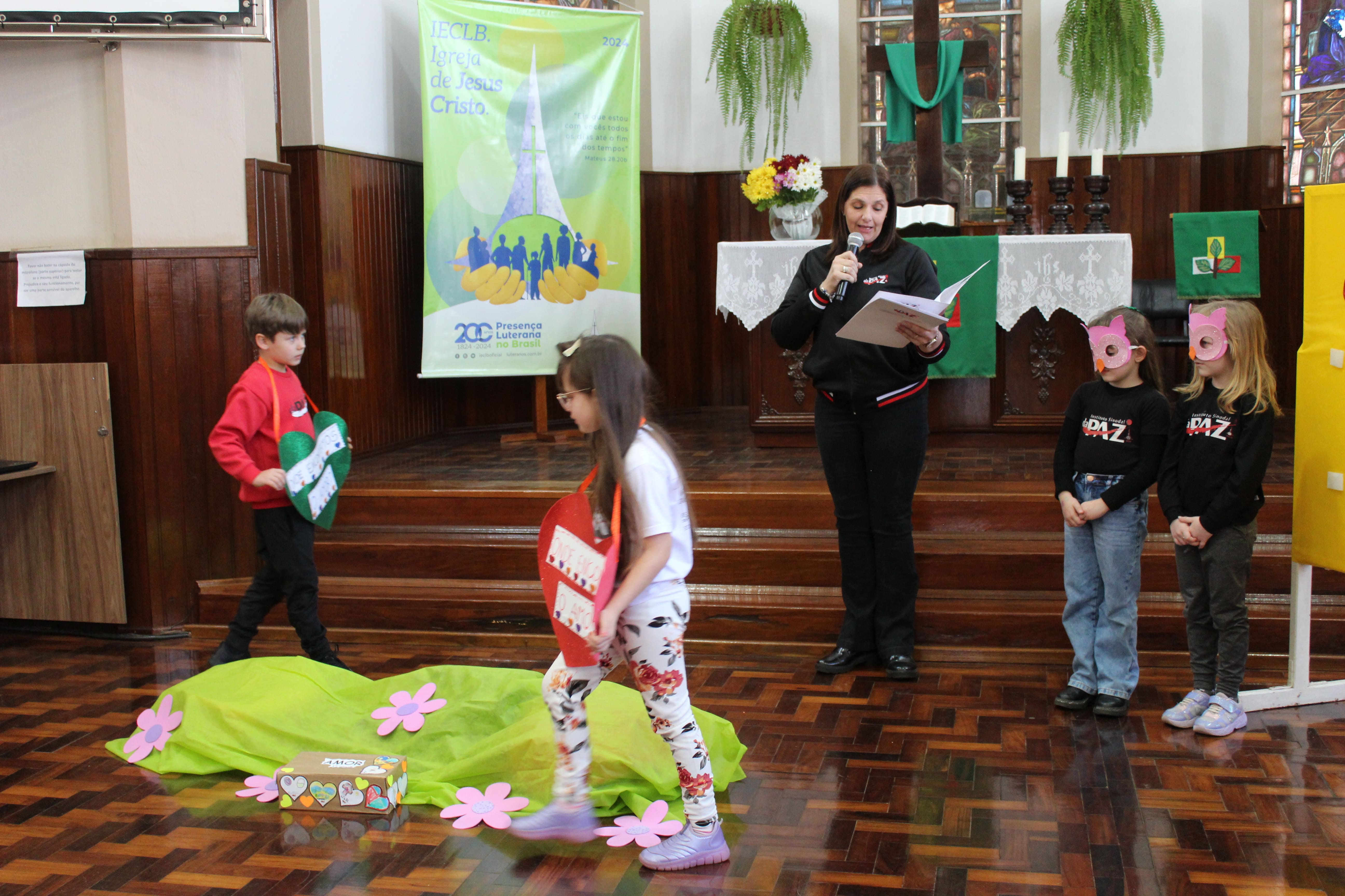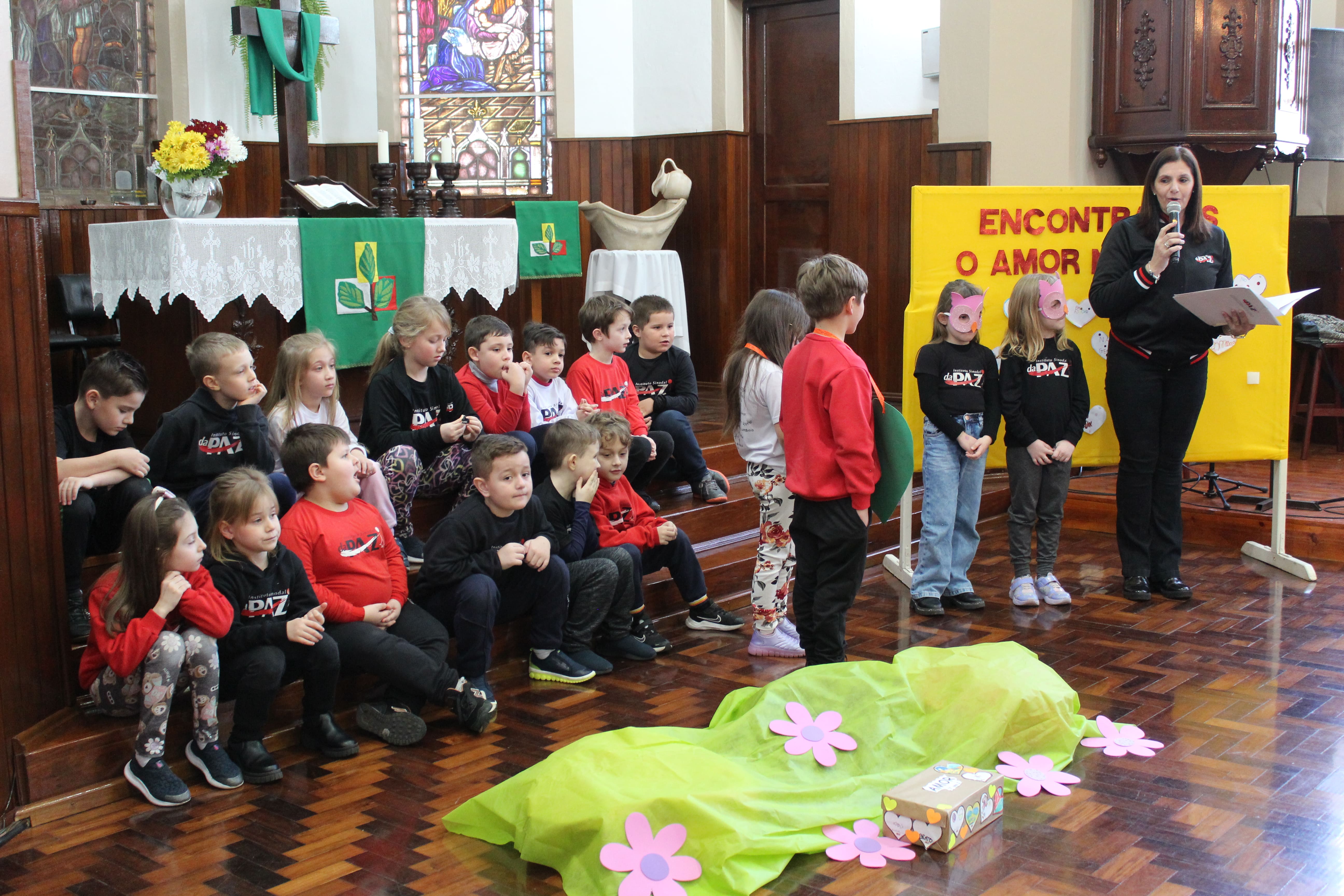 Na tarde do dia 14.08, o 1º ano J, juntamente com a profª regente Jaqueline Rigon e a teacher Francys, realizou o BOA TARDE NA IGREJA, tendo como tema: "Onde encontramos o amor?". As crianças encenaram a história "A JORNADA DO PEQUENO CORAÇÃO" e apresentaram palavras motivadoras para vivenciarmos o verdadeiro amor. Na oportunidade, contribuíram para a temática abordada a Pastora Eliana e a Coordenadora Pedagógica Paula.