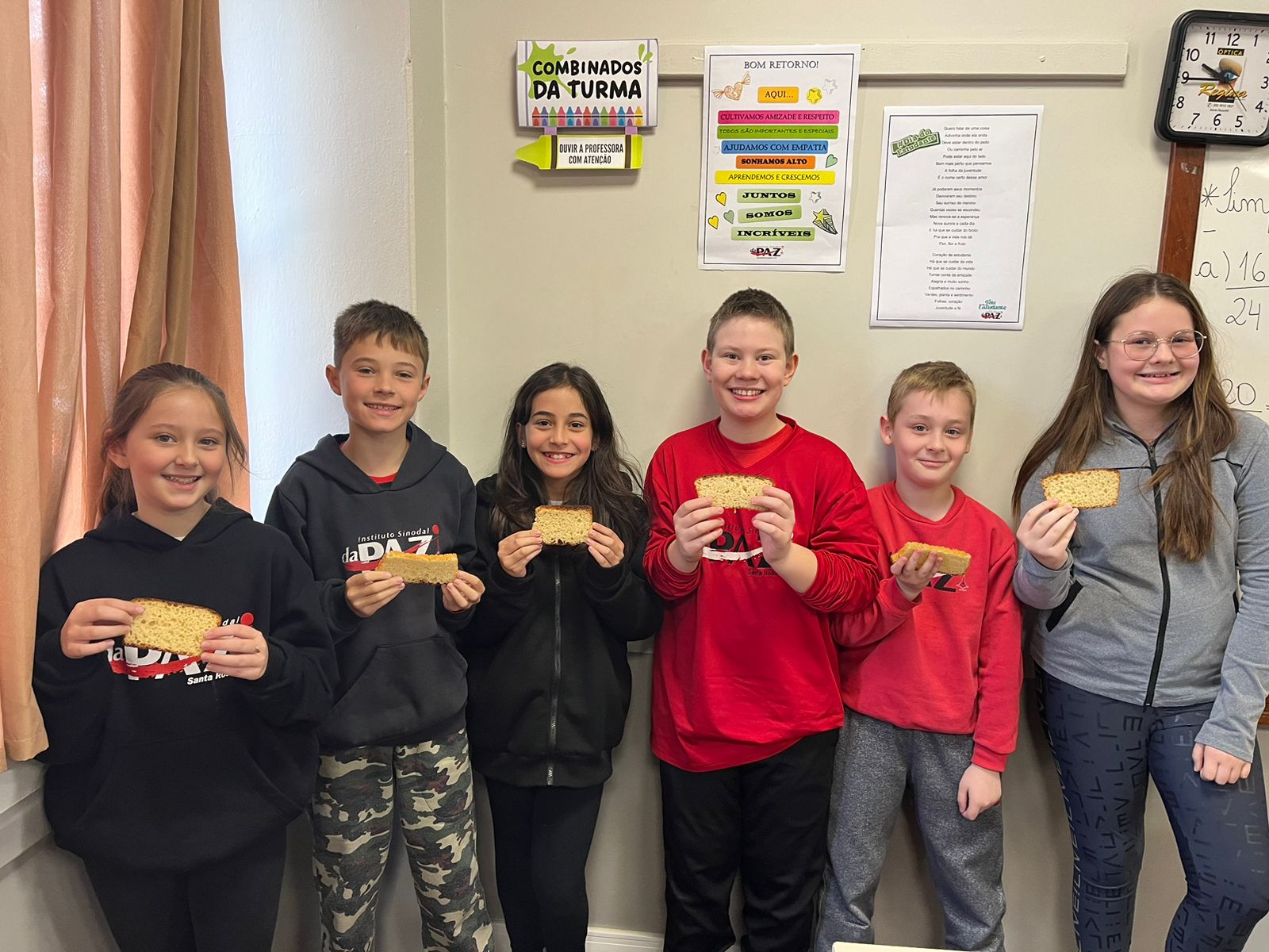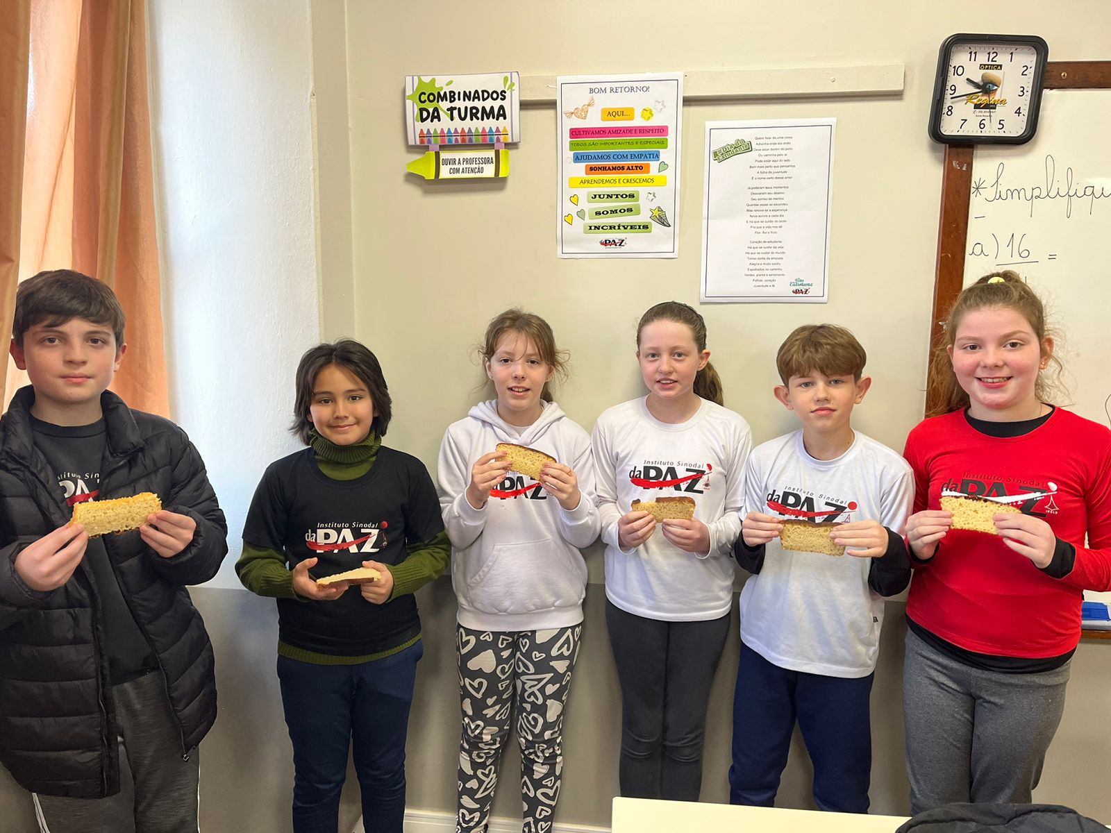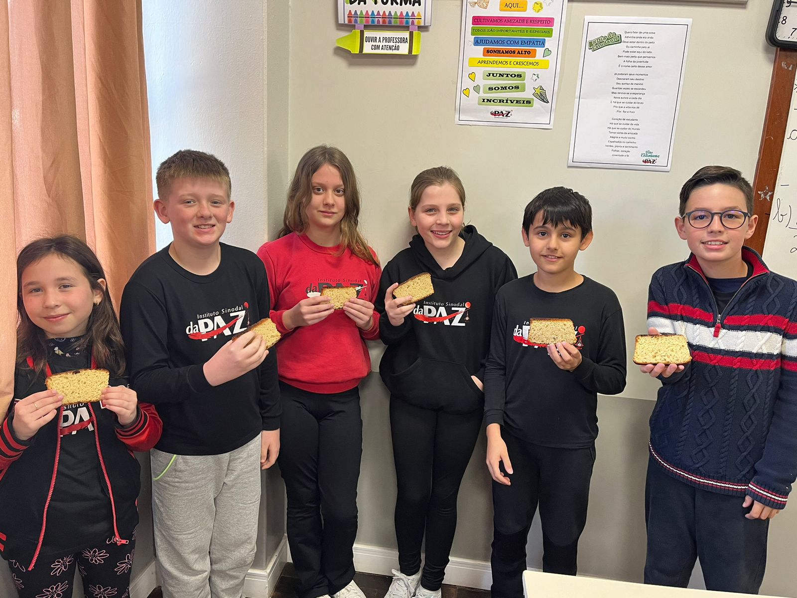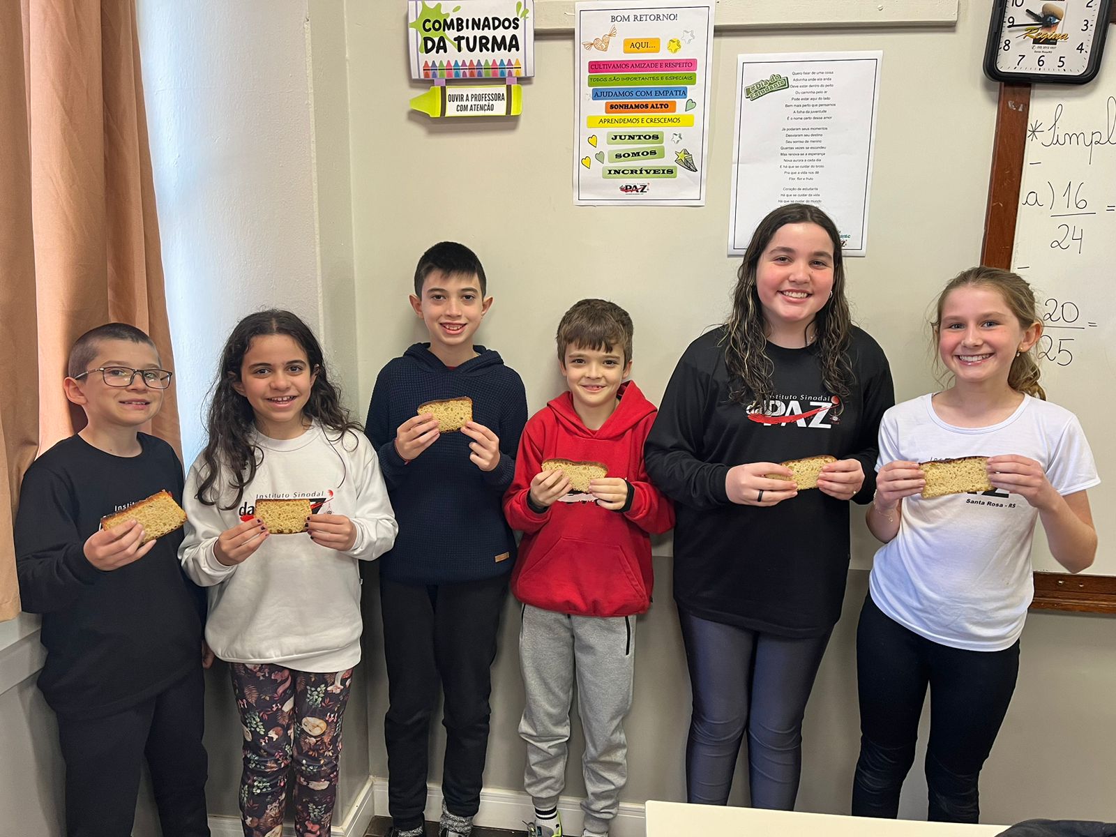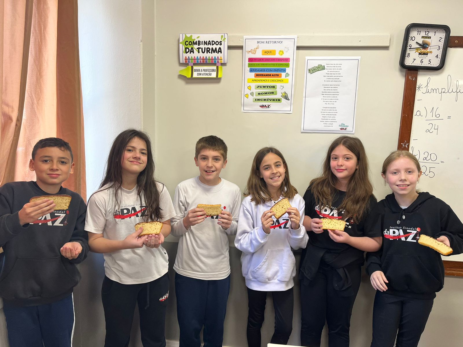 As turmas dos 5º anos A e B do Instituto Sinodal da Paz estudaram sobre os setores da economia. Para isso, realizaram uma atividade prática de fazer e degustar um pão, compreendendo que o processo de produção desse pão começa na agricultura, com a plantação e colheita do trigo. Em seguida, o trigo passa pelo processo industrial até se transformar em farinha, que chega aos supermercados e, finalmente, até nós para a preparação do pão.