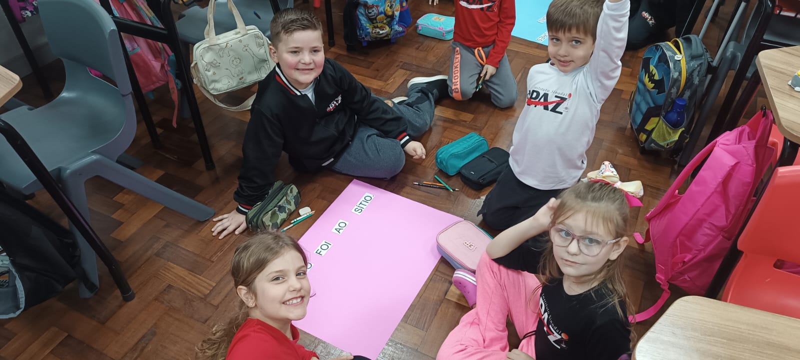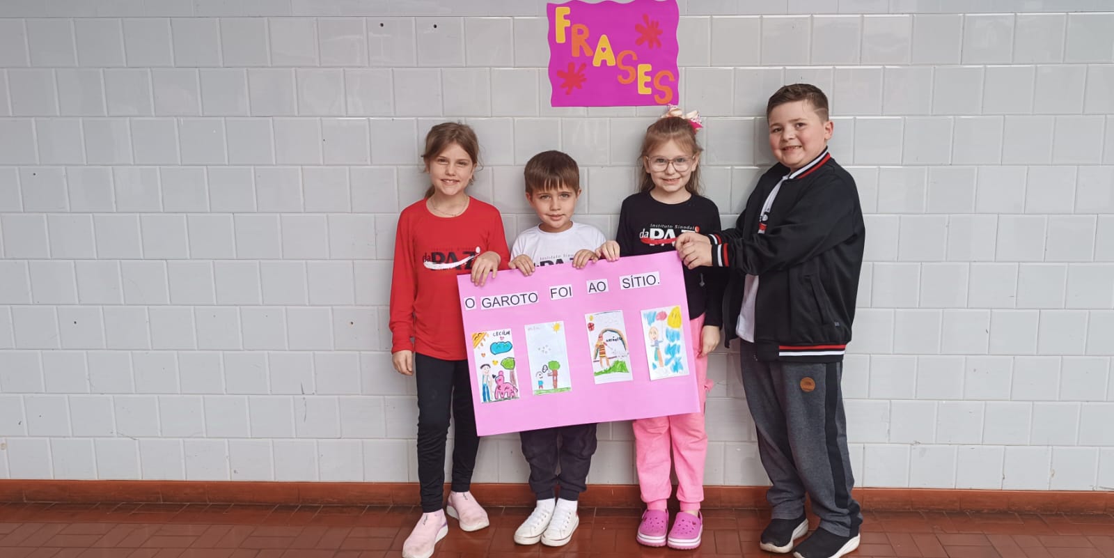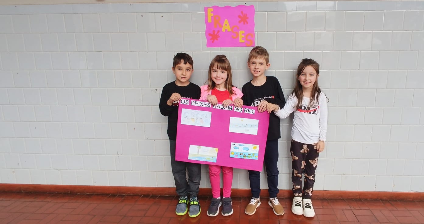 Trabalho em grupo para descobrir e conhecer mais sobre a escrita de FRASES! Atividade do 1º ano F da prof. Fabi.
