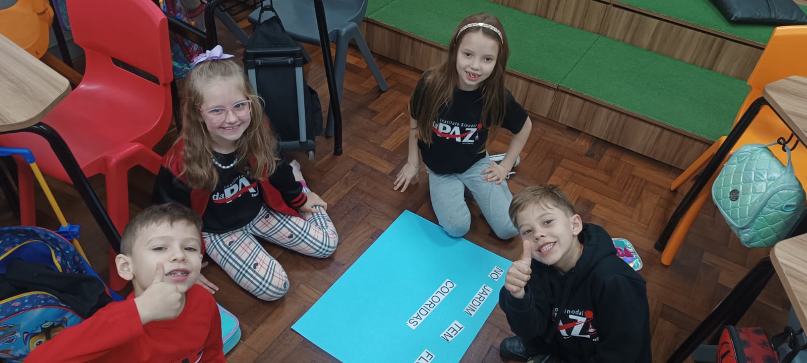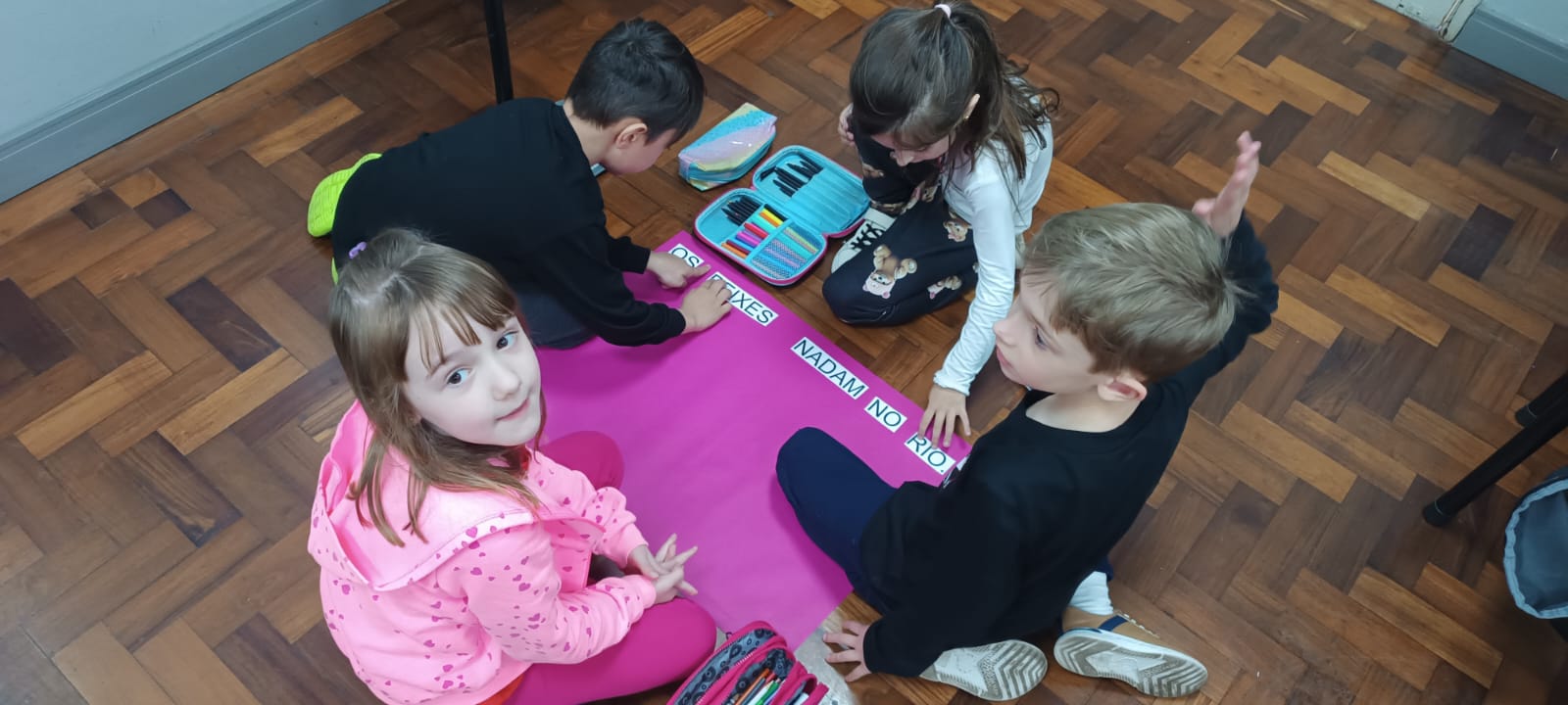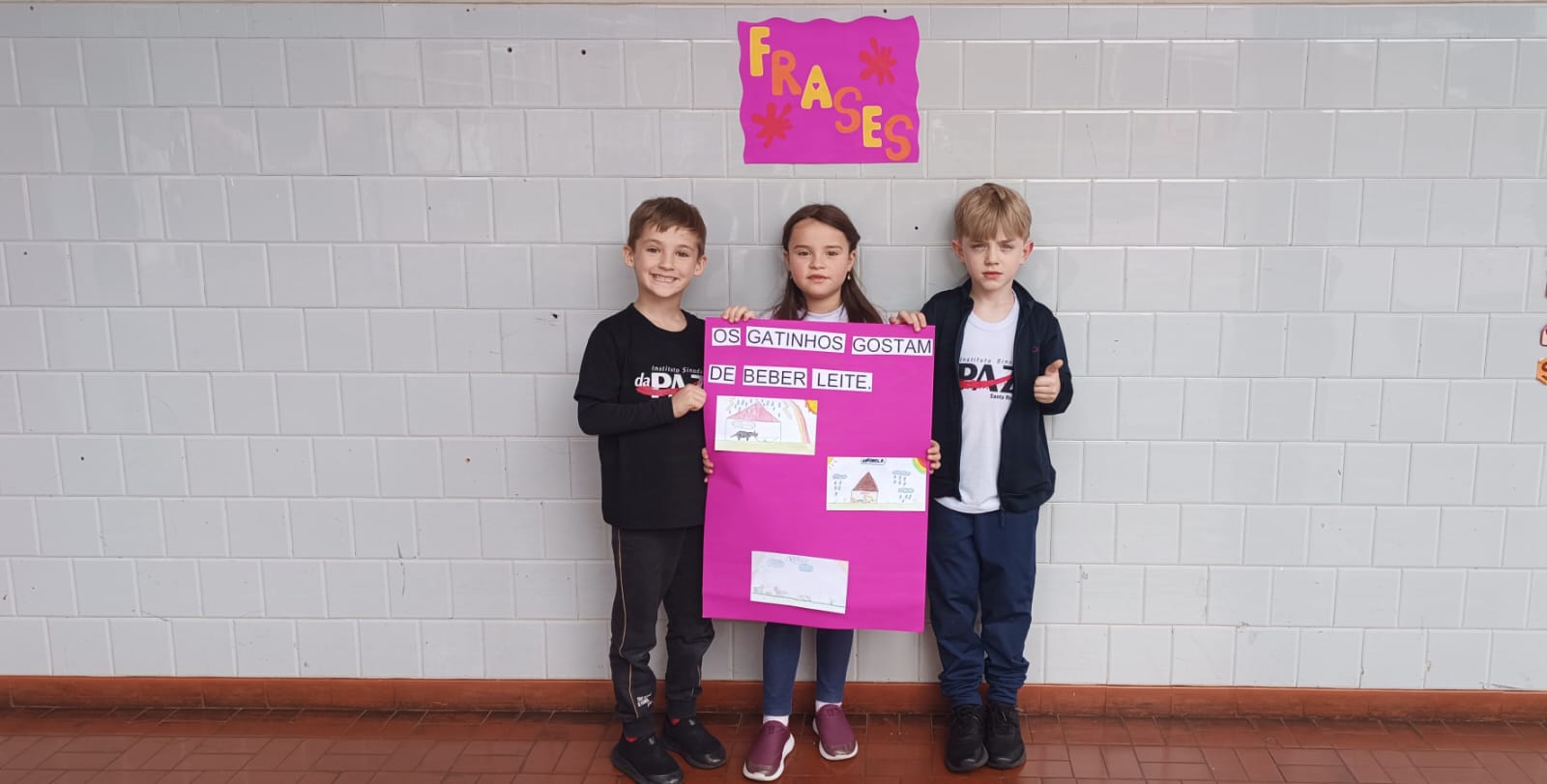 Trabalho em grupo para descobrir e conhecer mais sobre a escrita de FRASES! Atividade do 1º ano F da prof. Fabi.