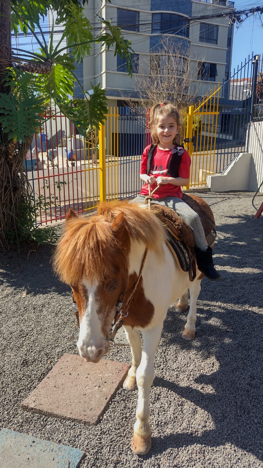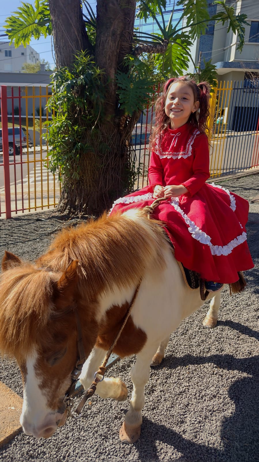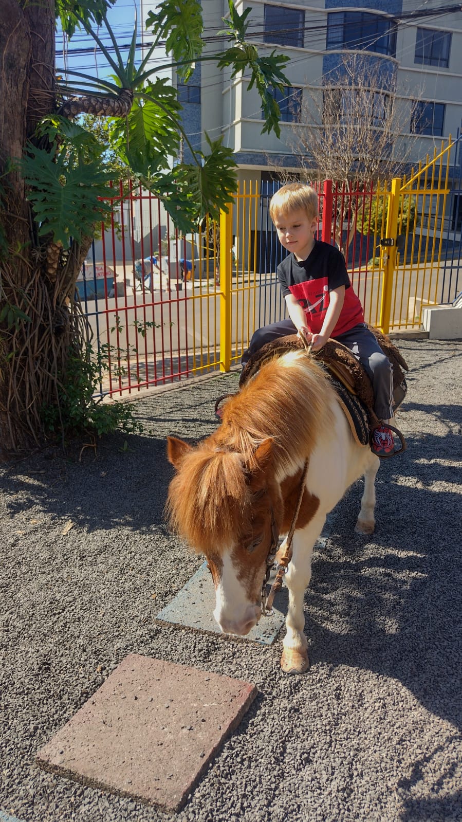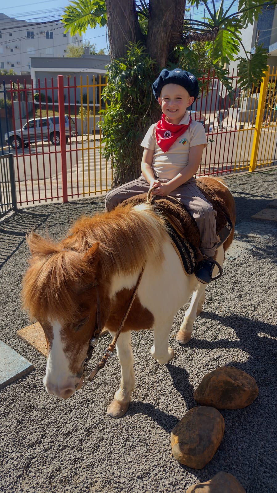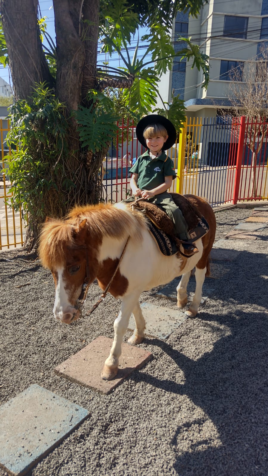 Na Semana Farroupilha, os alunos da Educação Infantil receberam a visita do Cavalo Pipoca, a turma da pré-escola 04 anos T da professora Tamara, se divertiu e aproveitou muito esse momento.