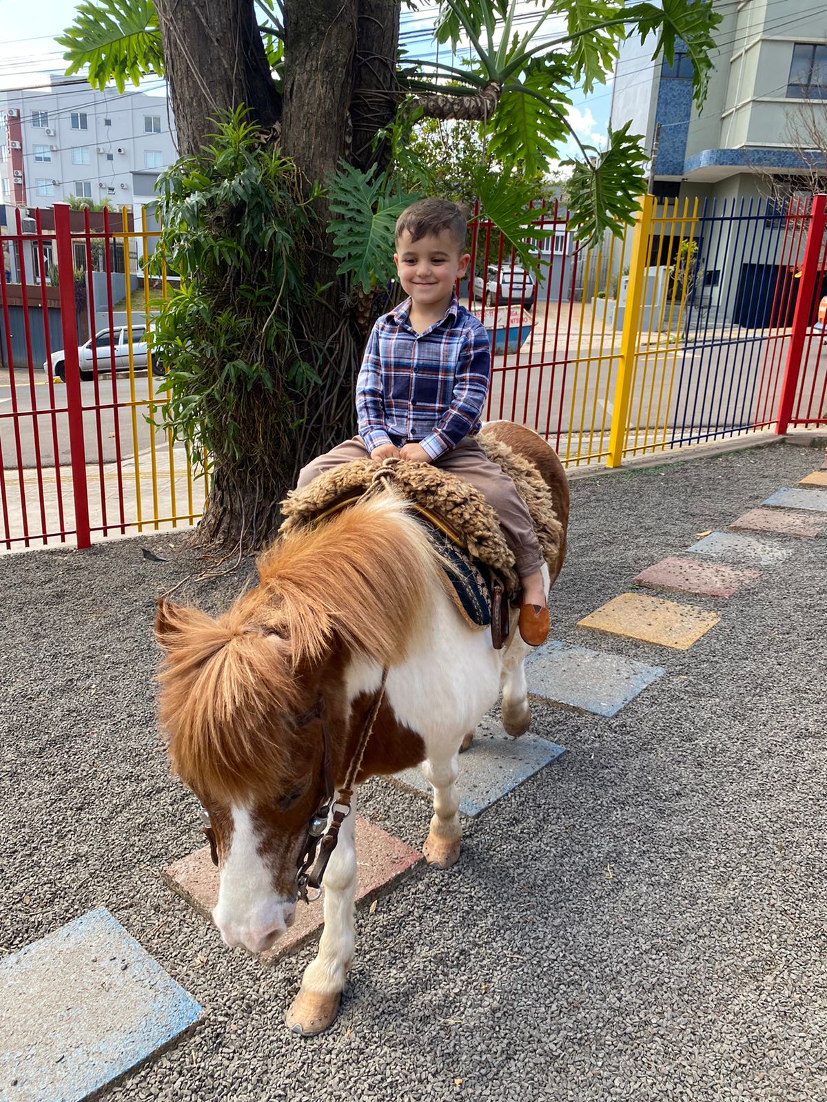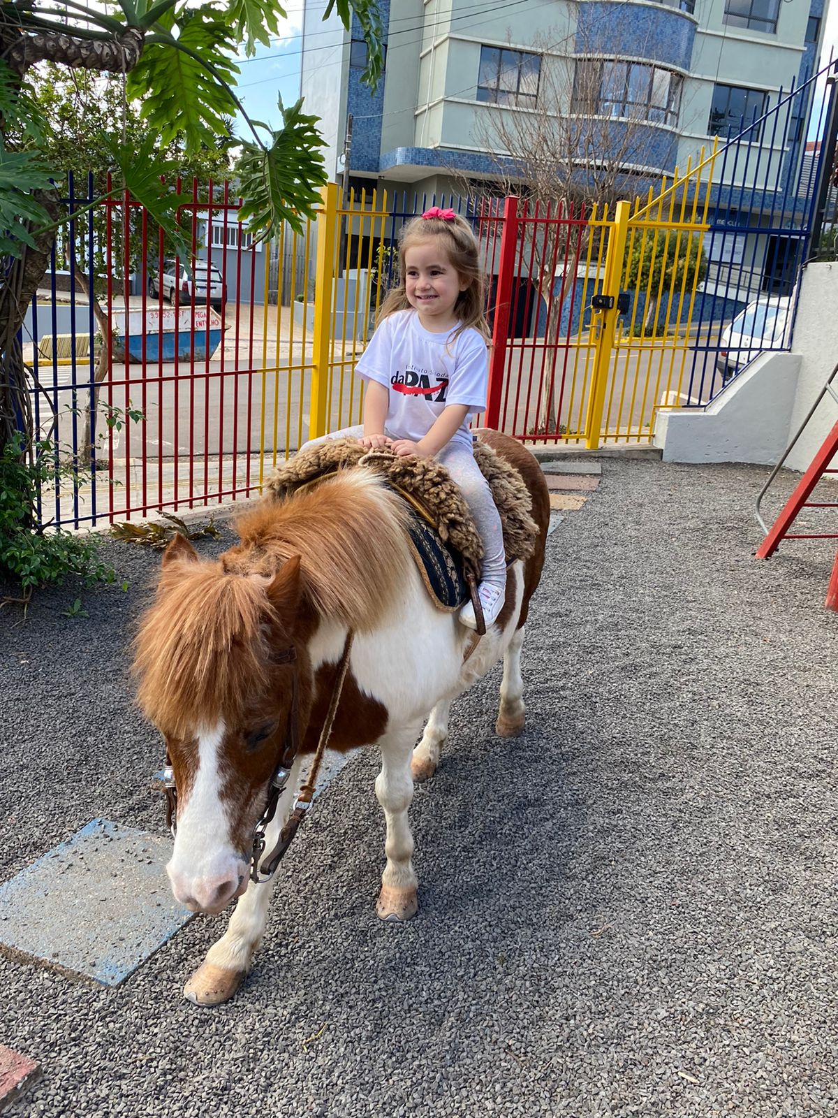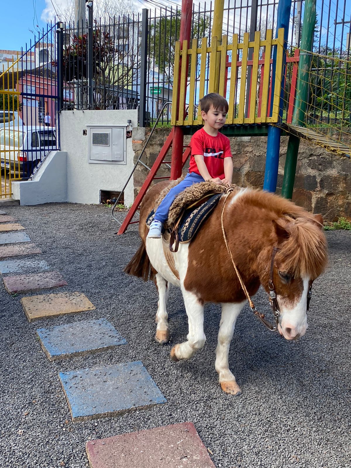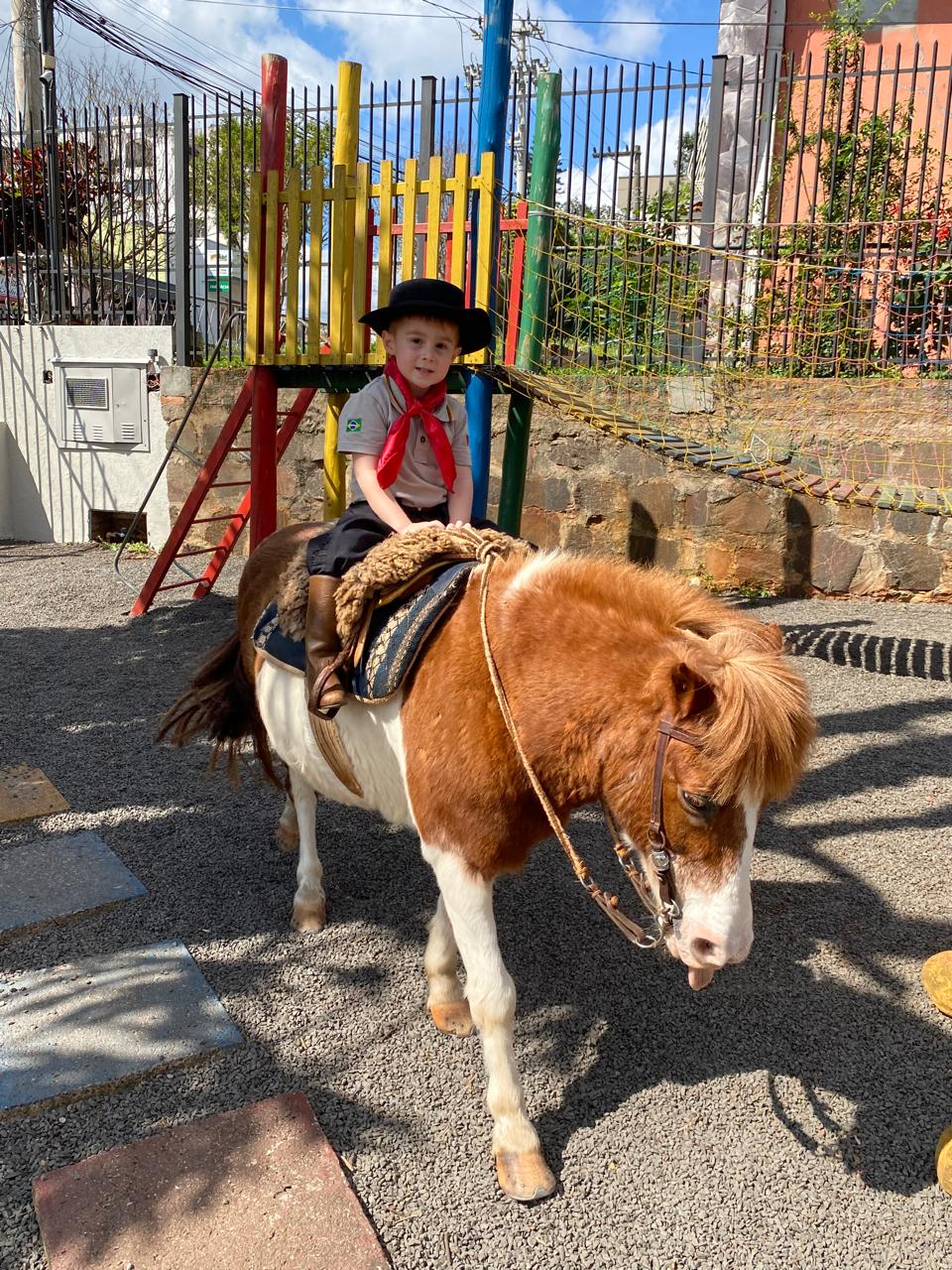 Semana Farroupilha. O cavalo Pipoca visitou os alunos da Educação Infantil. Registros da Turma de 03 anos da prof. Vanessa.