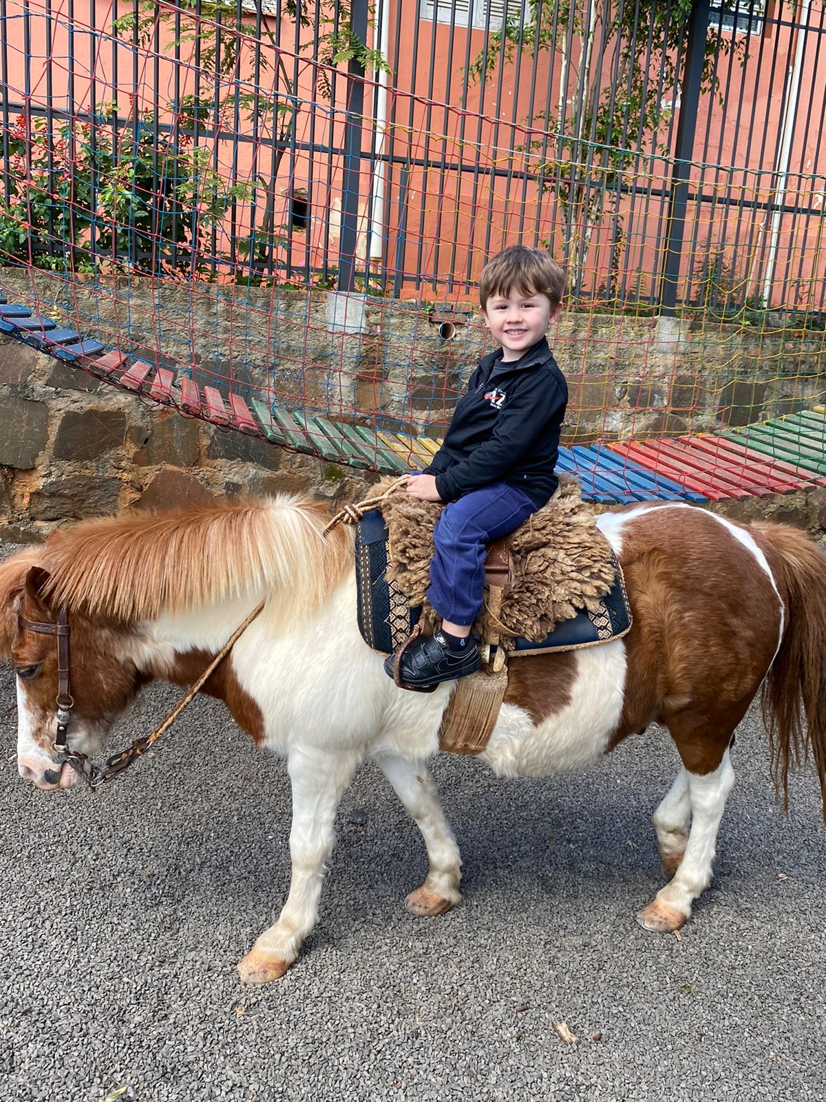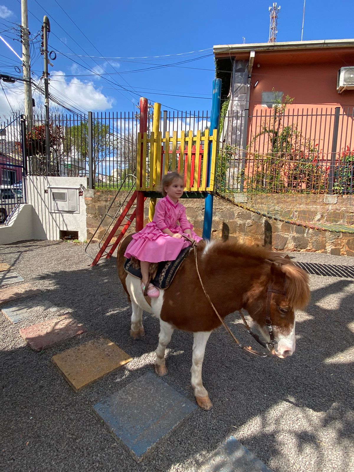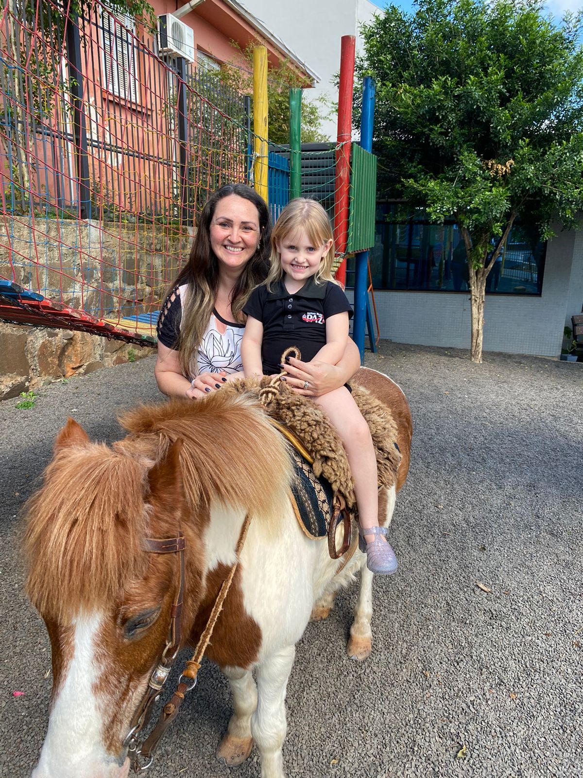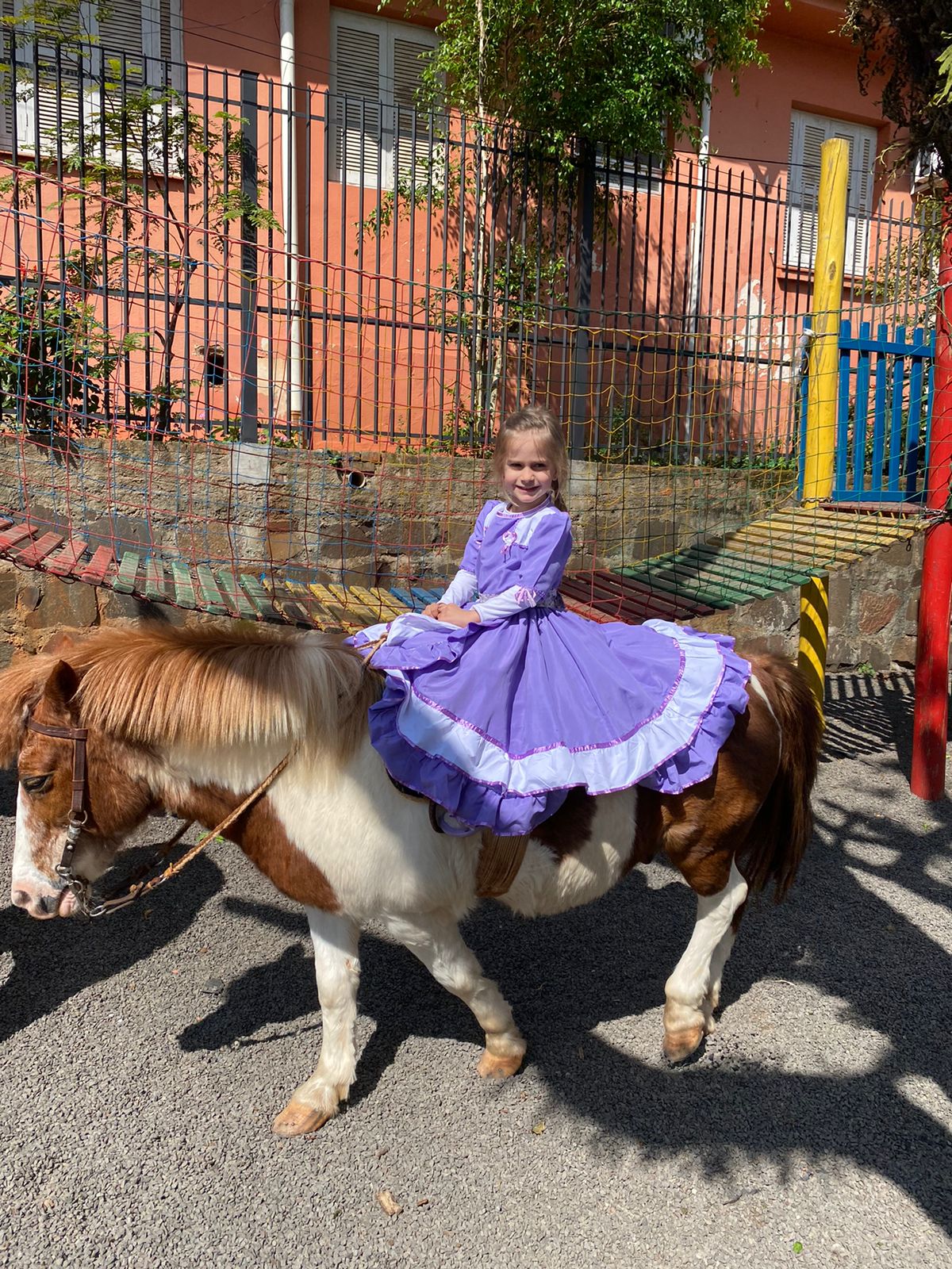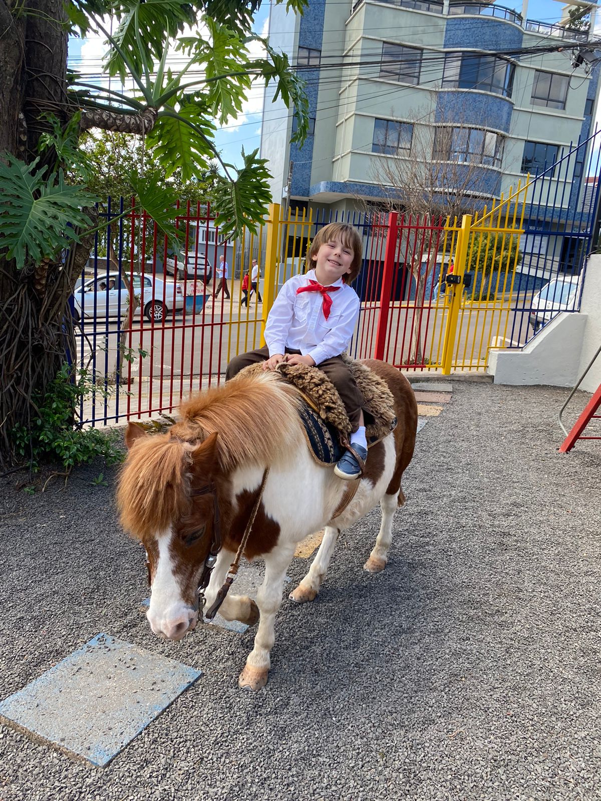 Semana Farroupilha. O cavalo Pipoca visitou os alunos da Educação Infantil. Registros da Turma de 03 anos da prof. Vanessa.