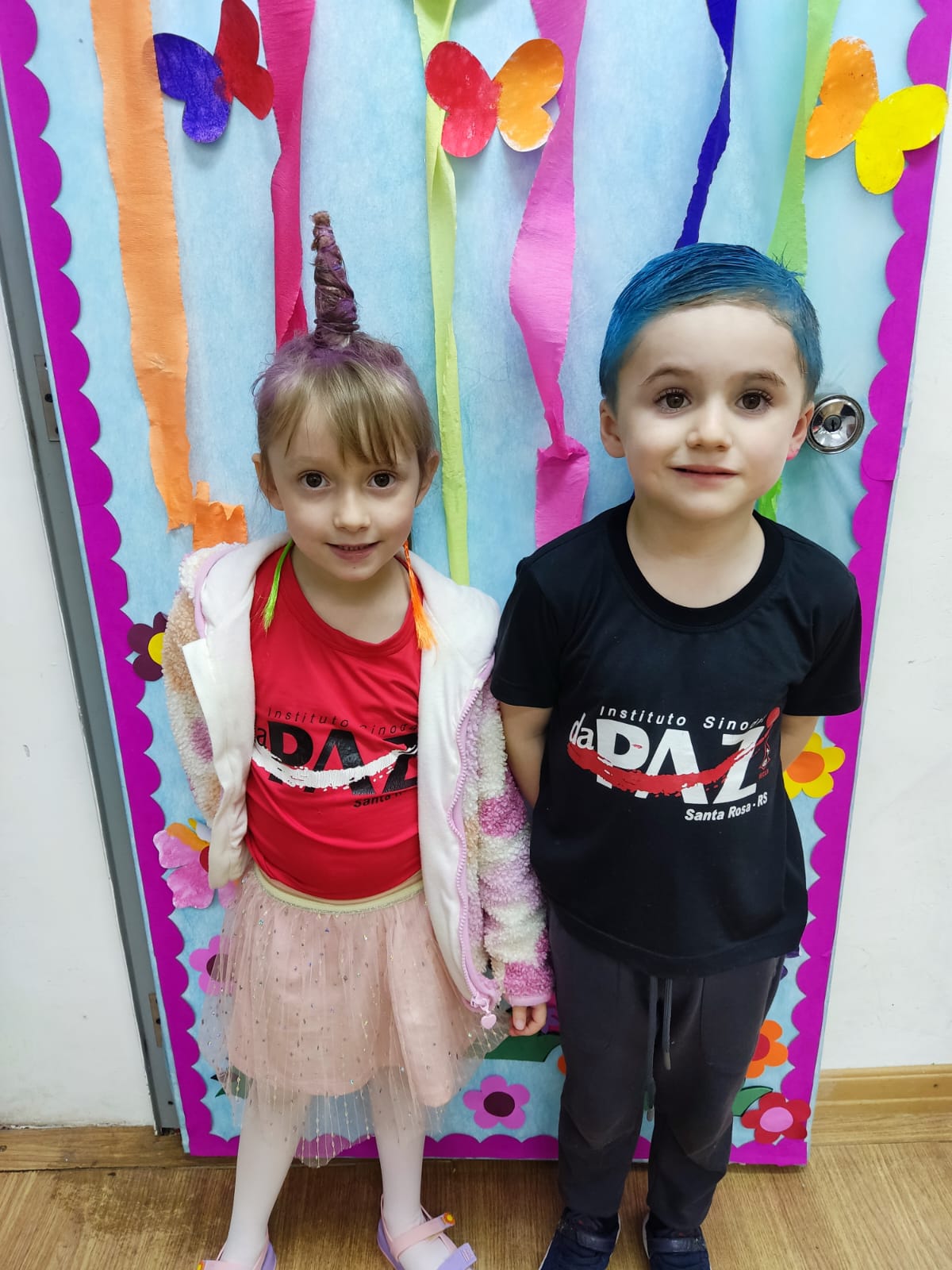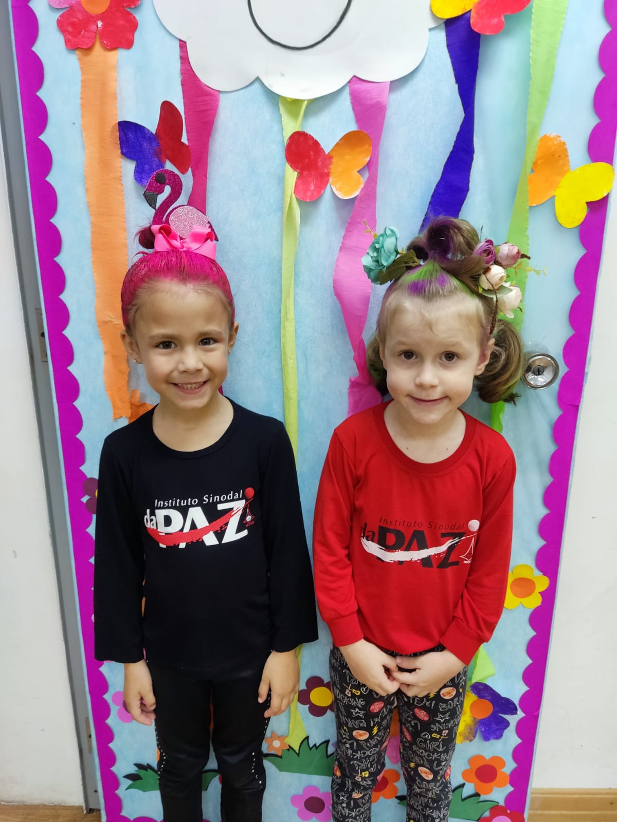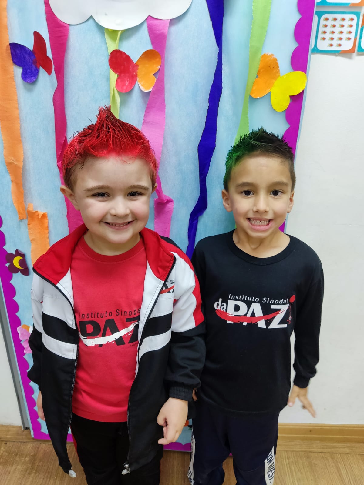 Os alunos da turma 04 anos V, da professora Vanessinha, puderam inventar junto com sua família, um cabelo com acessórios, spray e muita diversão no "Dia do cabelo maluco" da Educação infantil.