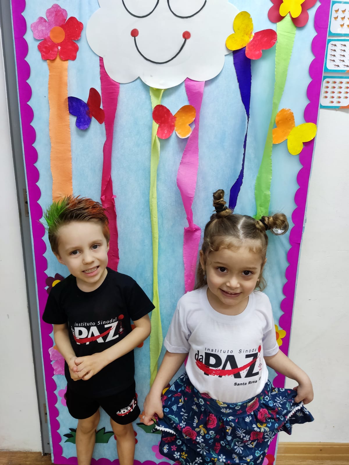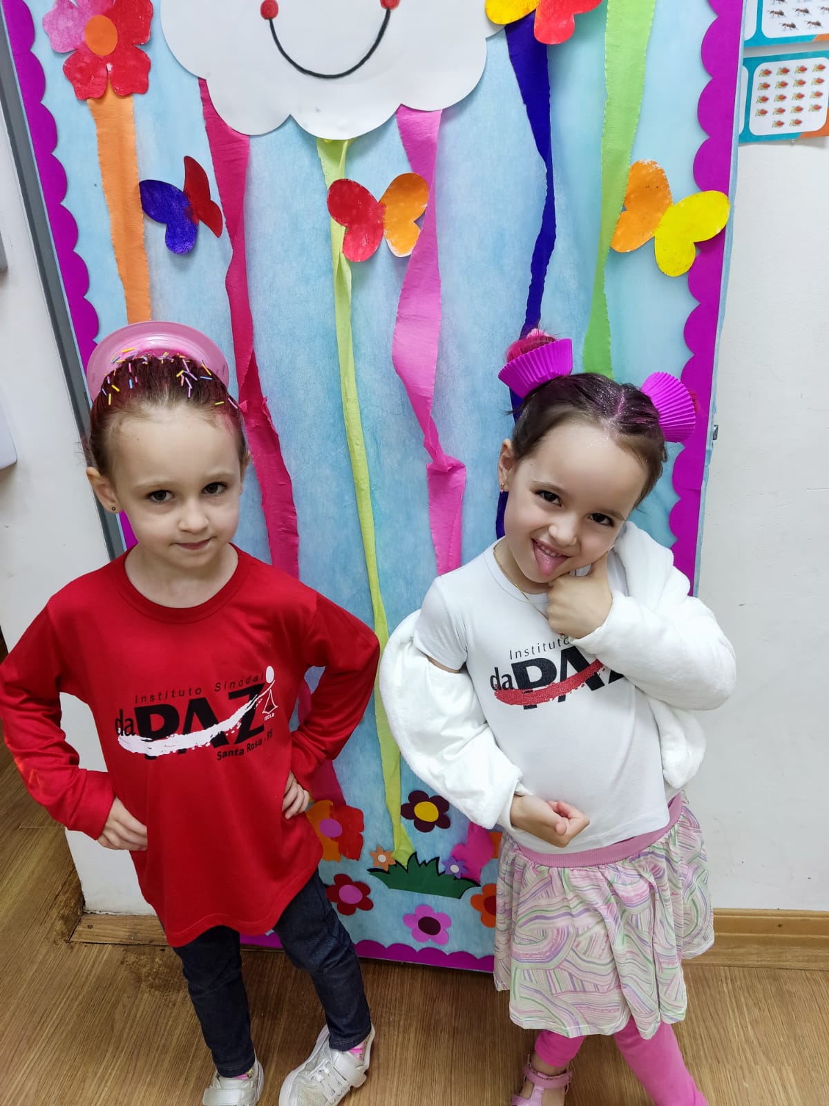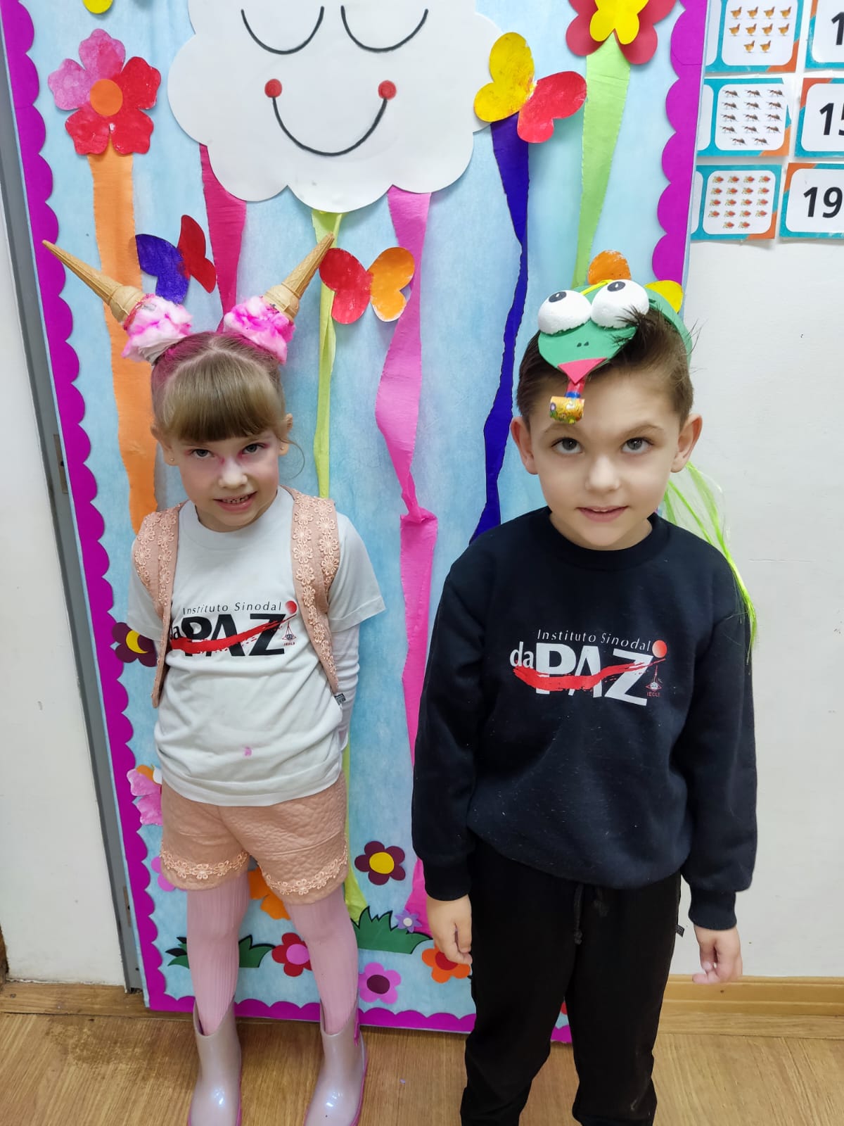 Os alunos da turma 04 anos V, da professora Vanessinha, puderam inventar junto com sua família, um cabelo com acessórios, spray e muita diversão no "Dia do cabelo maluco" da Educação infantil.