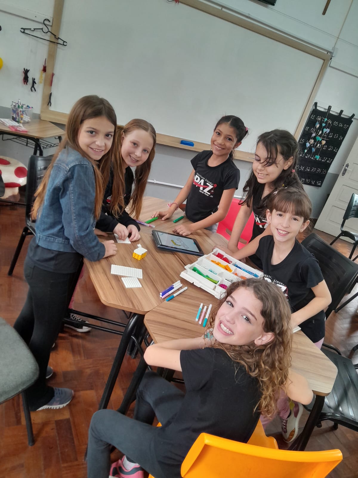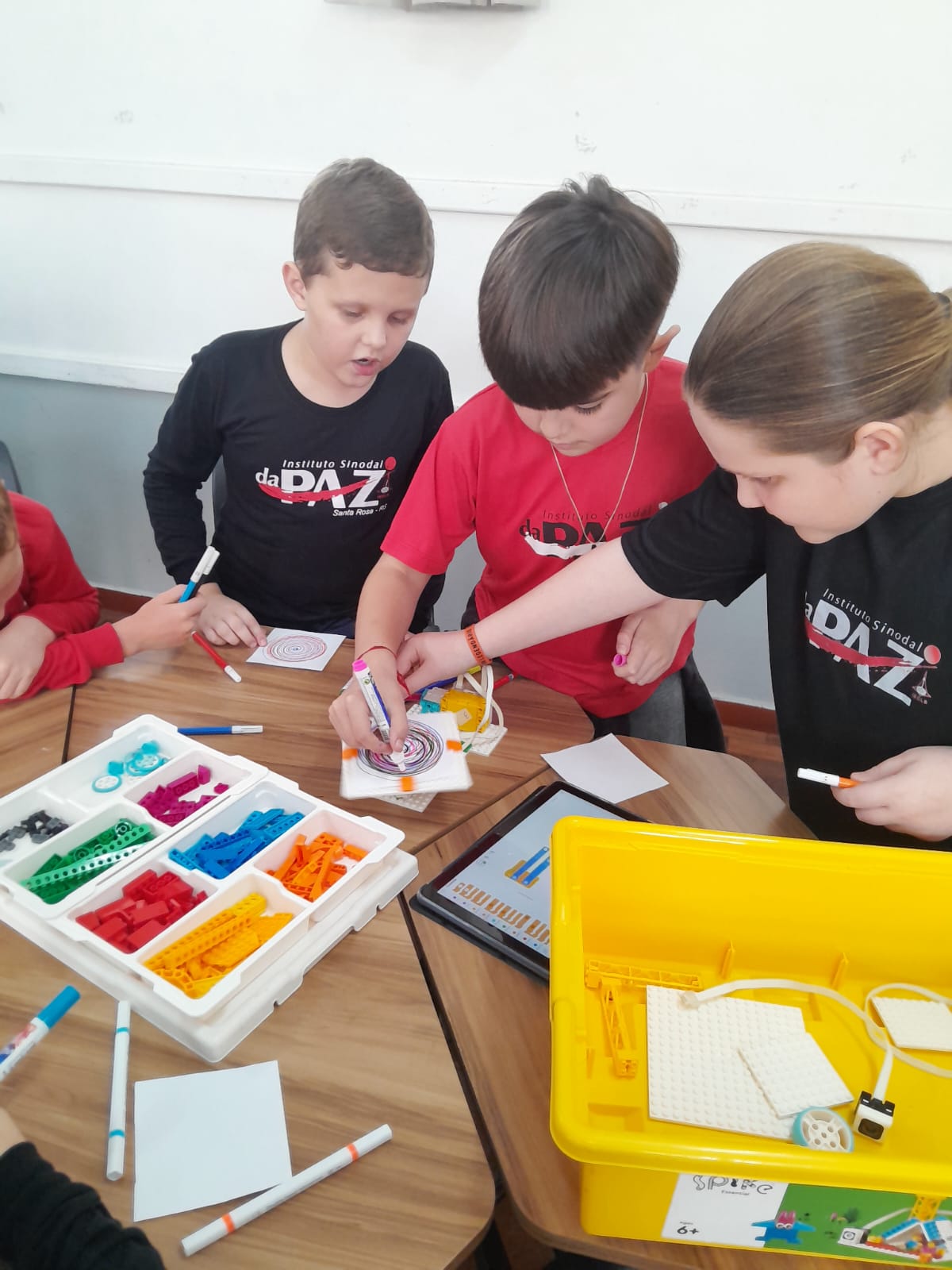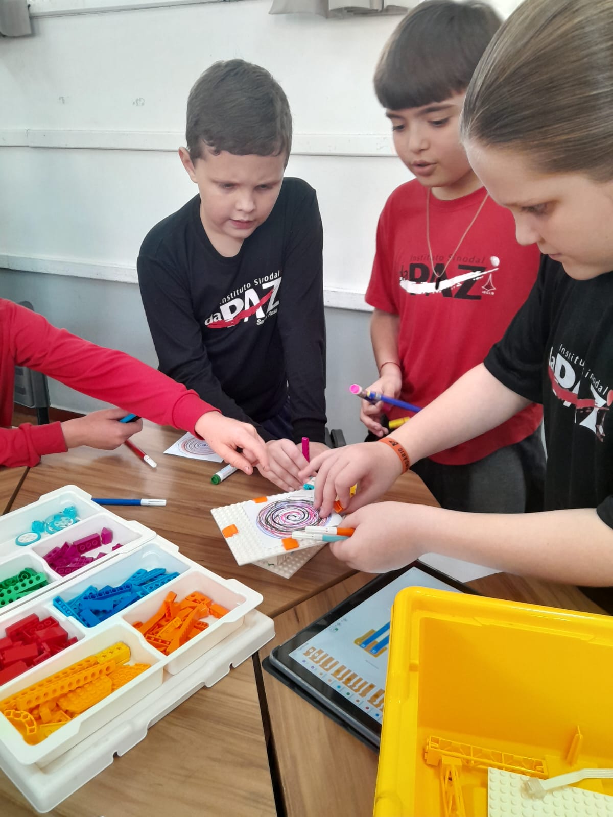 Turma do 3⁰ ano R se desafiando, em grupos, na Oficina de Robótica - ROBOMIND.