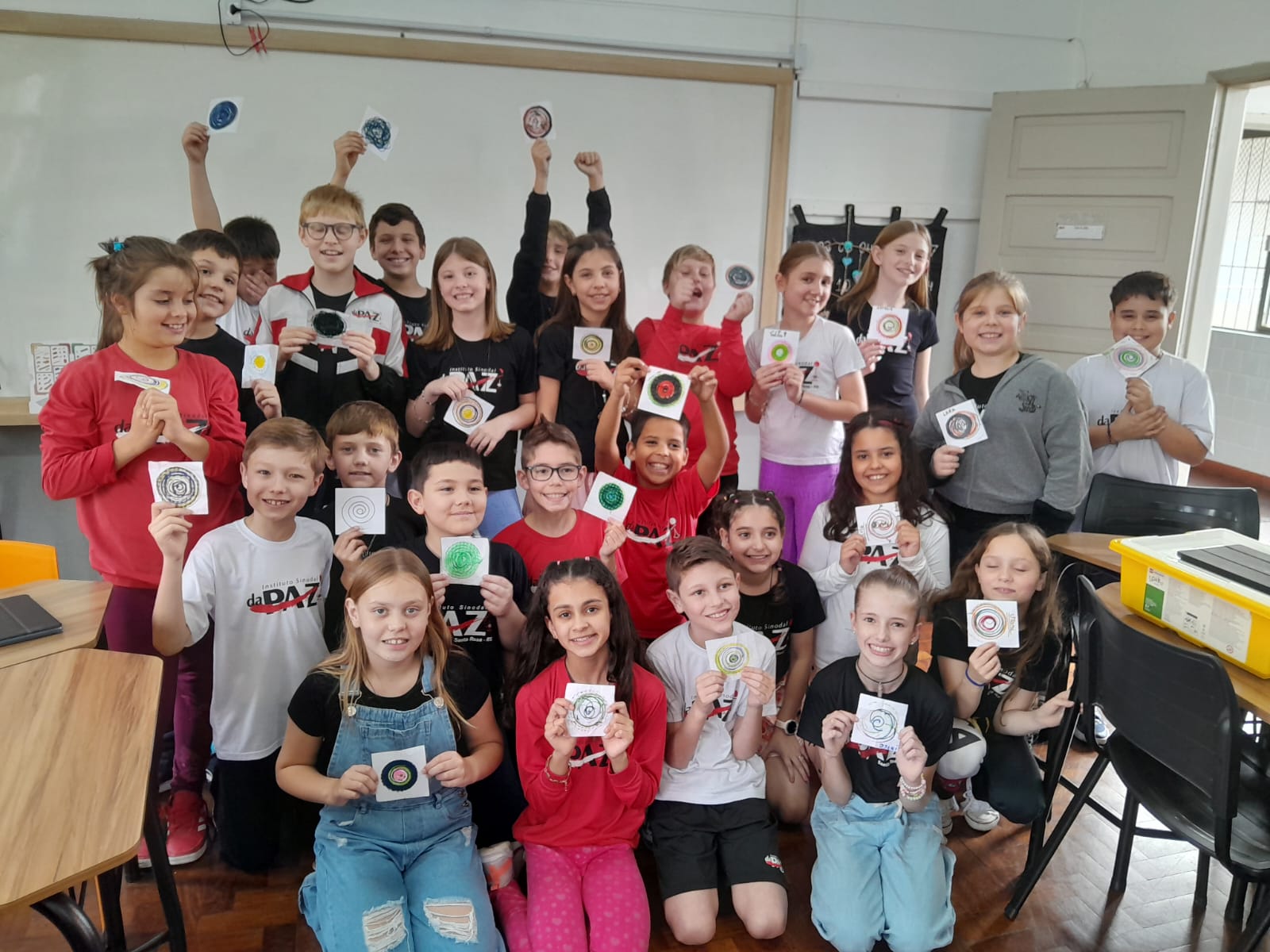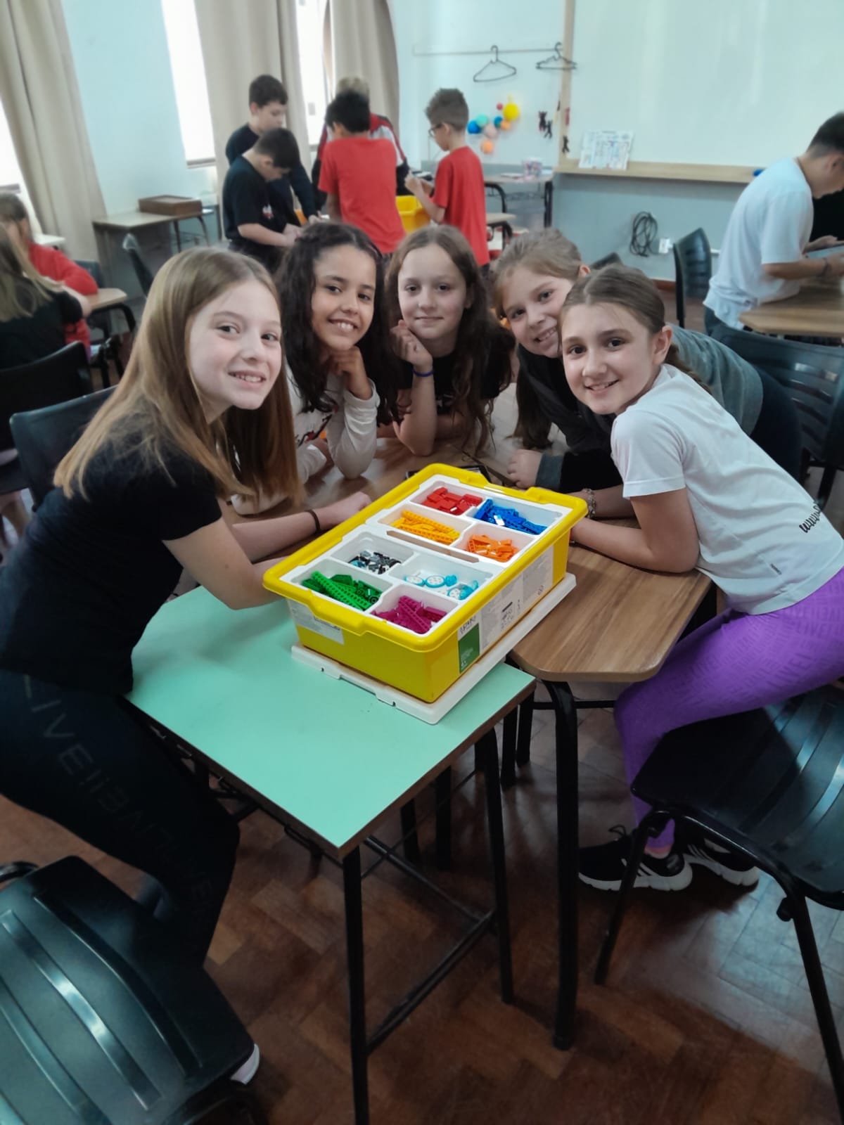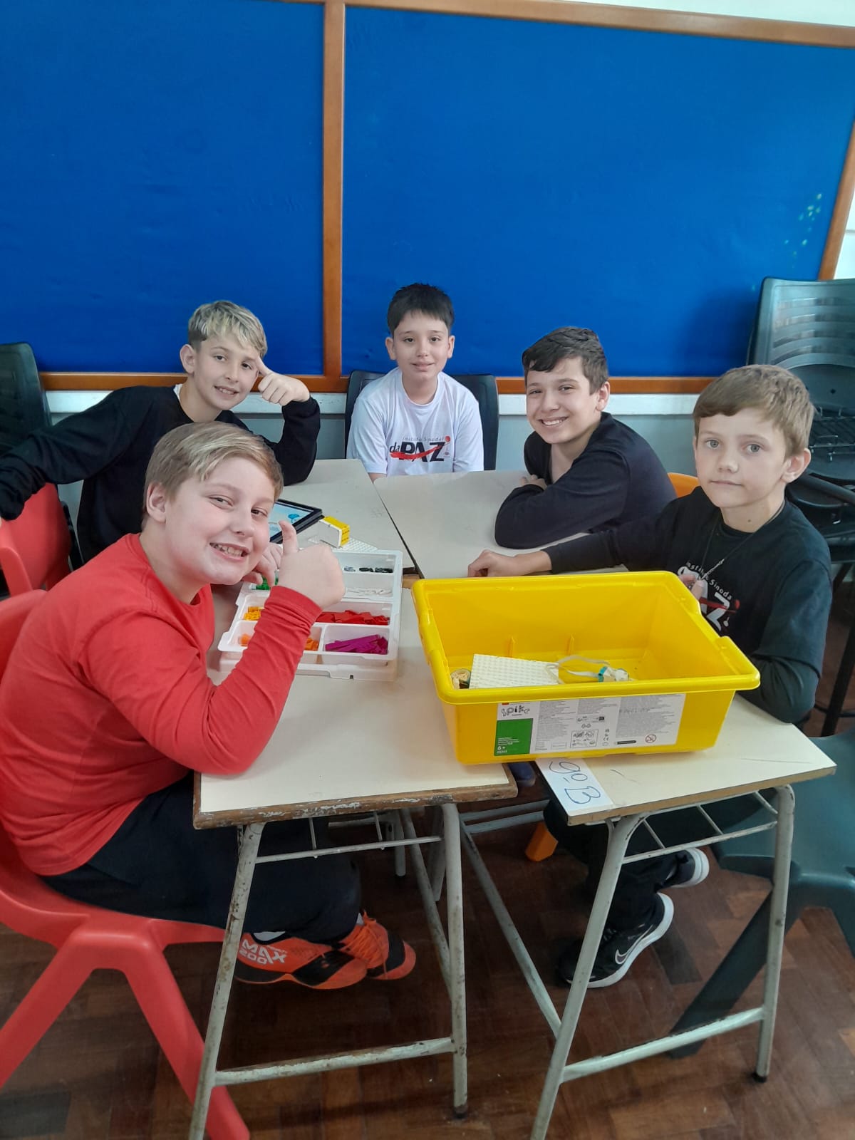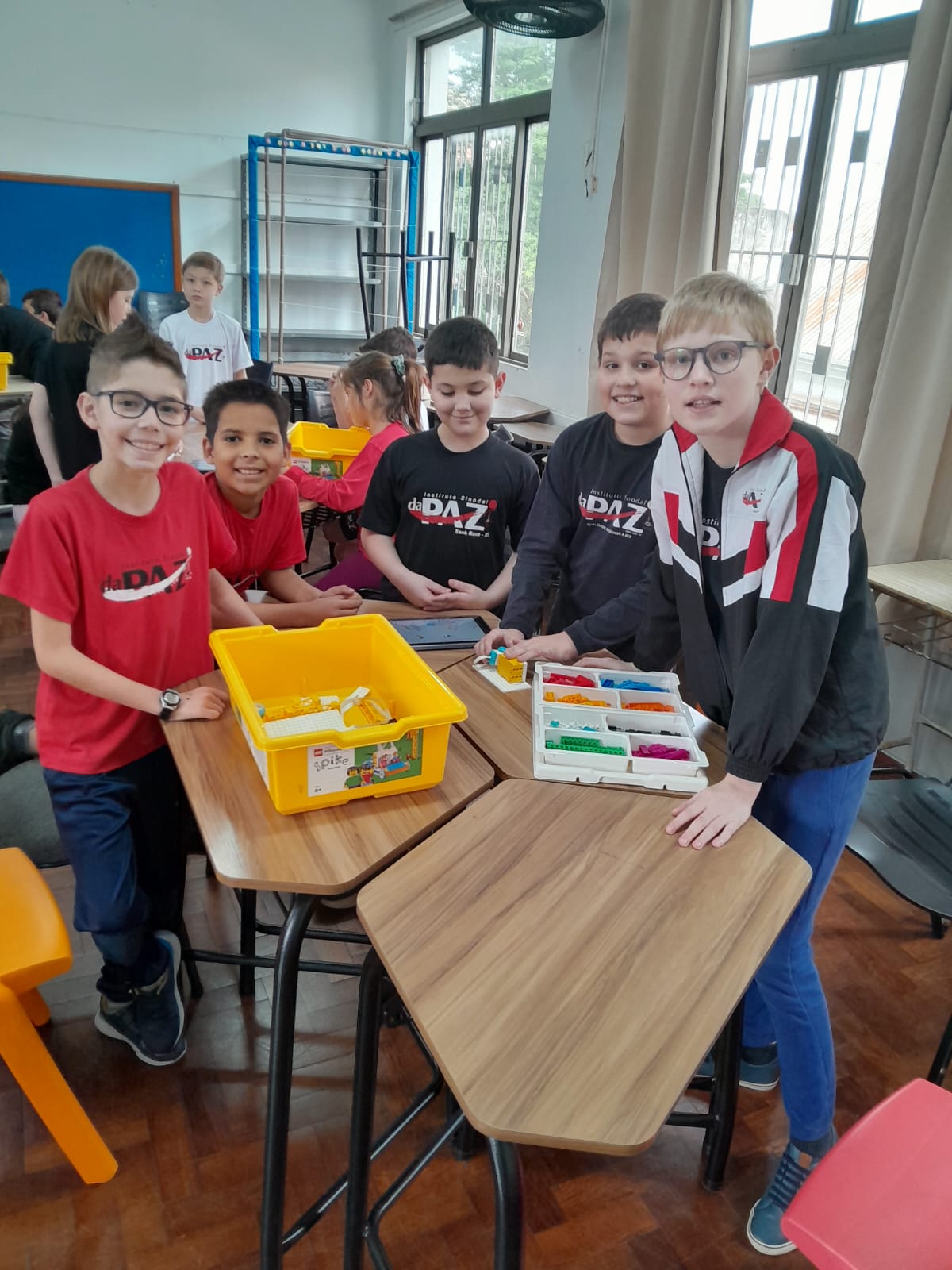 Turma do 4⁰ ano M se desafiando, em grupos, na Oficina de Robótica - ROBOMIND.