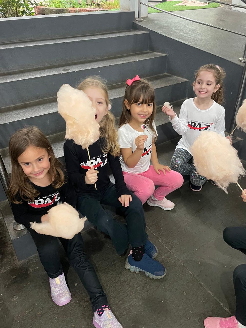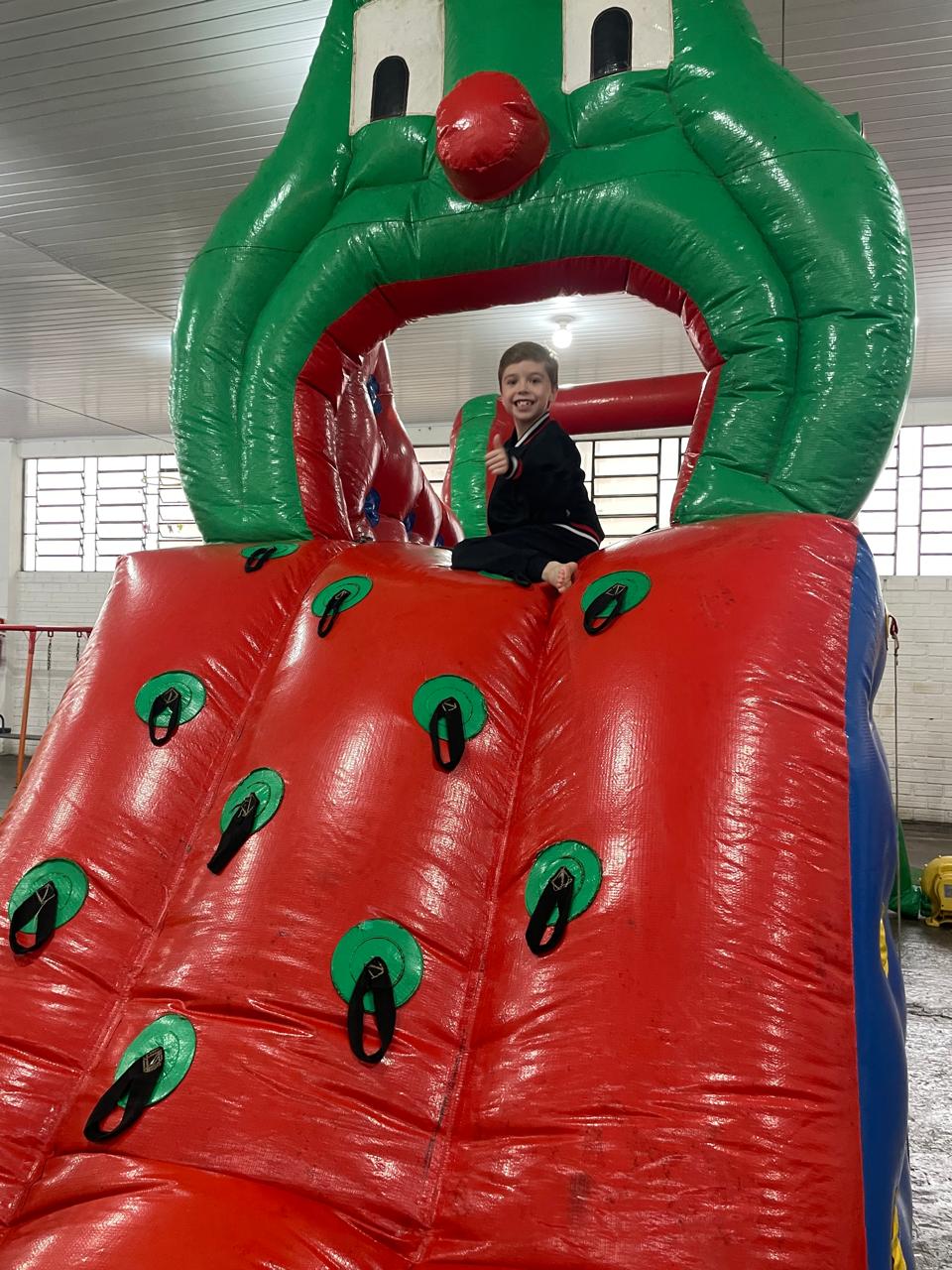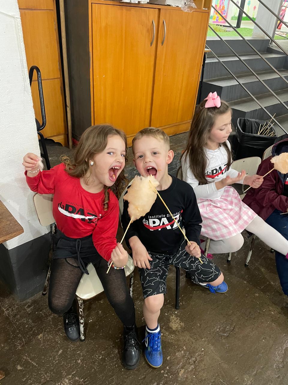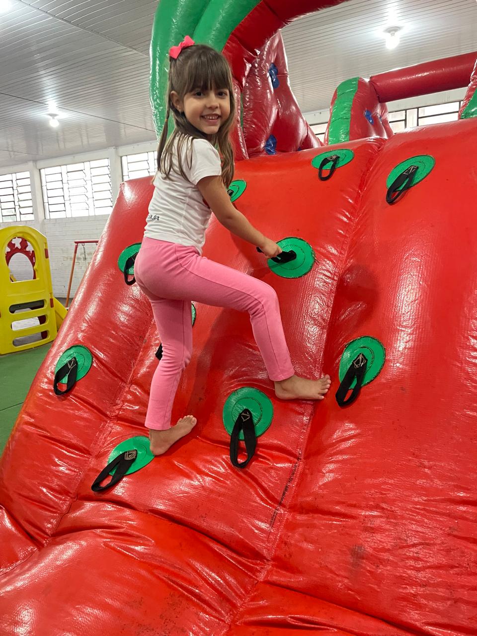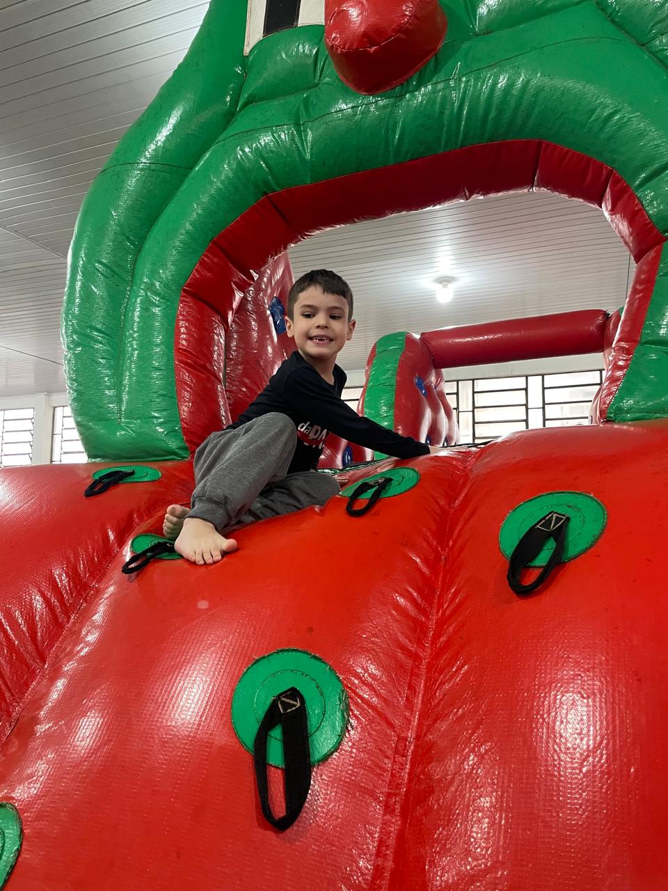 Os alunos da pré-escola 05 anos J, das Professoras Janete e Stefani tiveram uma tarde divertida na semana da criança, com brinquedos infláveis e algodão doce.