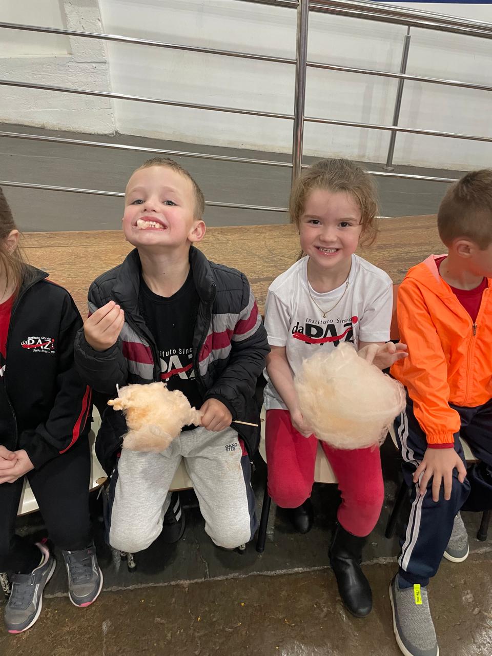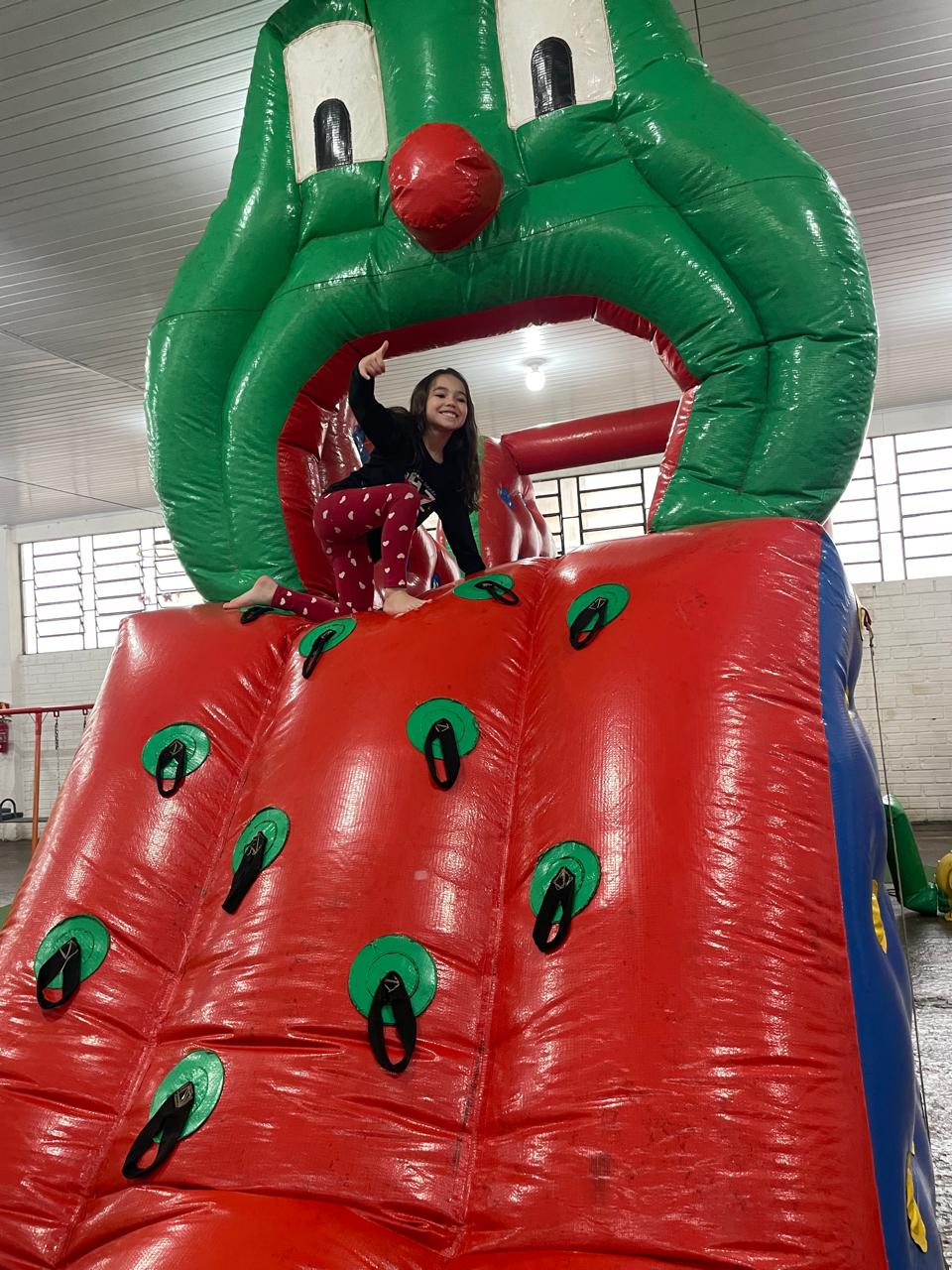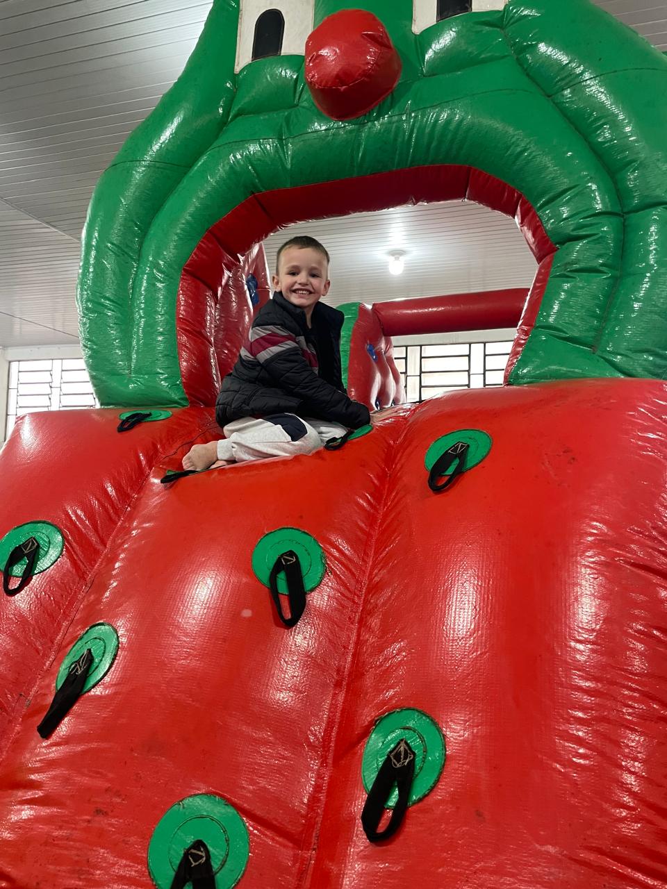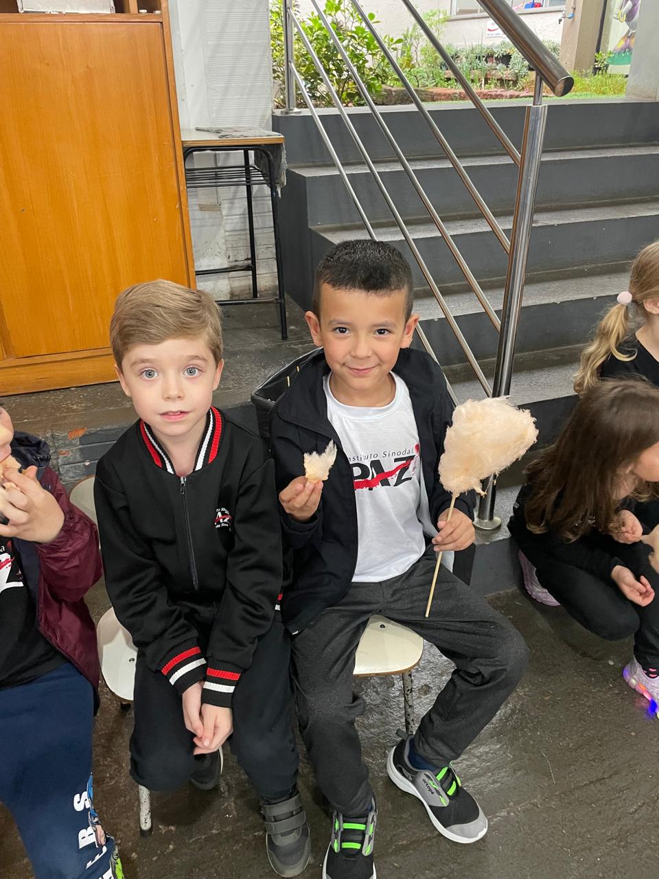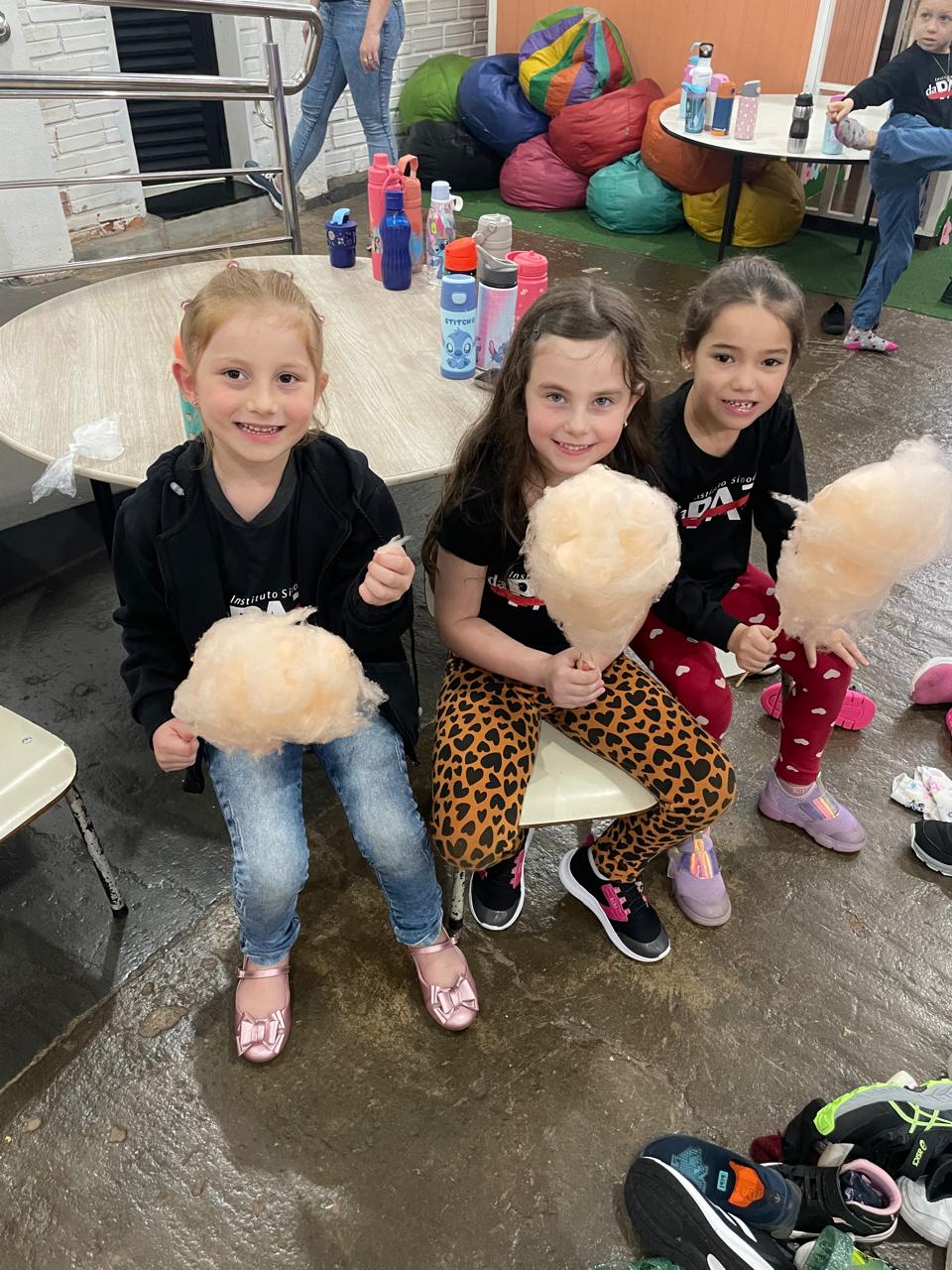 Os alunos da pré-escola 05 anos J, das Professoras Janete e Stefani tiveram uma tarde divertida na semana da criança, com brinquedos infláveis e algodão doce.