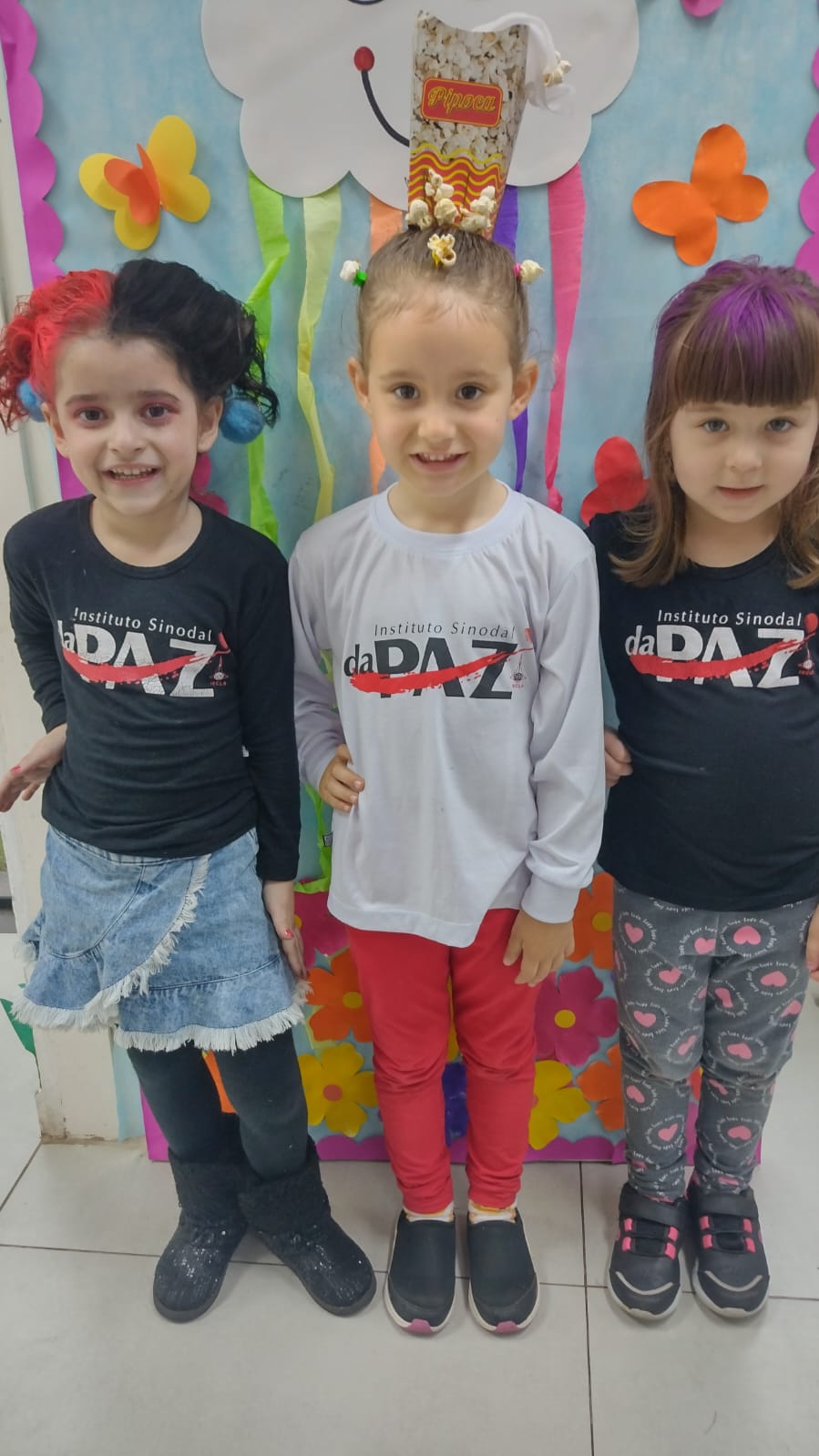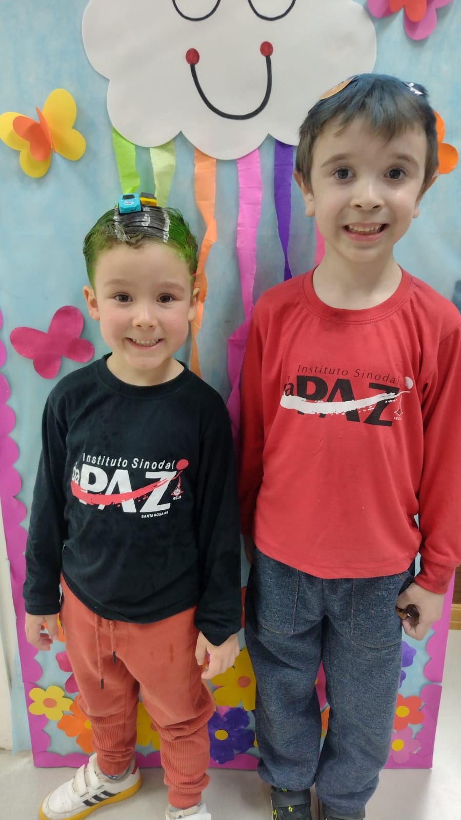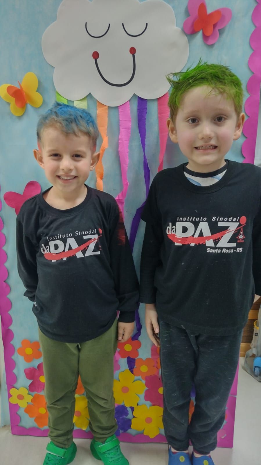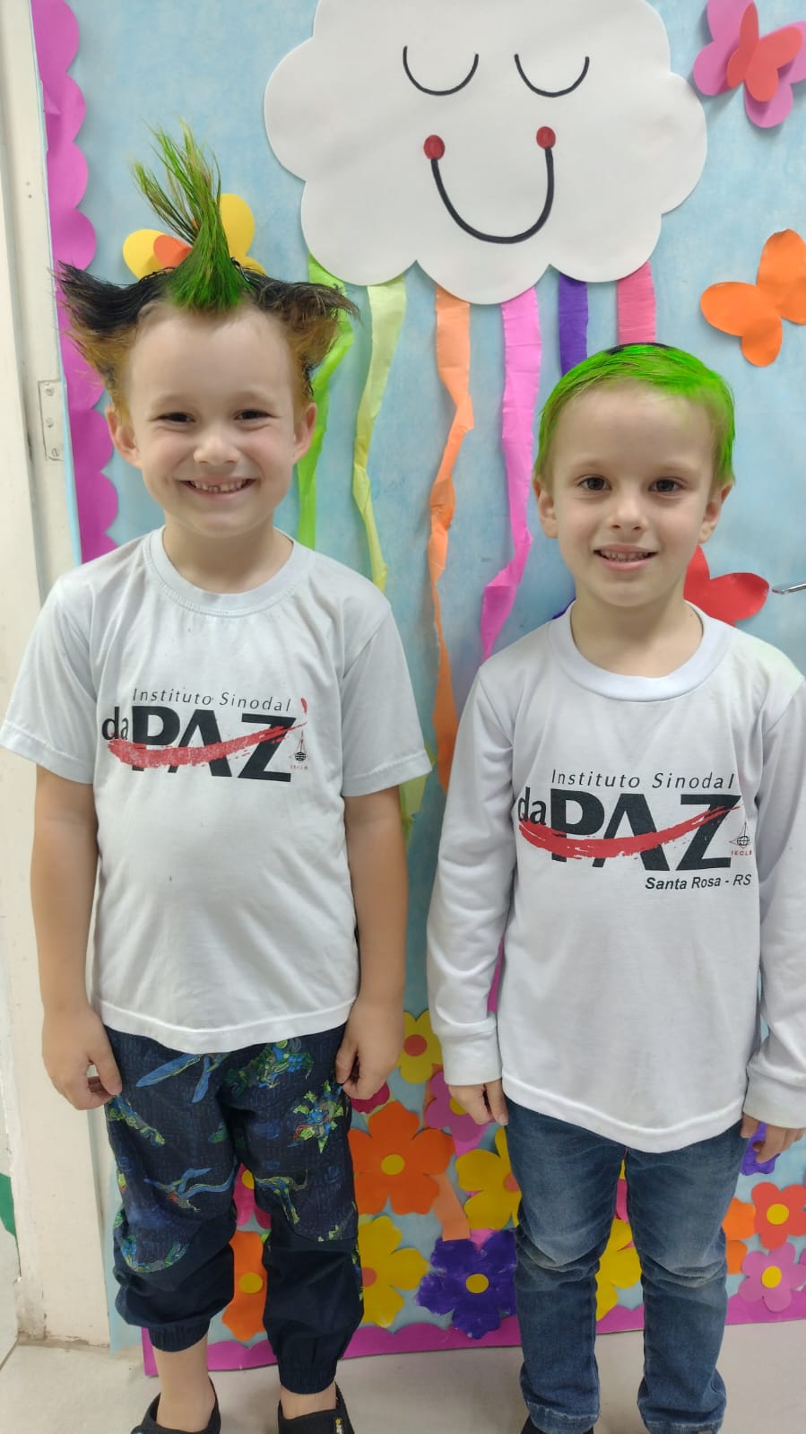 Os alunos da turma 04 anos T, da professora Tamara, puderam inventar junto com sua família, um cabelo com acessórios, spray e muita diversão no "Dia do cabelo maluco" da Educação infantil.