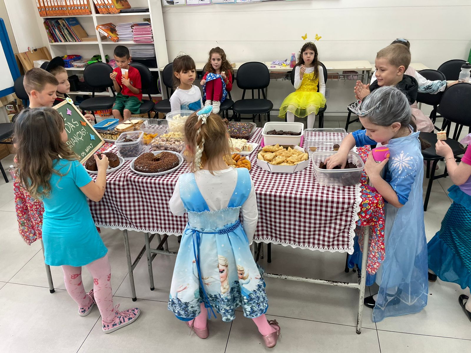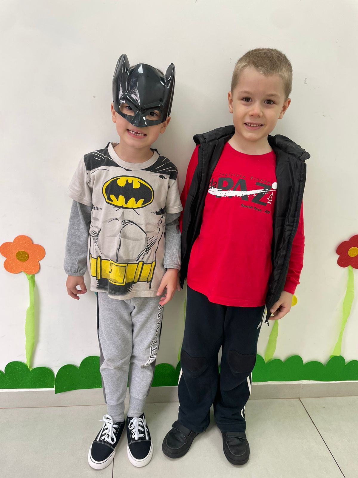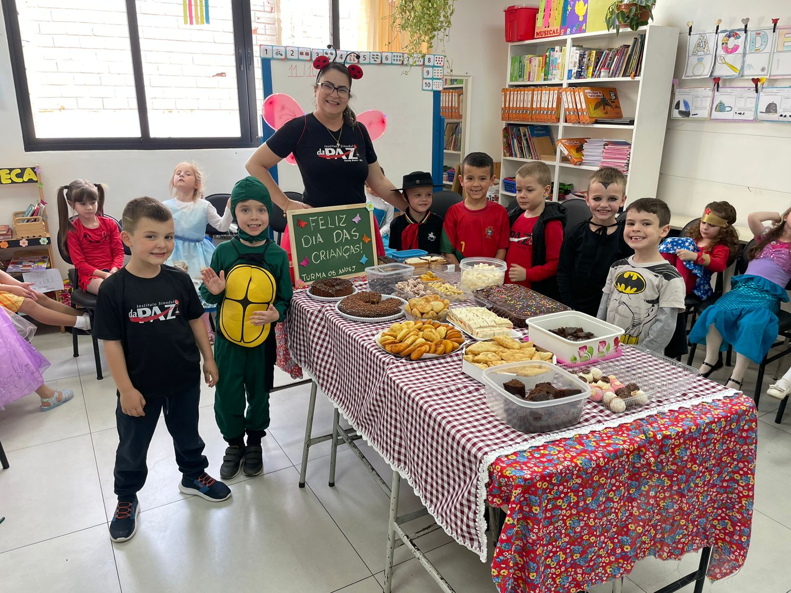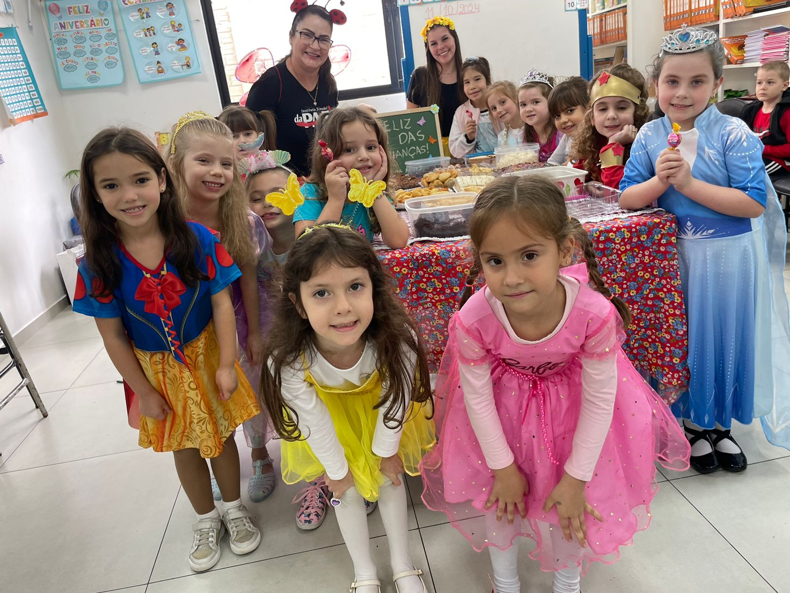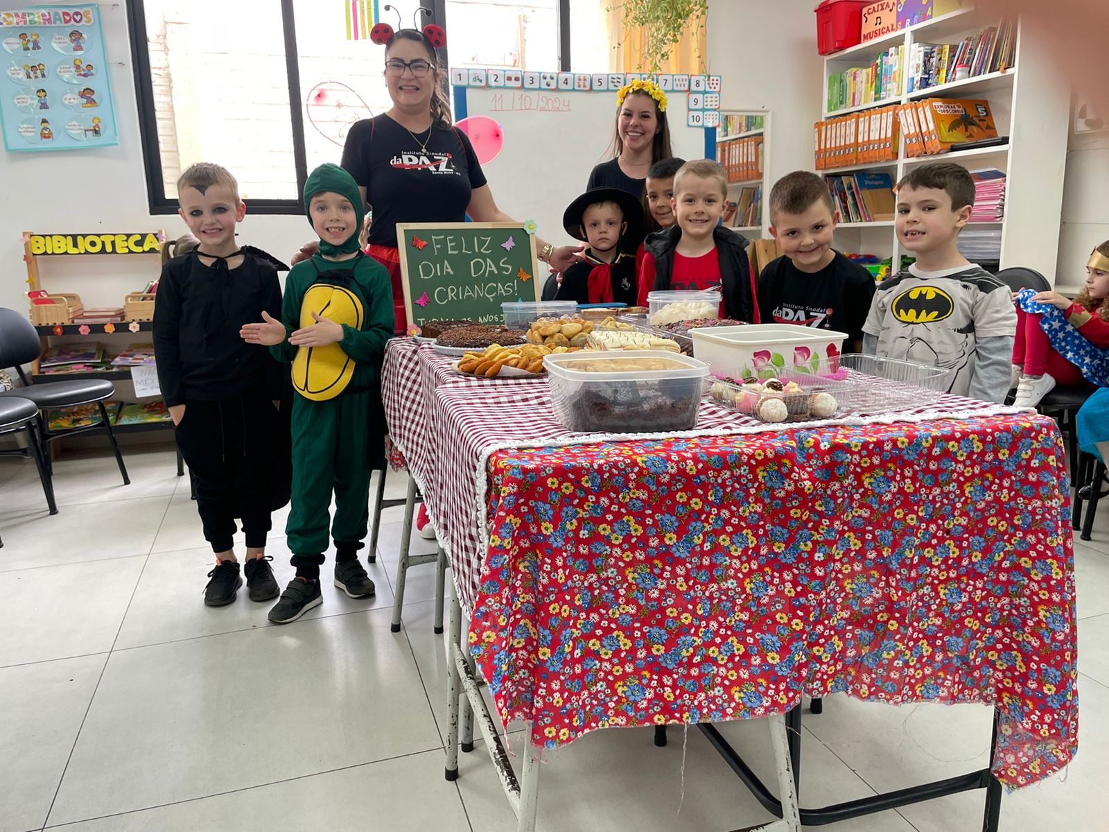 Os alunos da pré-escola 05 anos J, das Professoras Janete e Stefani tiveram uma tarde divertida na semana da criança, com dia da fantasia e lanche compartilhado.