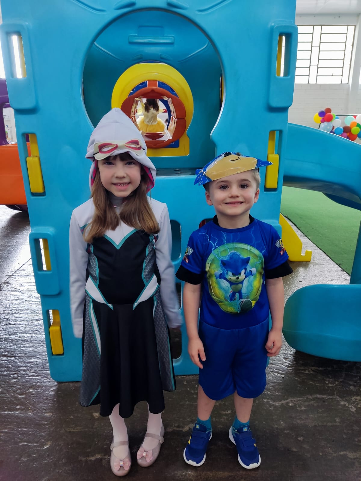 Dia da festa à fantasia na turma da pré-escola 04 anos V da professora Vanessinha, muita diversão e alegria na semana da criança.