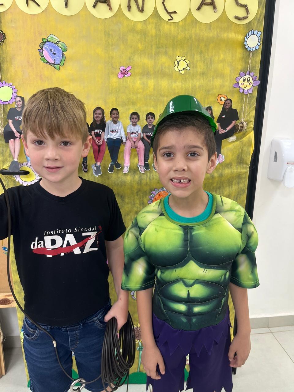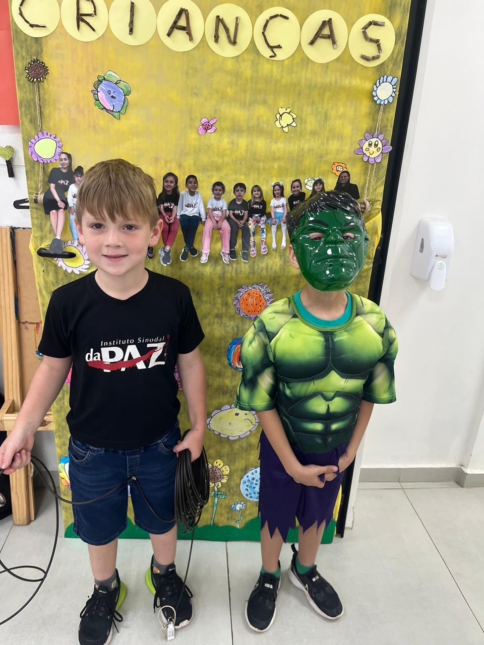 Os alunos da pré-escola 05 anos AP, das Professoras Ana Paula e Ana Carolina tiveram uma tarde divertida na semana da criança, com dia da fantasia e lanche compartilhado.