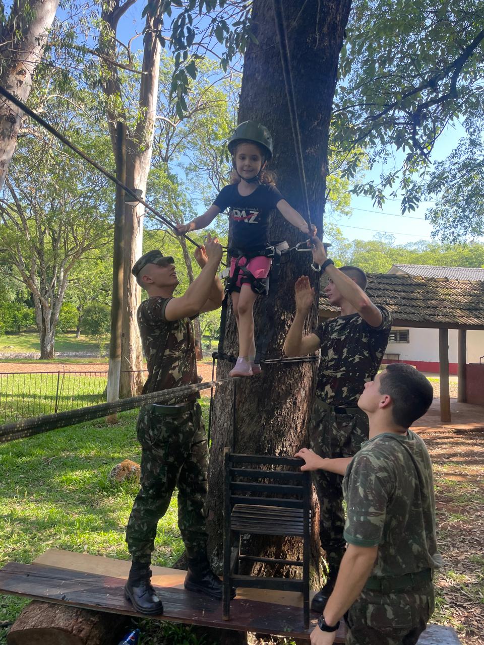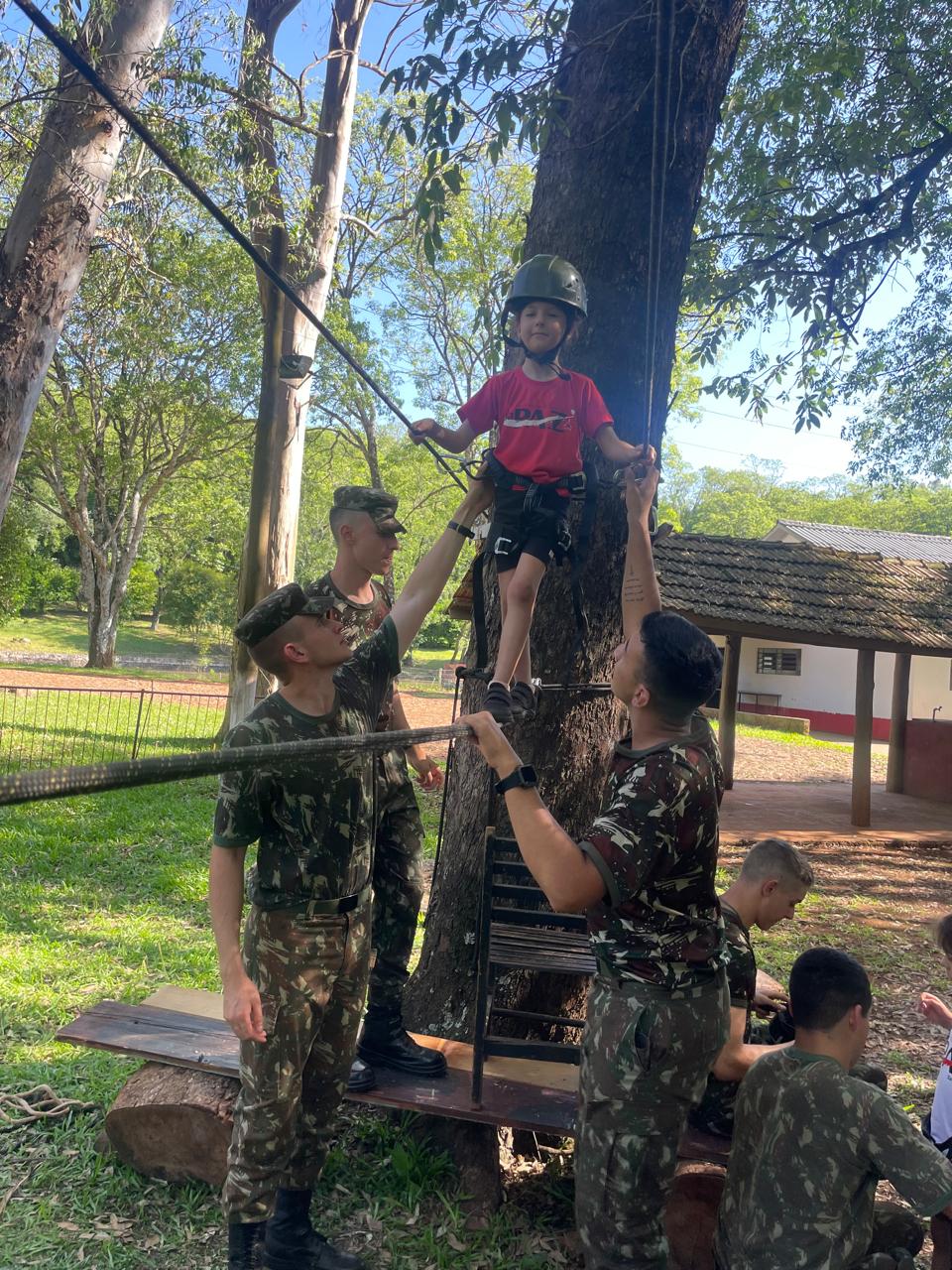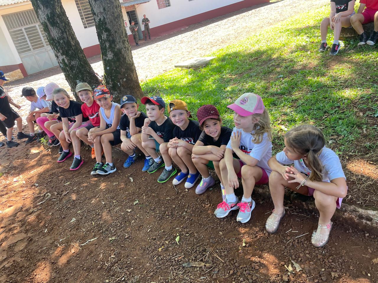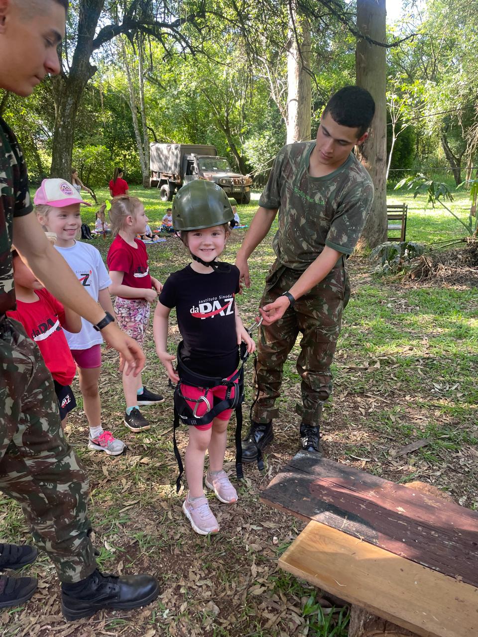 Os alunos da pré-escola 05 anos J, das Professoras Janete e Stefani fizeram um passeio e visita ao quartel.