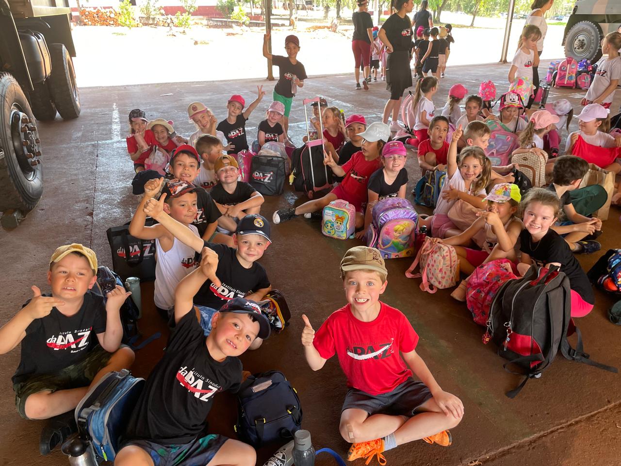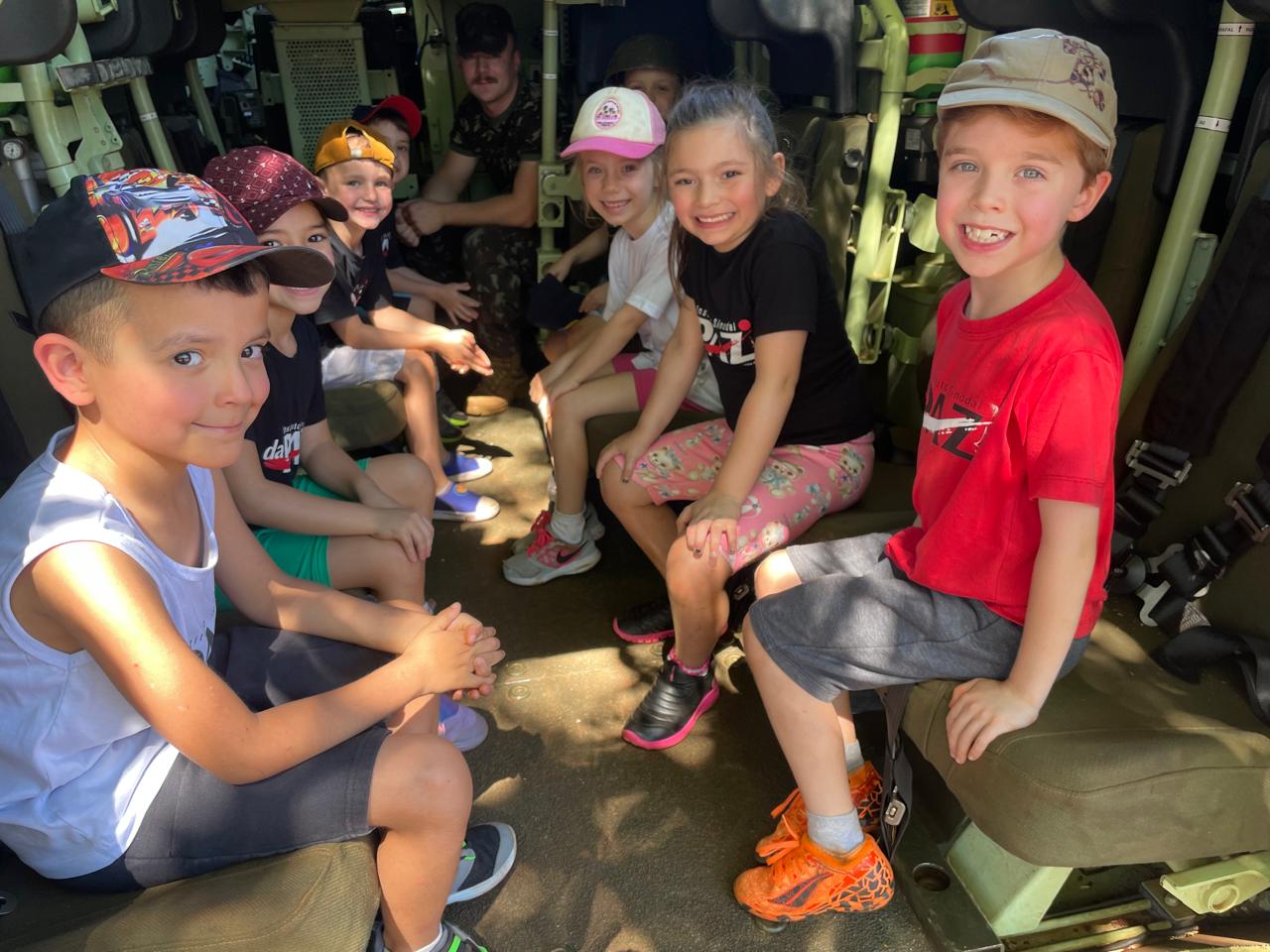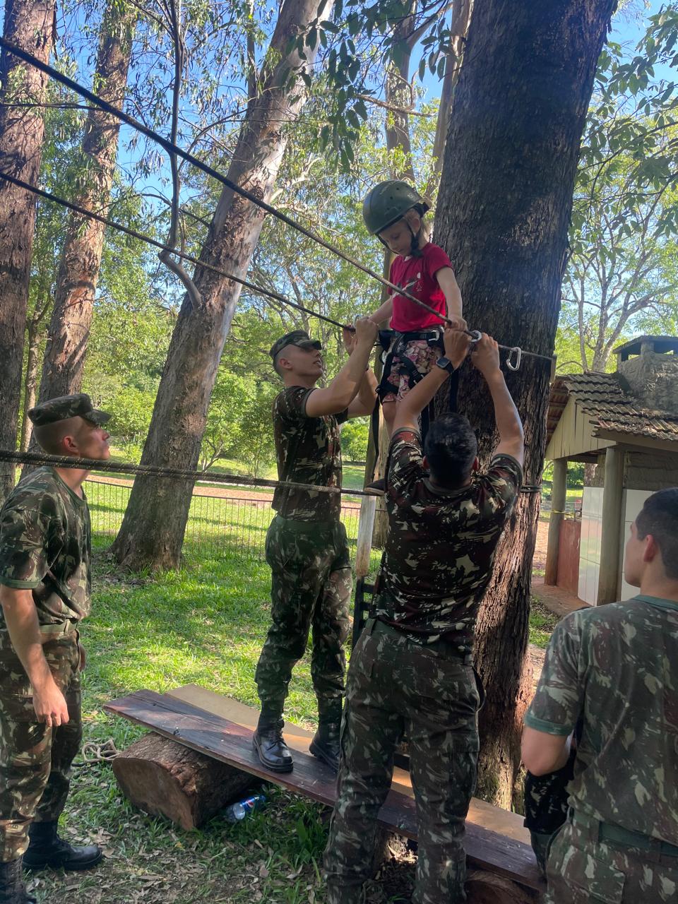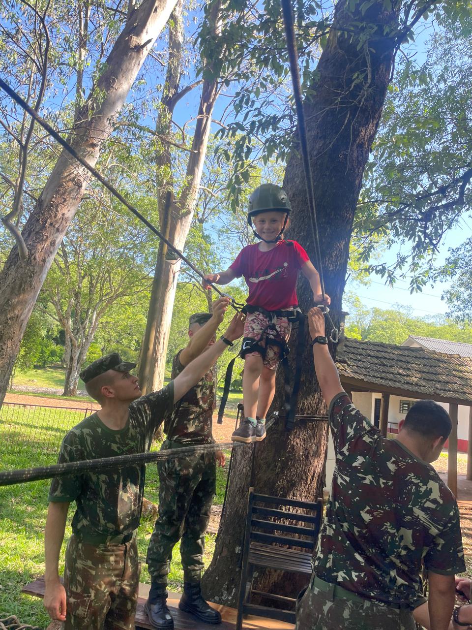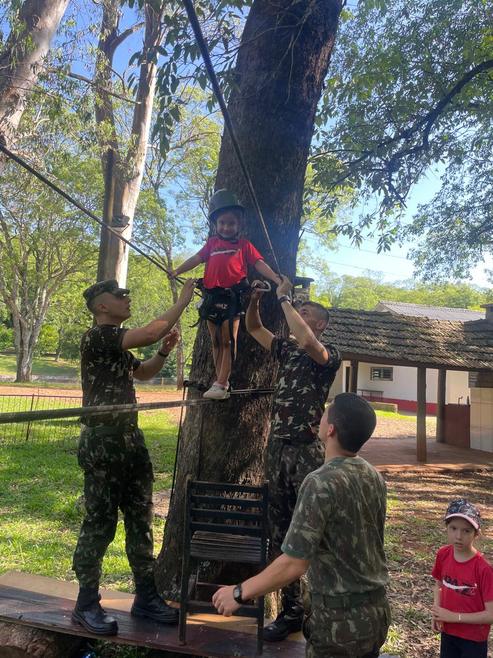 Os alunos da pré-escola 05 anos J, das Professoras Janete e Stefani fizeram um passeio e visita ao quartel.