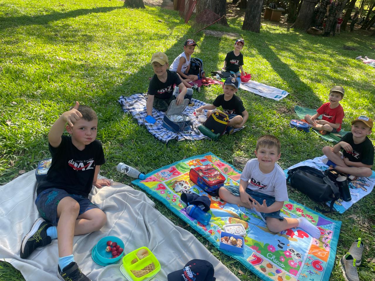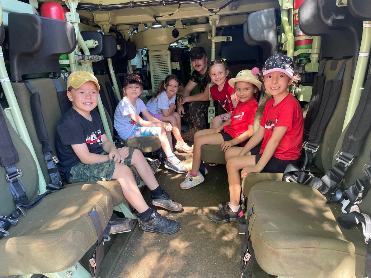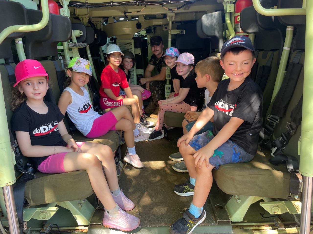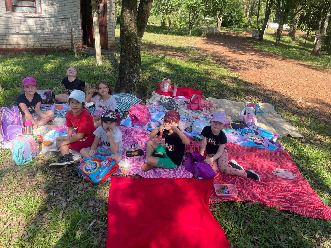 Os alunos da pré-escola 05 anos J, das Professoras Janete e Stefani fizeram um passeio e visita ao quartel.