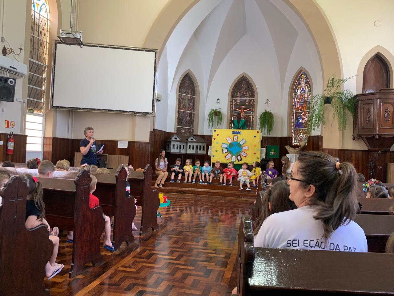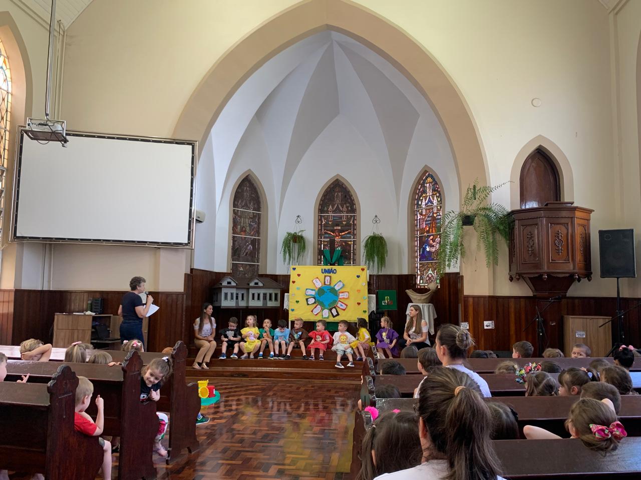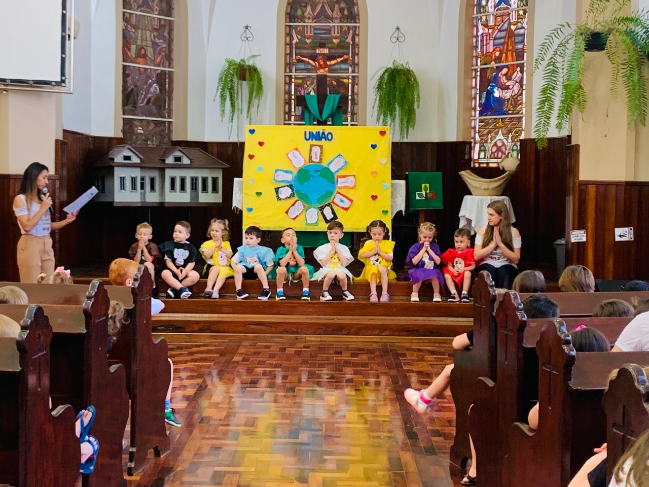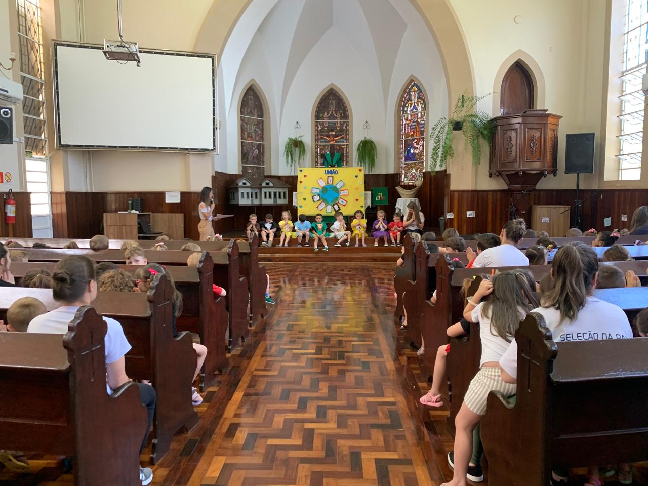 No dia 30.10 (quarta-feira), a turma de 03 anos C, da professora Camila, fez a apresentação do Boa Tarde na Igreja para as demais turmas da Educação Infantil da escola.