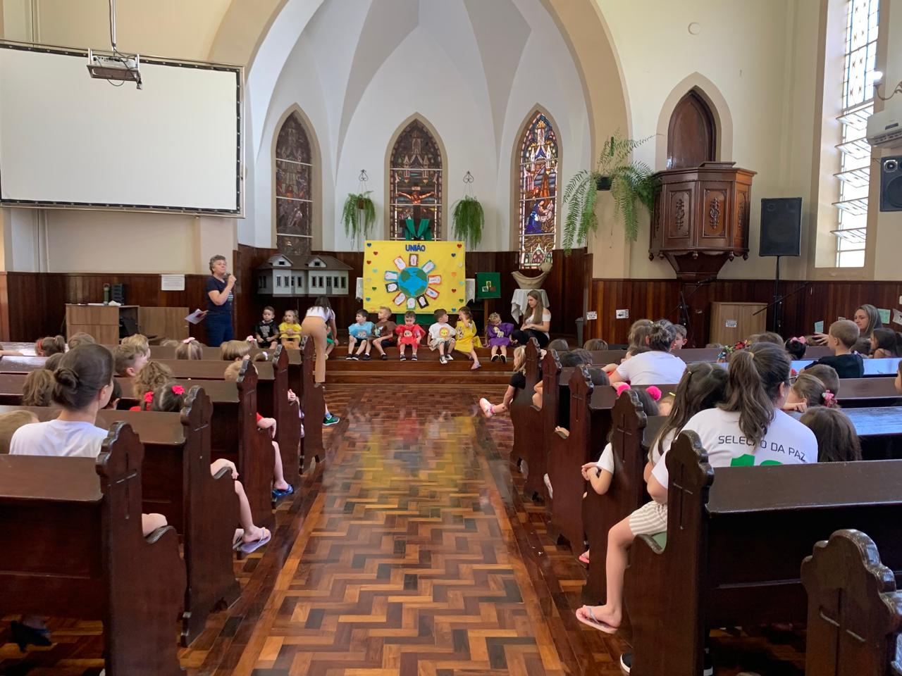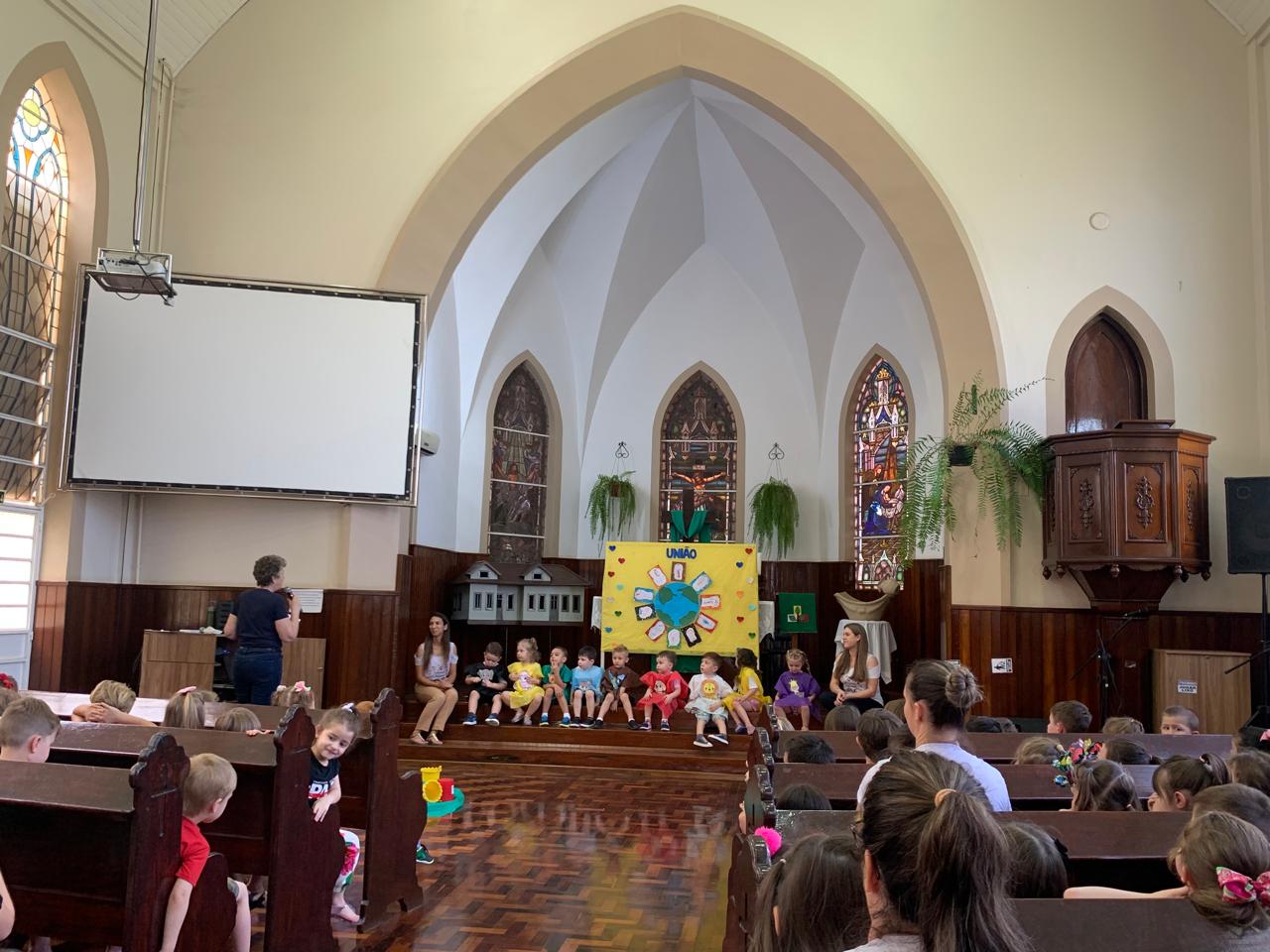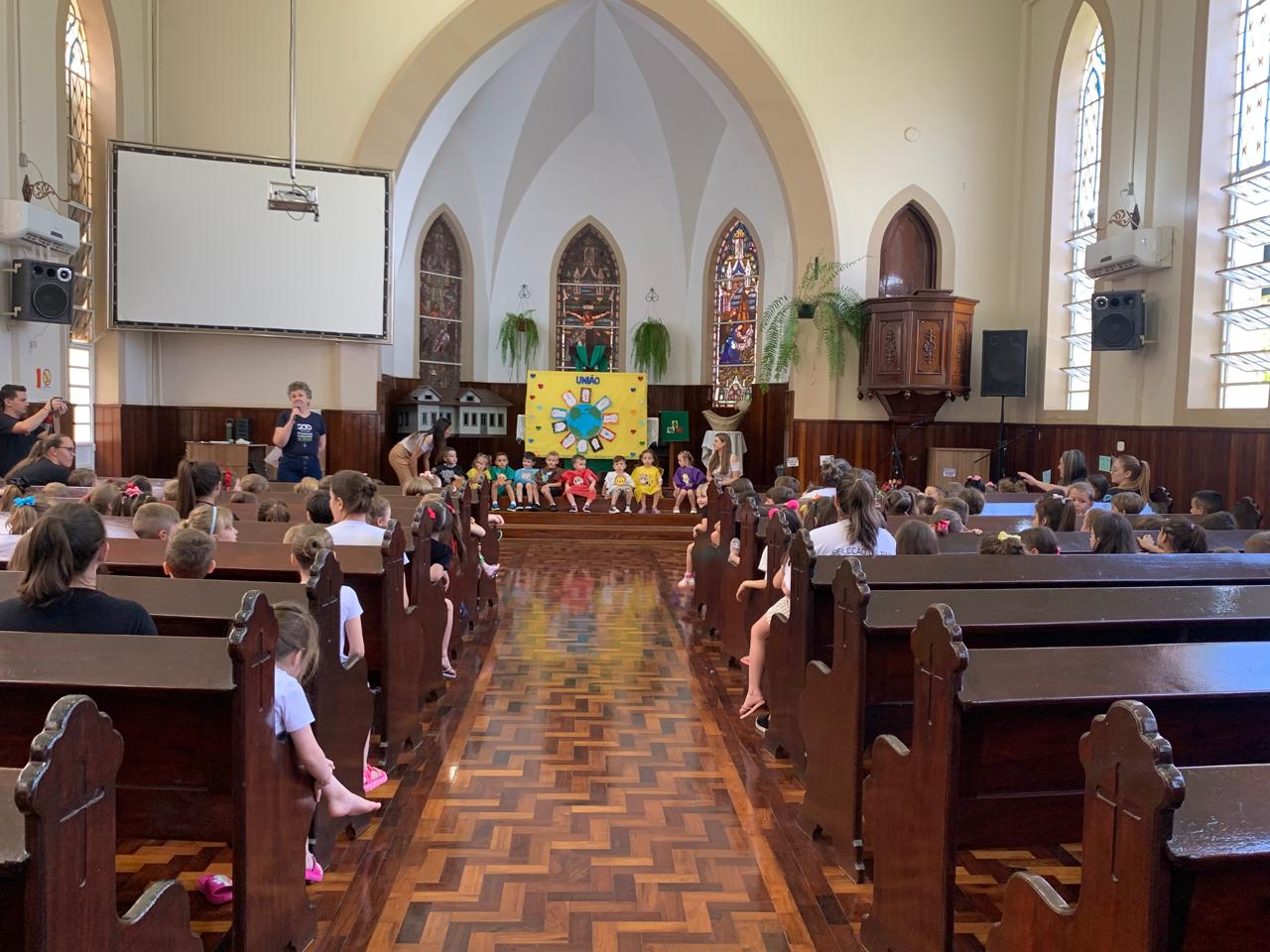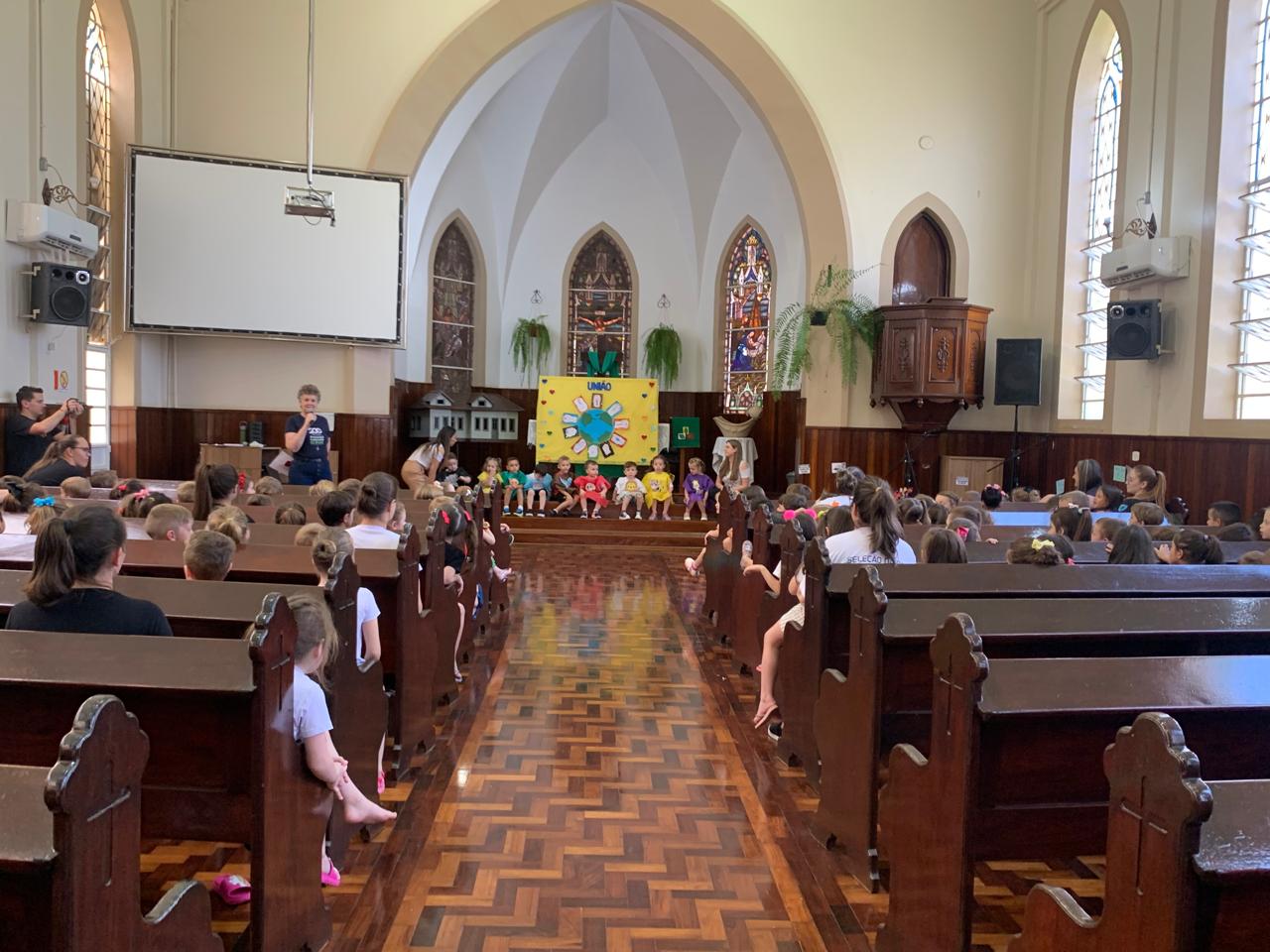 No dia 30.10 (quarta-feira), a turma de 03 anos C, da professora Camila, fez a apresentação do Boa Tarde na Igreja para as demais turmas da Educação Infantil da escola.